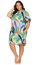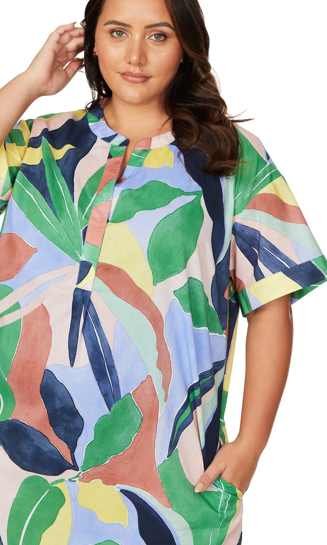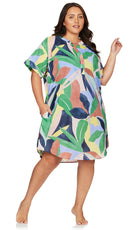 Artesands Fits Your Curves. Amadeus is our curve fit throw on, over shirt kaftan. This cover up has a v neck feature with short cuffed sleeves and a rounded hem. Artesands specially designed resort wear made to wear over your curve fit swimsuit. Amadeus is made with 100% soft wash, lightweight, breathable cotton fabrication.