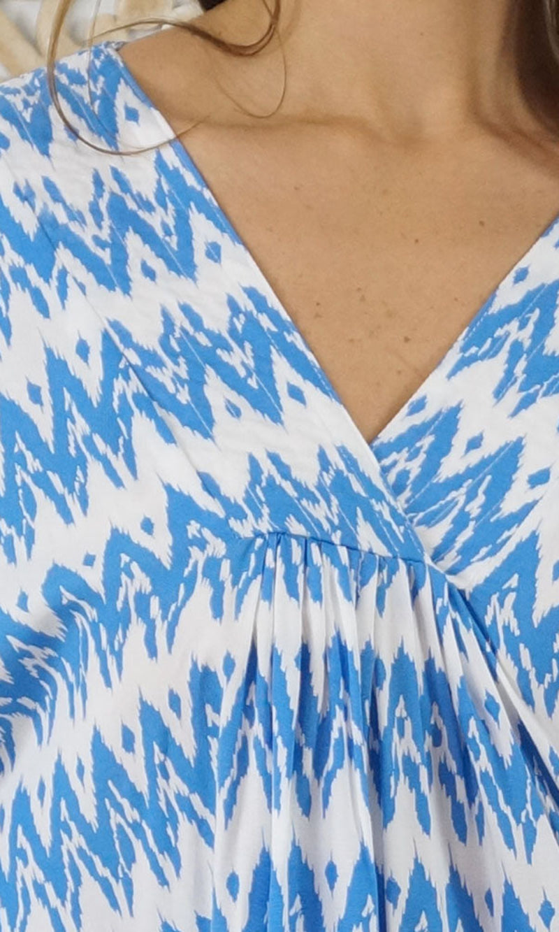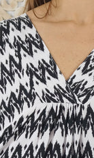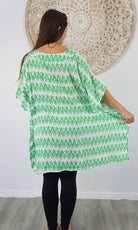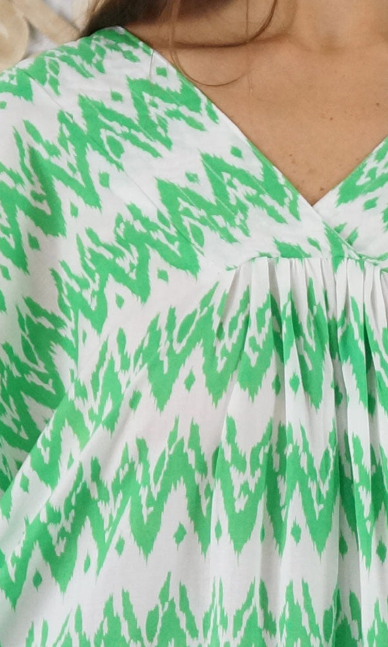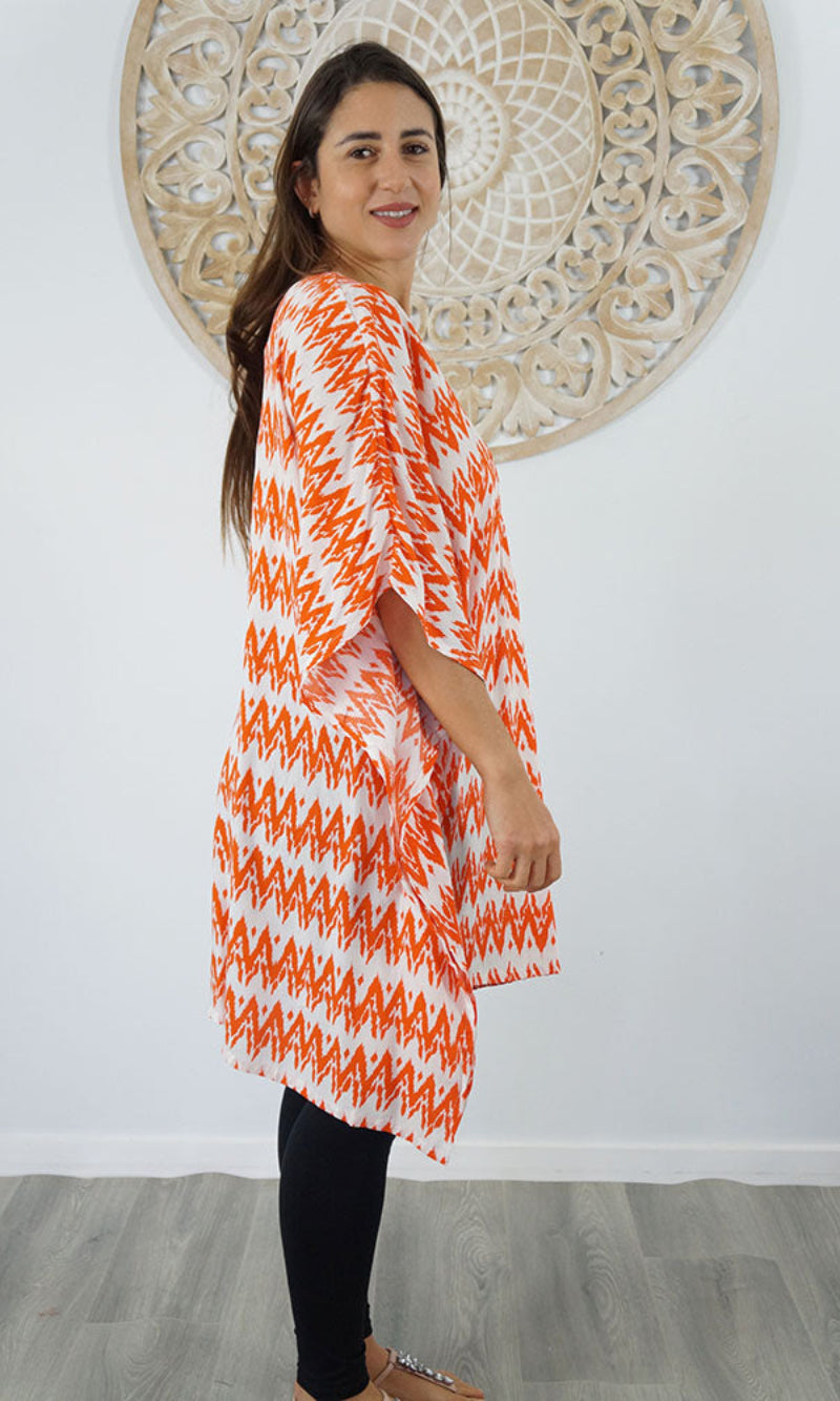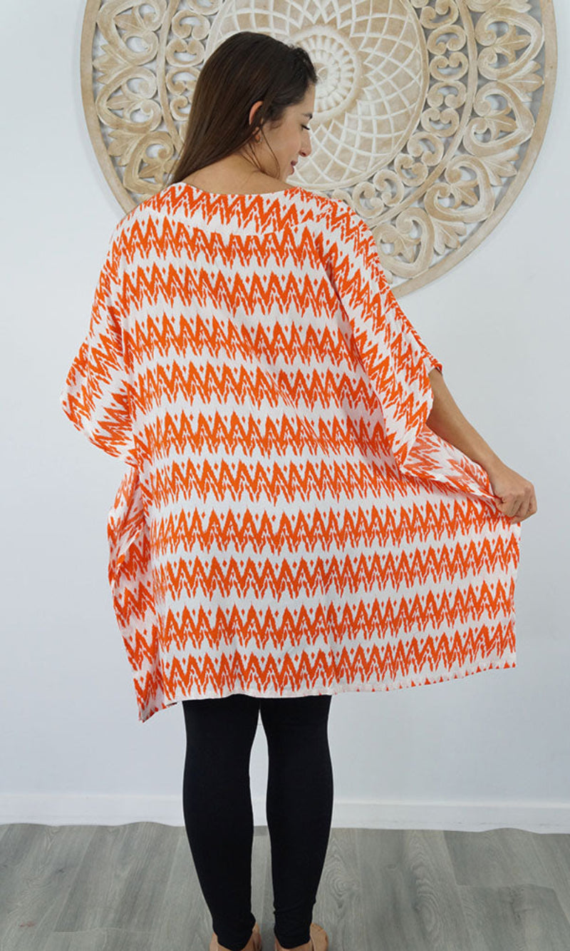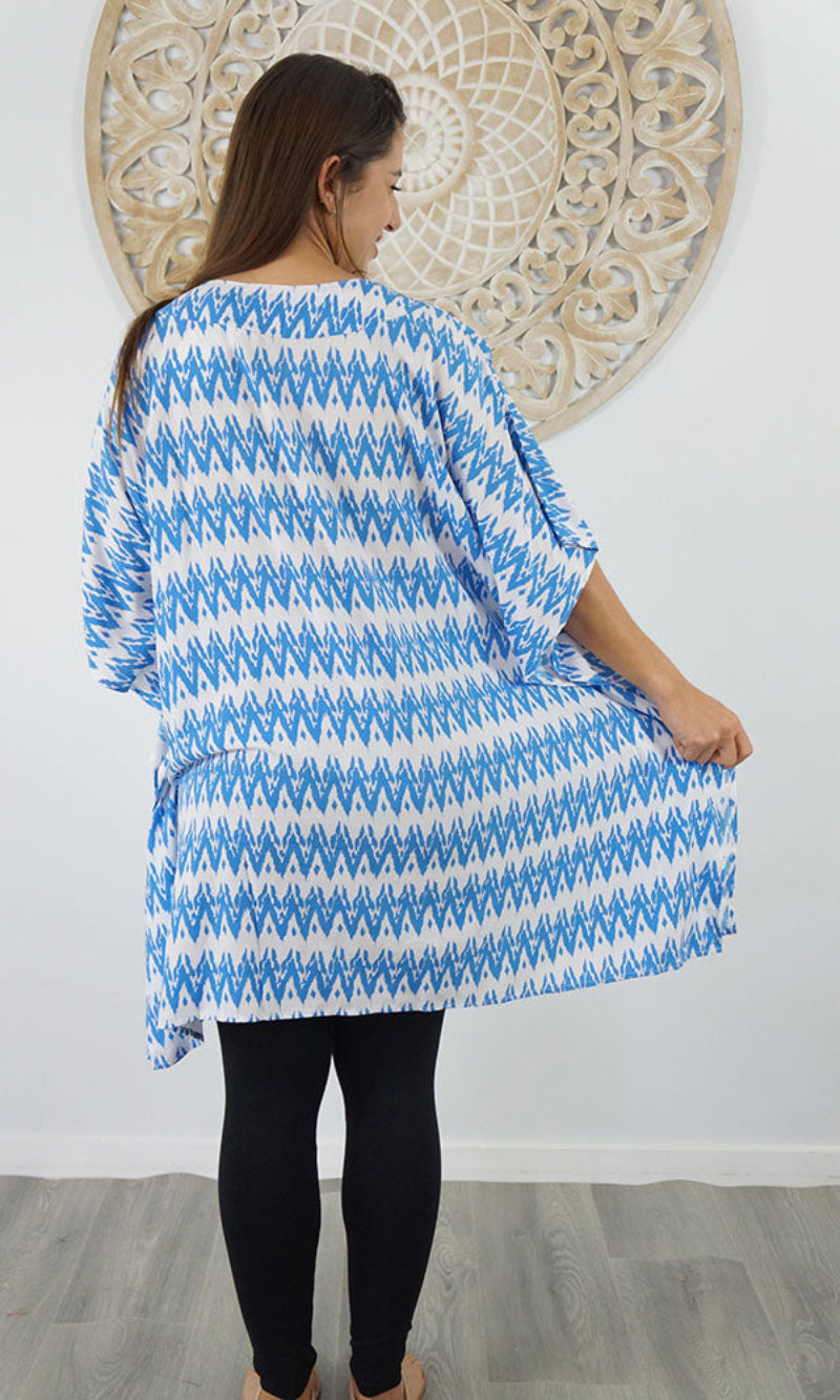 These charming "Classic" Mumus with a ZigZag pattern offer a cozy option for lounging by the pool or beach. They measure around 85cm in length and fit sizes 10 to 20 comfortably. Crafted from 100% breathable Rayon for all-day ease.