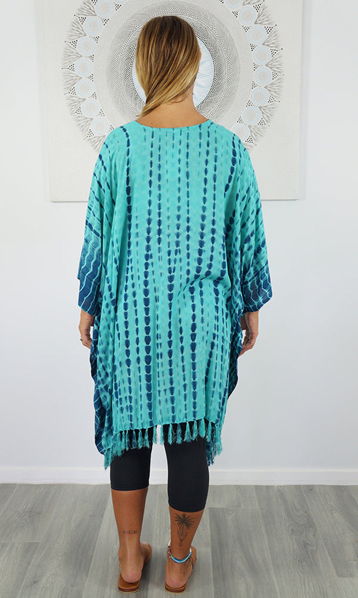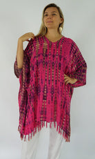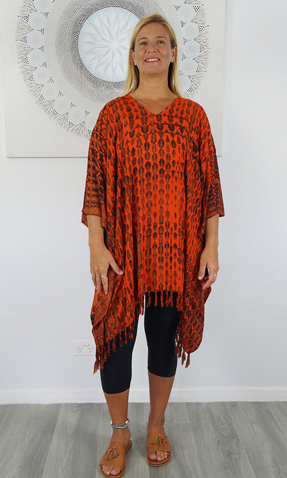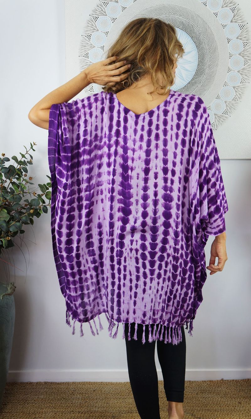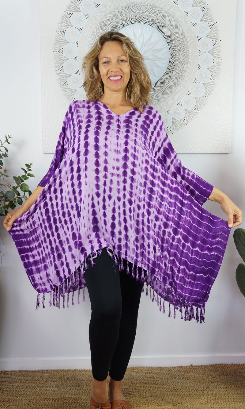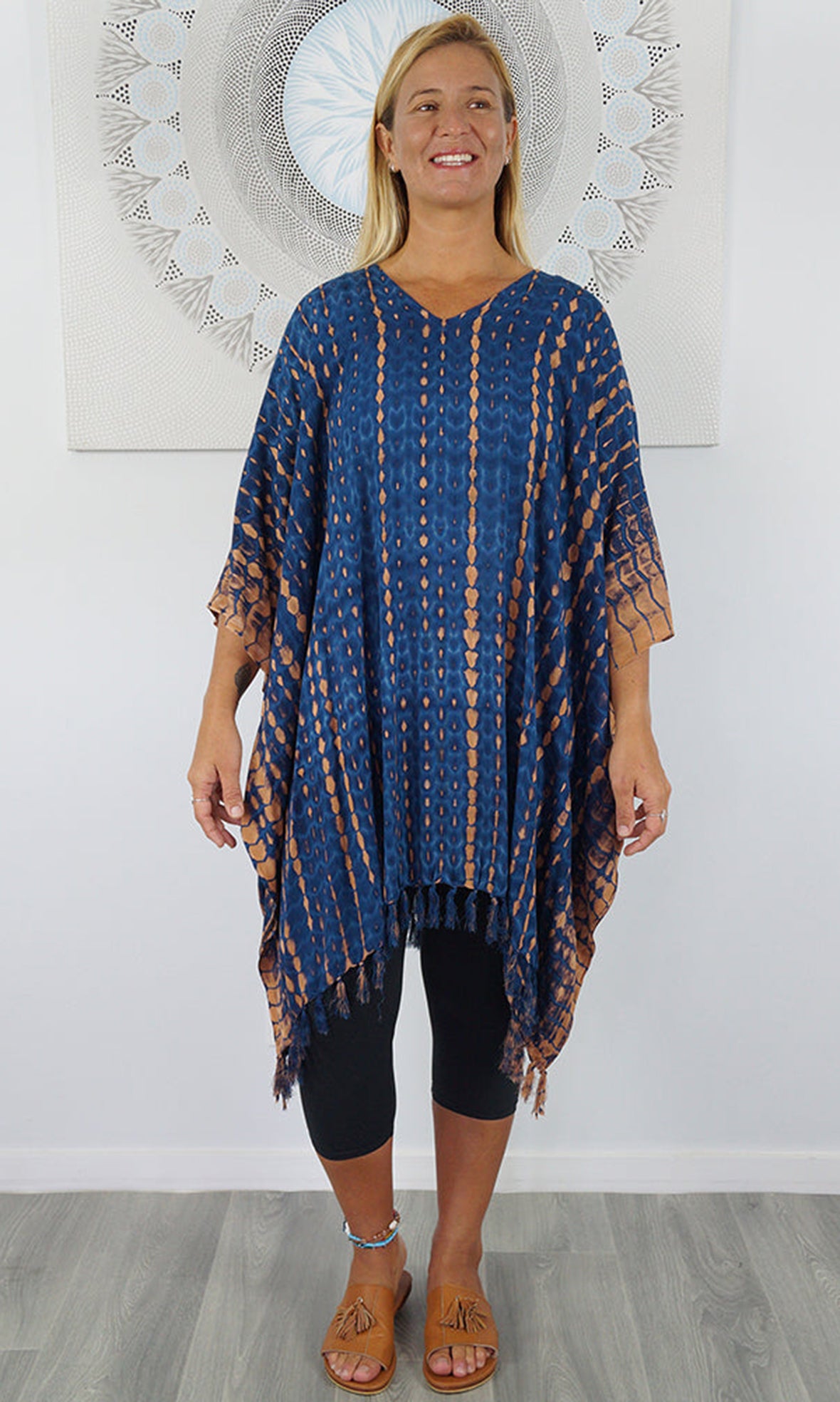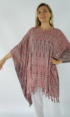 This light rayon kaftan makes a wonderful gift. One size fits size 10 to 26 comfortably. It has tassels at the bottom and is approximently 85cm in length.
