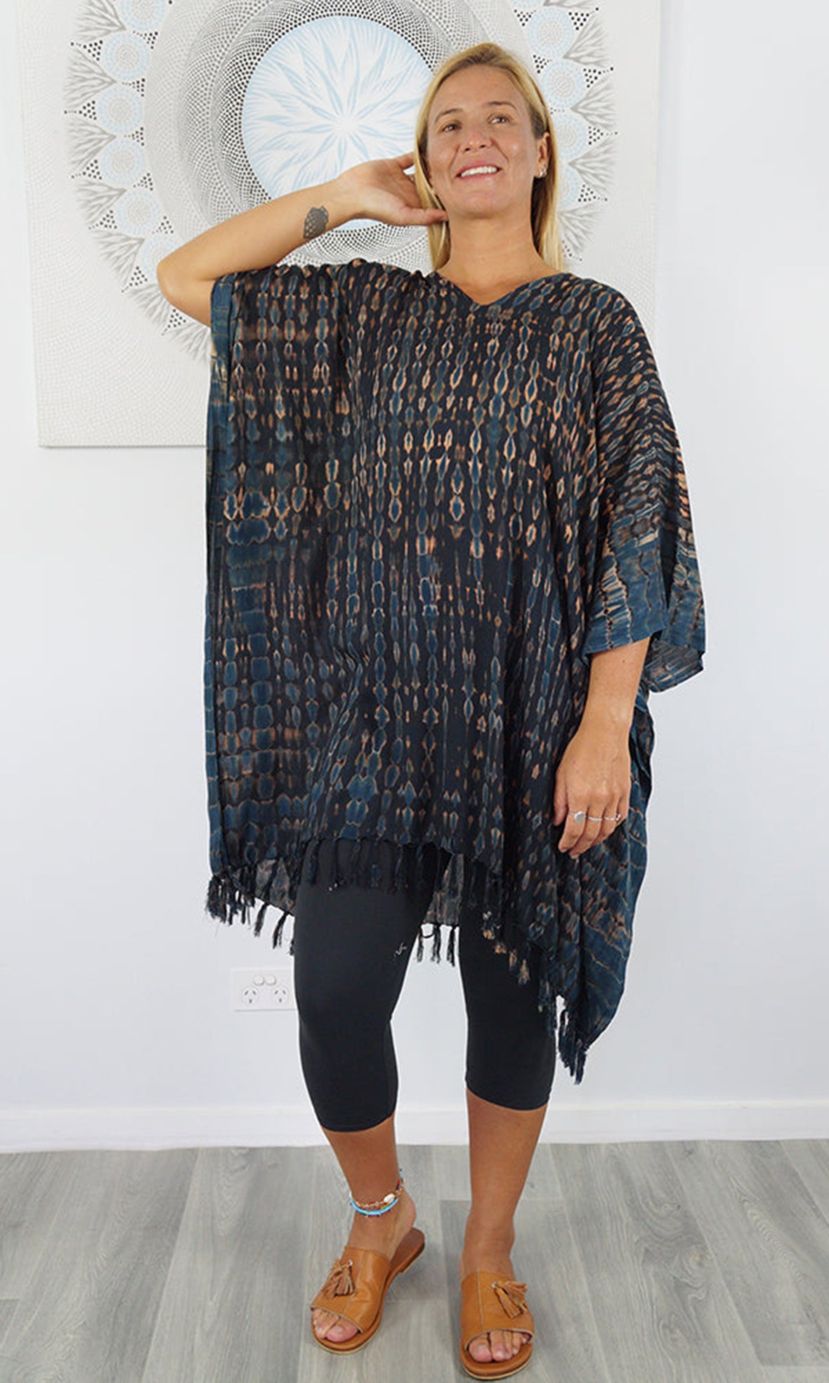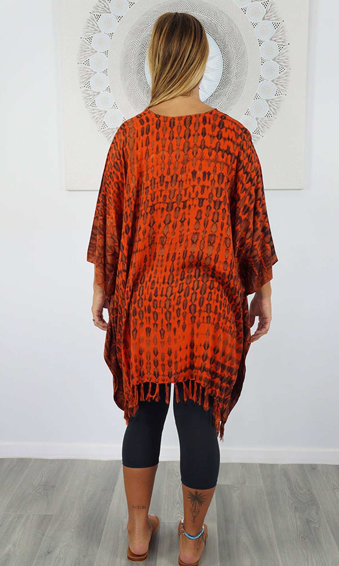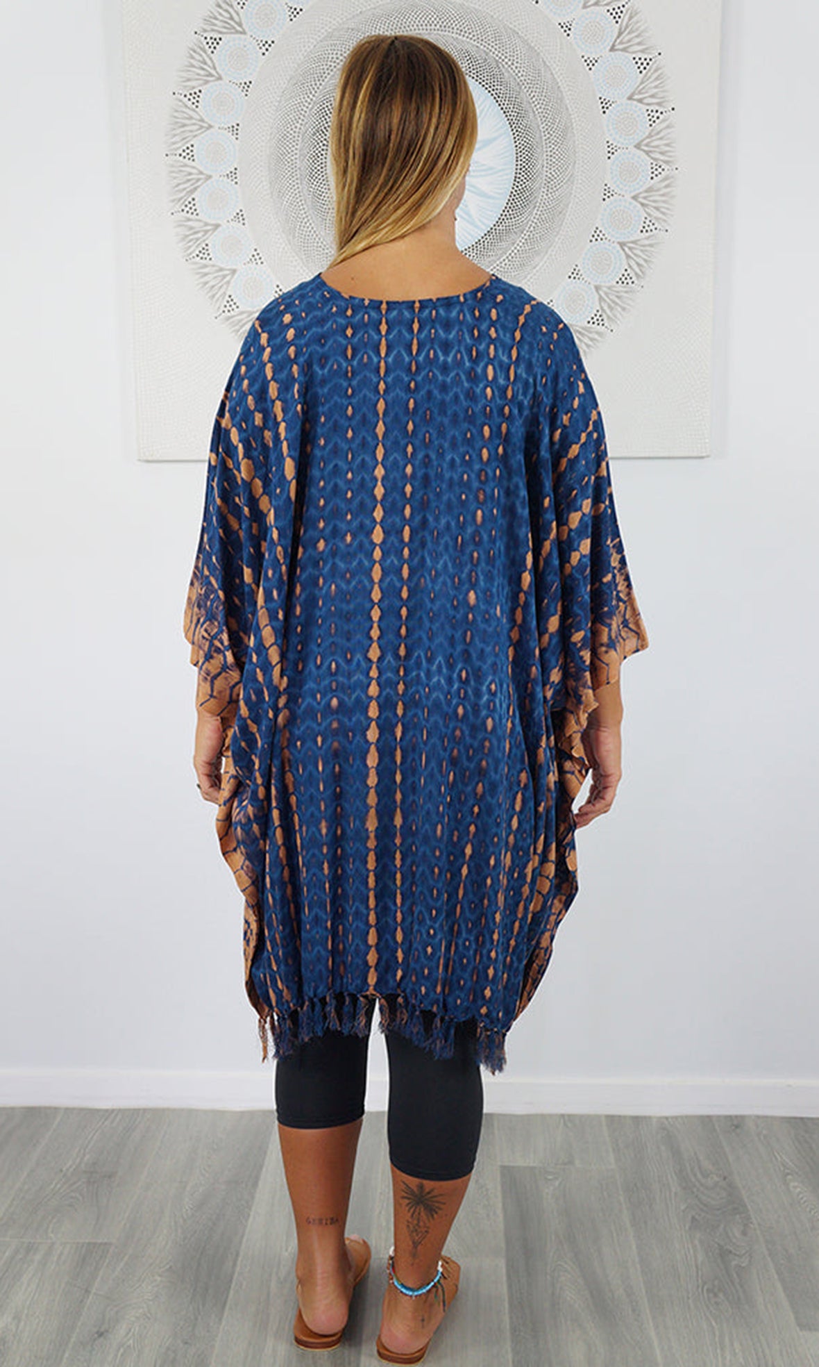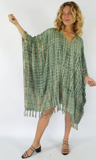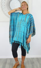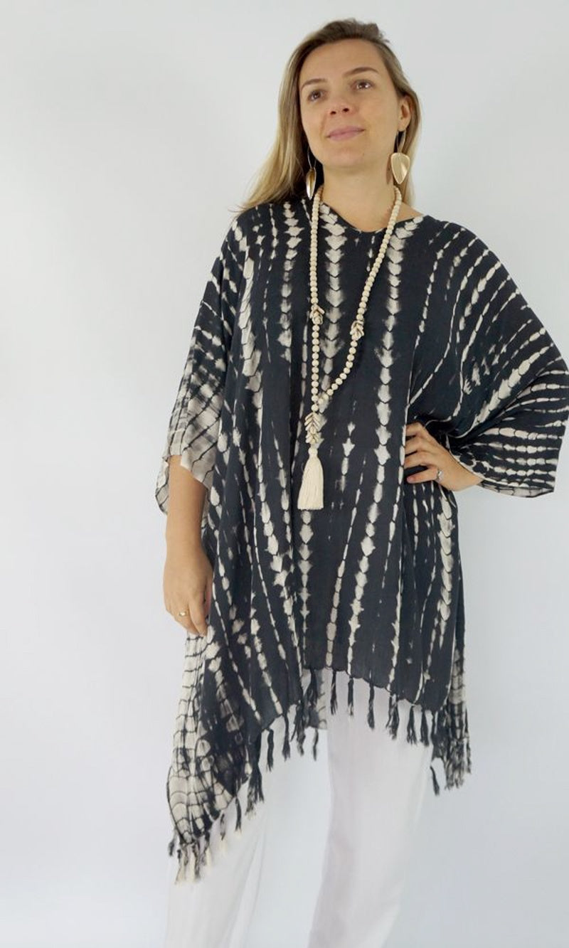 This light rayon kaftan makes a wonderful gift. One size fits size 10 to 26 comfortably. It has tassels at the bottom and is approximently 85cm in length.