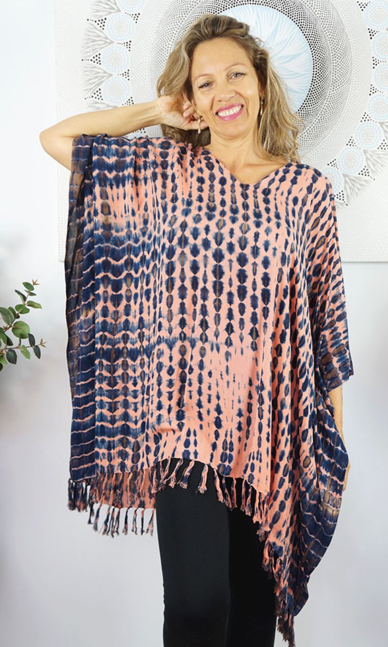 Rayon Cover Up V Neck Crackle Tie Dye, More Colours