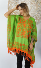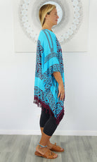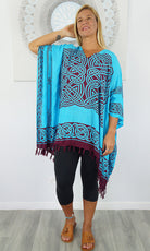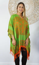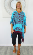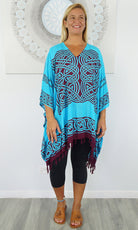 A comfortable way of relaxing around the pool or on the beach, this all rayon cover up suitable for sizes 10 to 26.