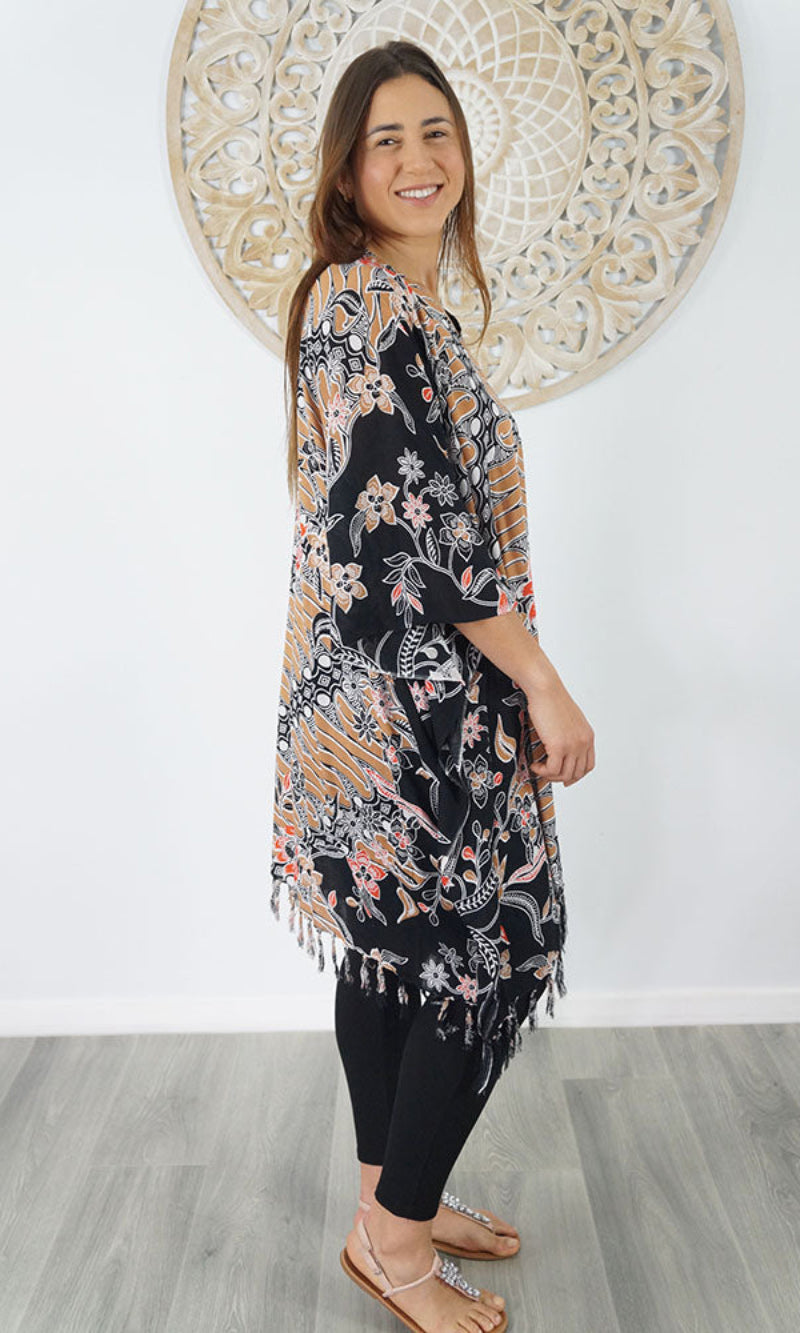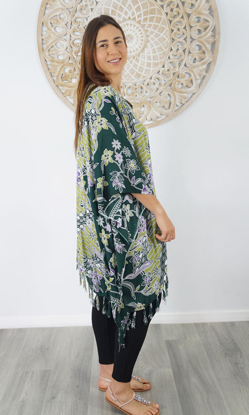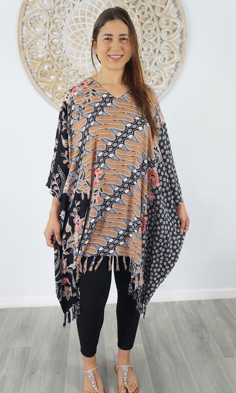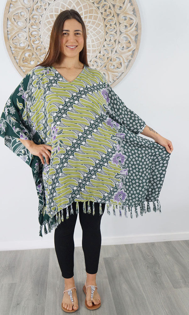 A comfortable way of relaxing around the pool or on the beach, this all rayon cover up suitable for sizes 10 to 26.