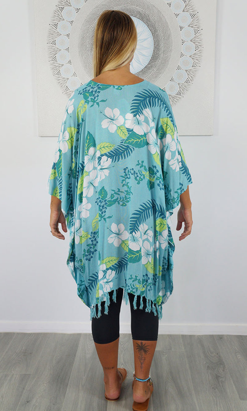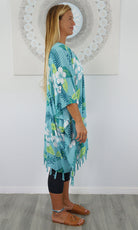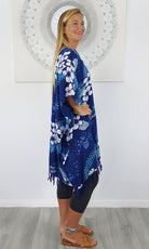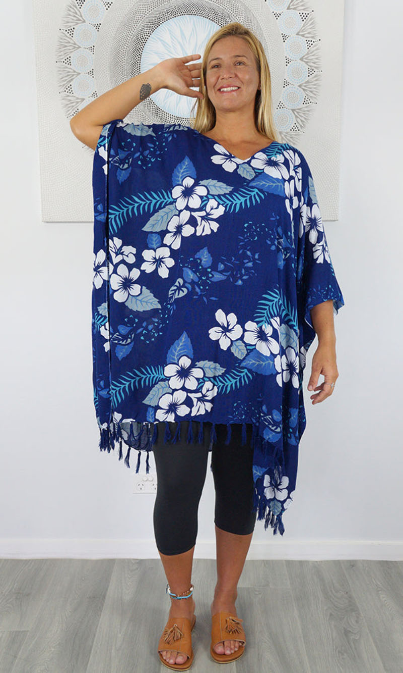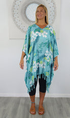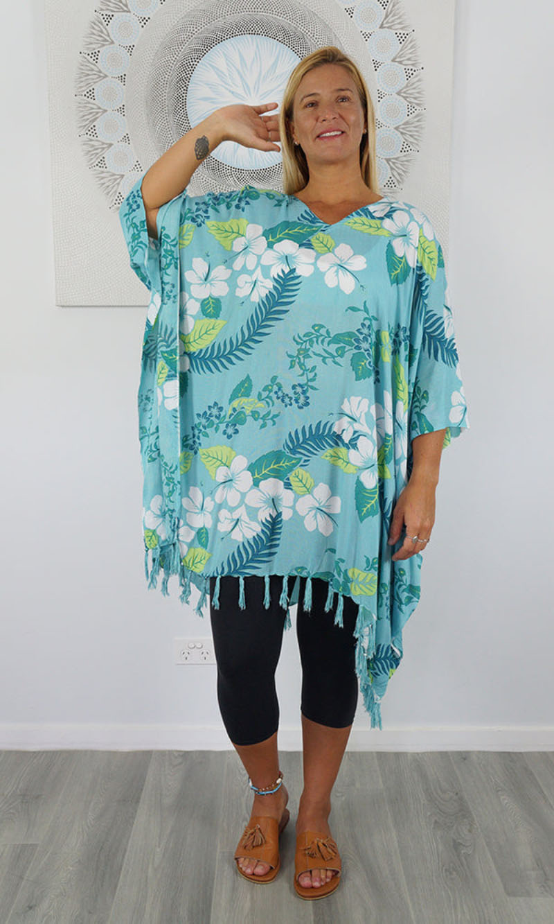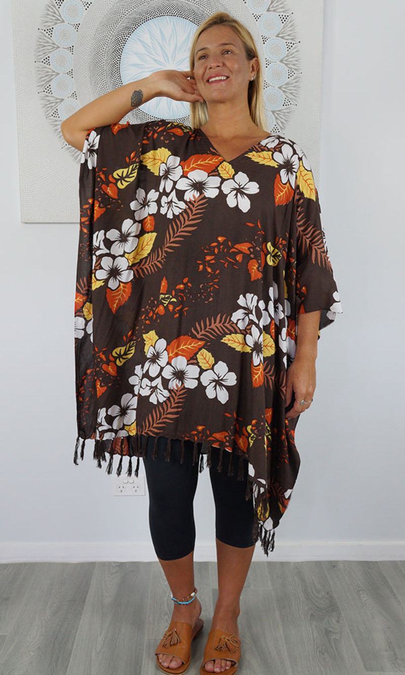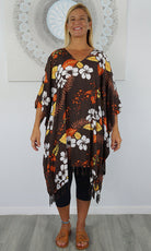 A comfortable way of relaxing around the pool or on the beach, this all rayon cover up suitable for sizes 10 to 26.