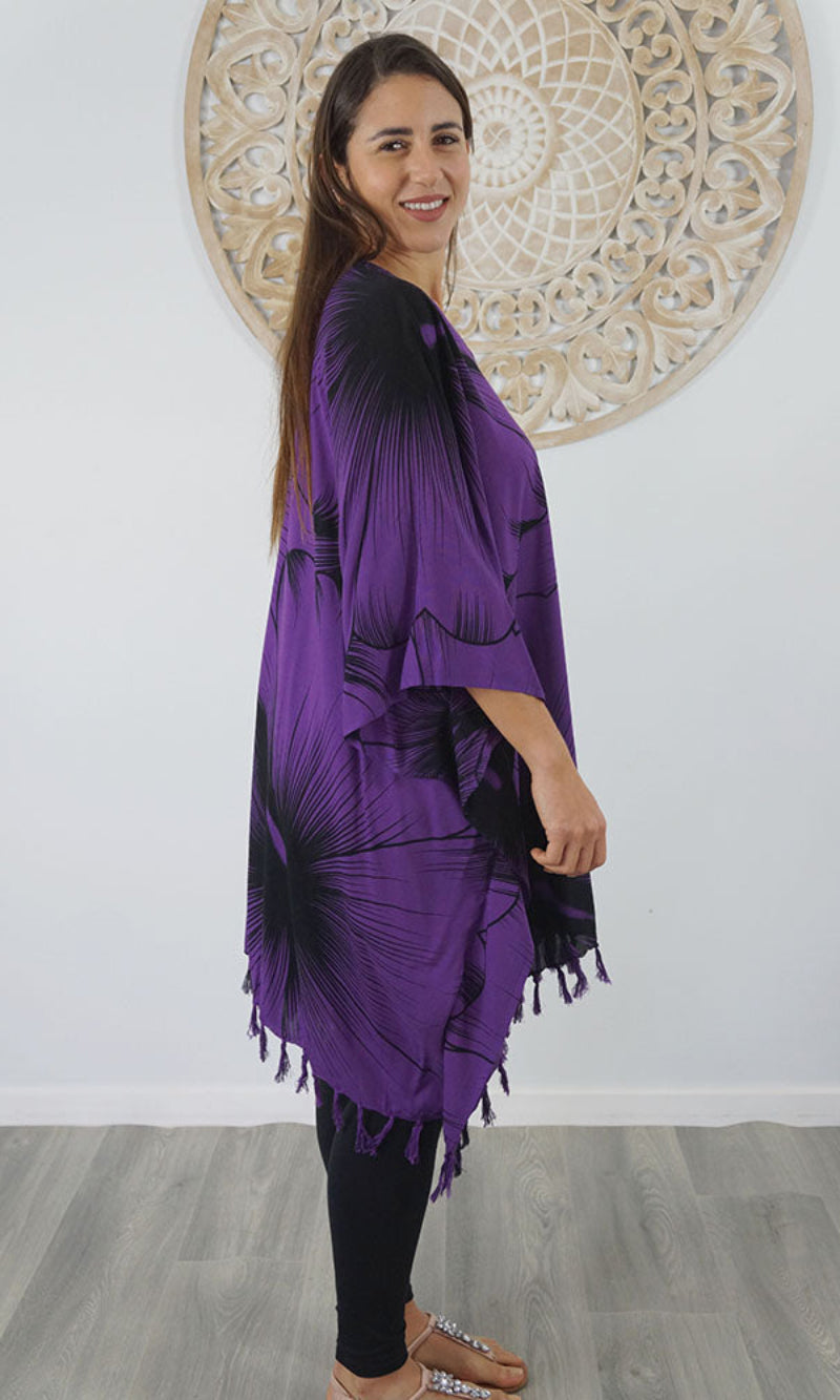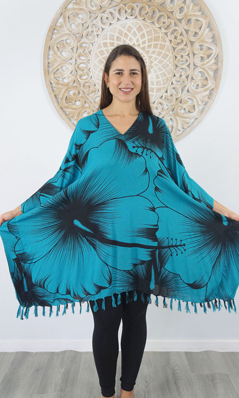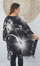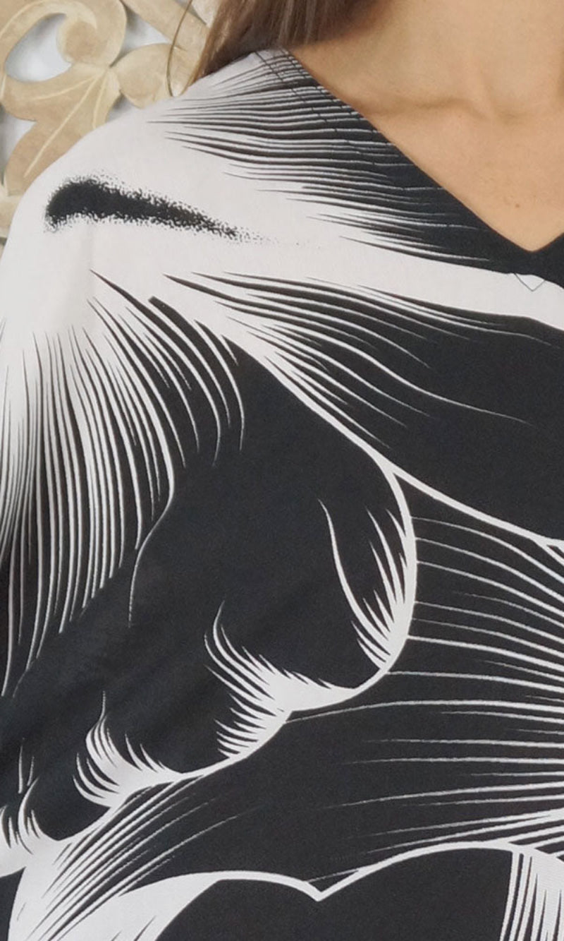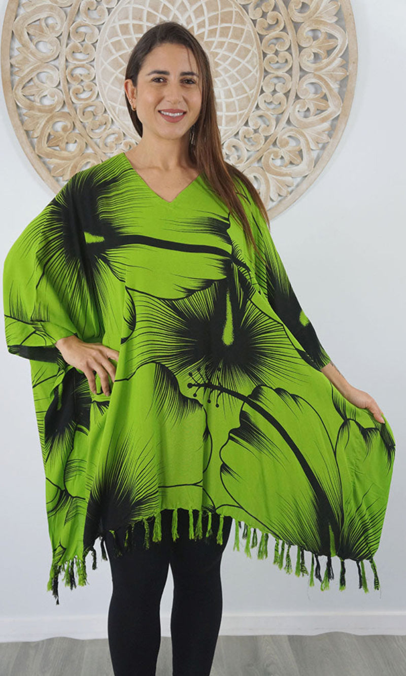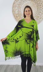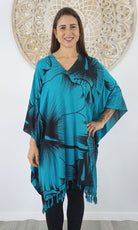 A comfortable way of relaxing around the pool or on the beach, this all rayon cover up suitable for sizes 10 to 26.