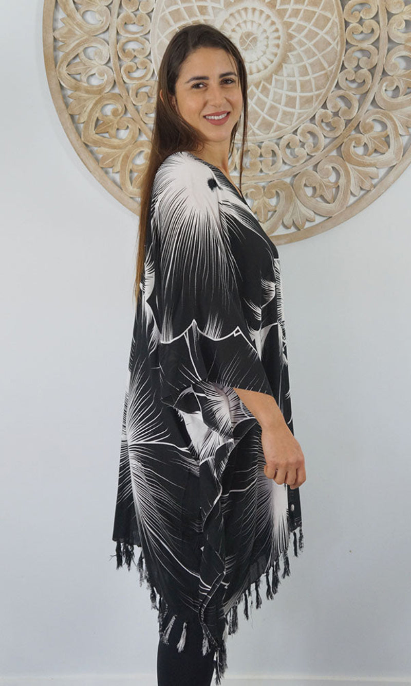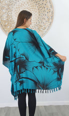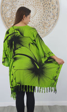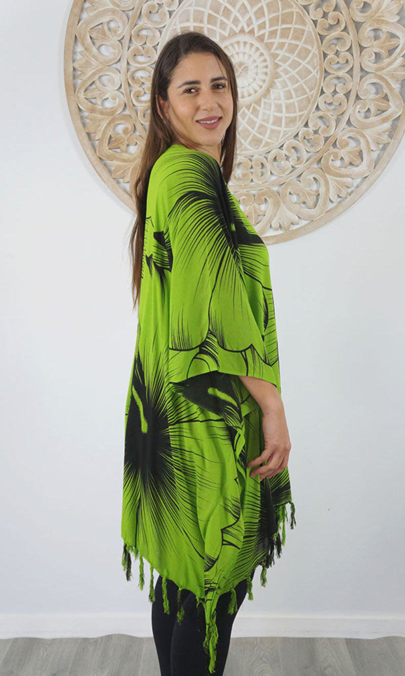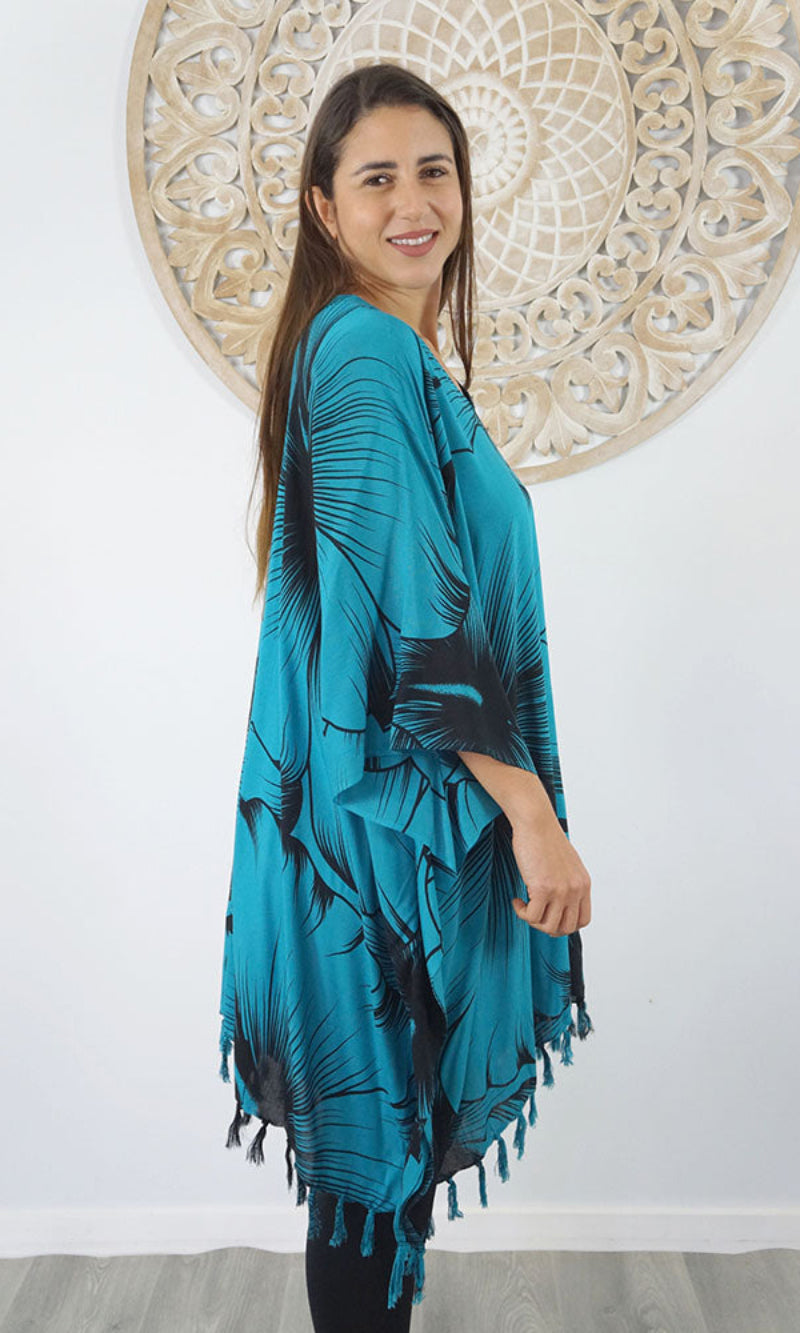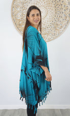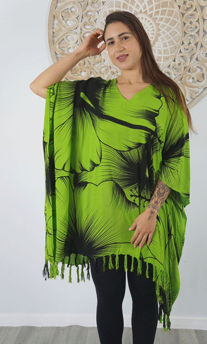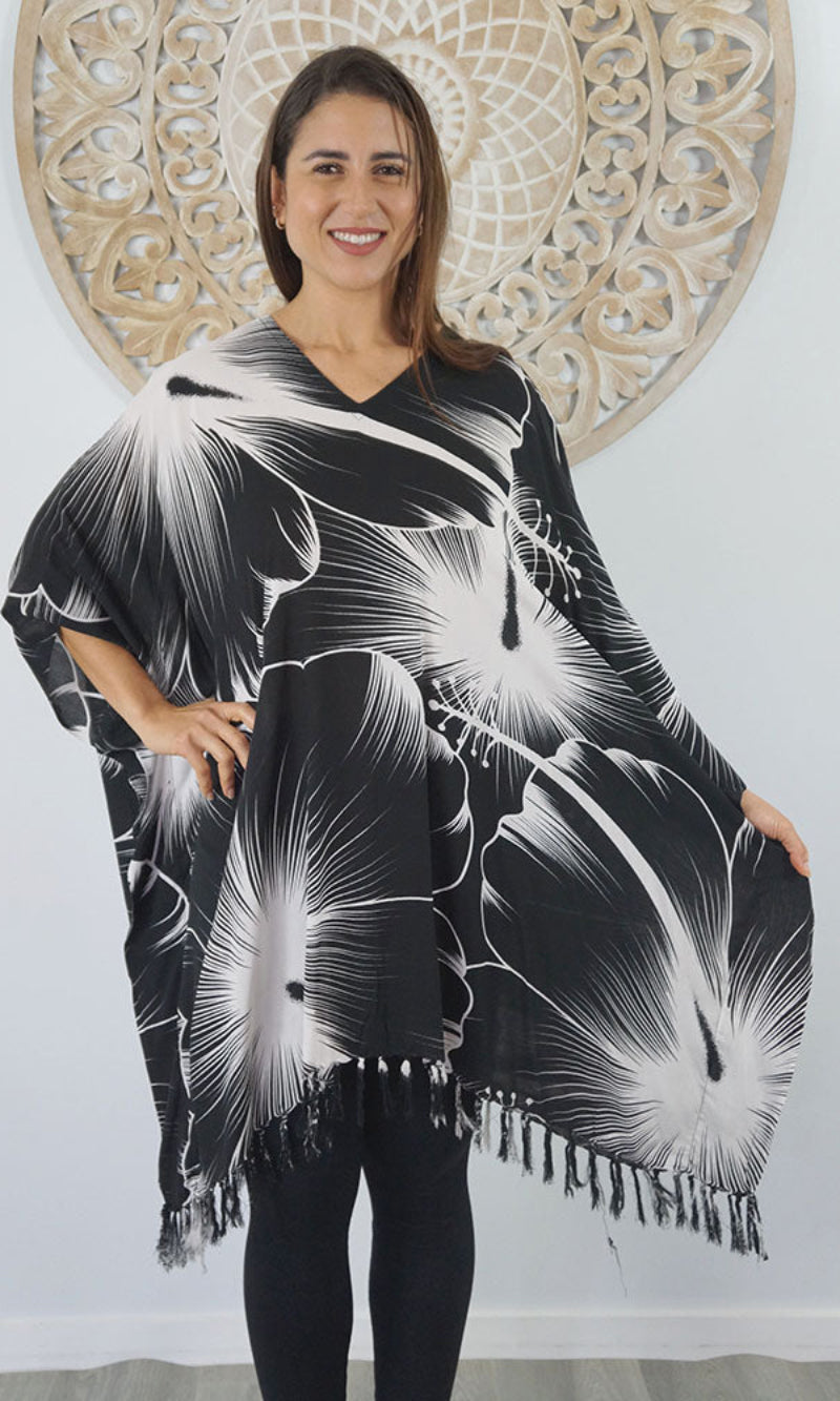 A comfortable way of relaxing around the pool or on the beach, this all rayon cover up suitable for sizes 10 to 26.