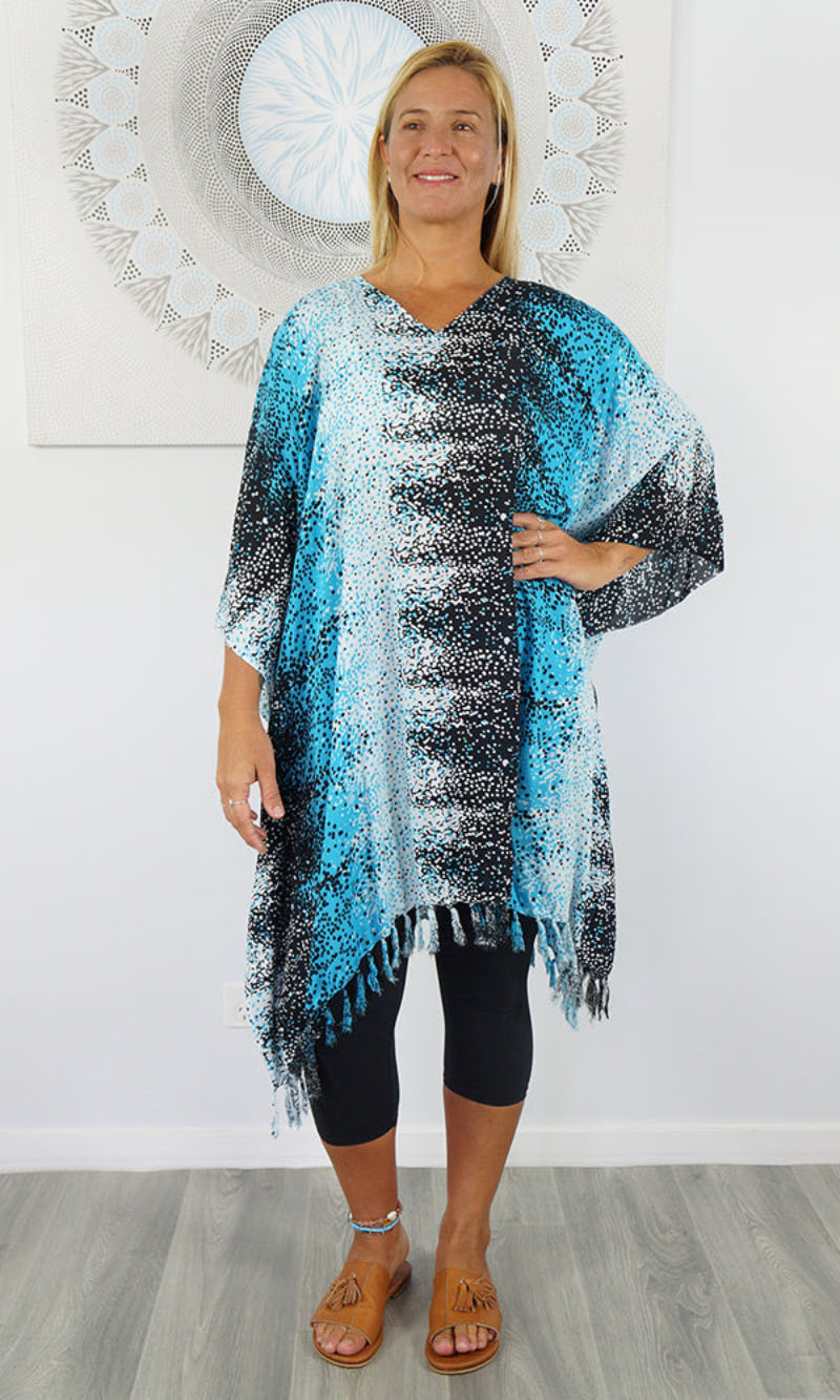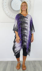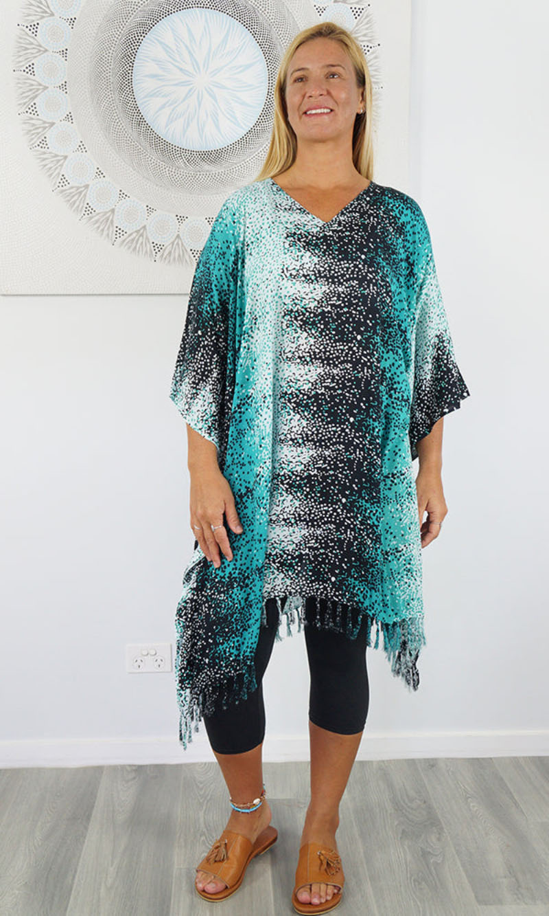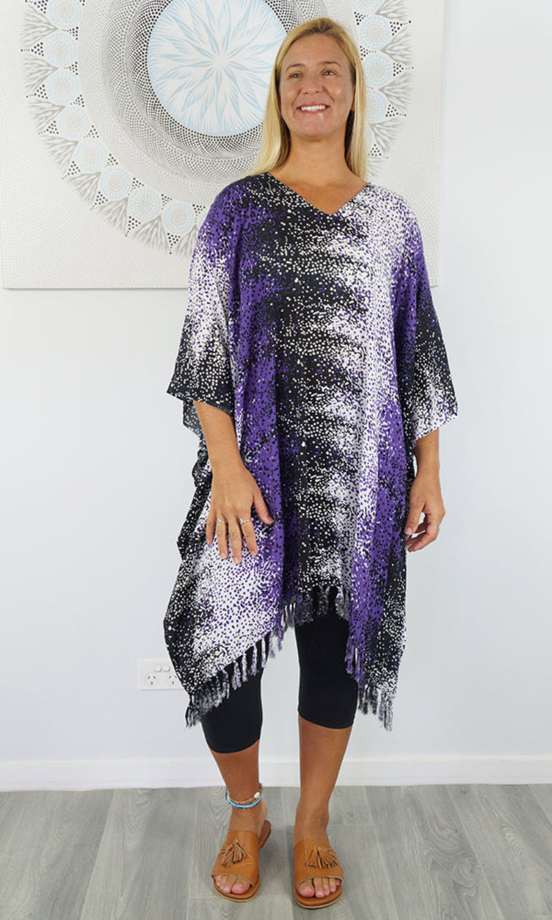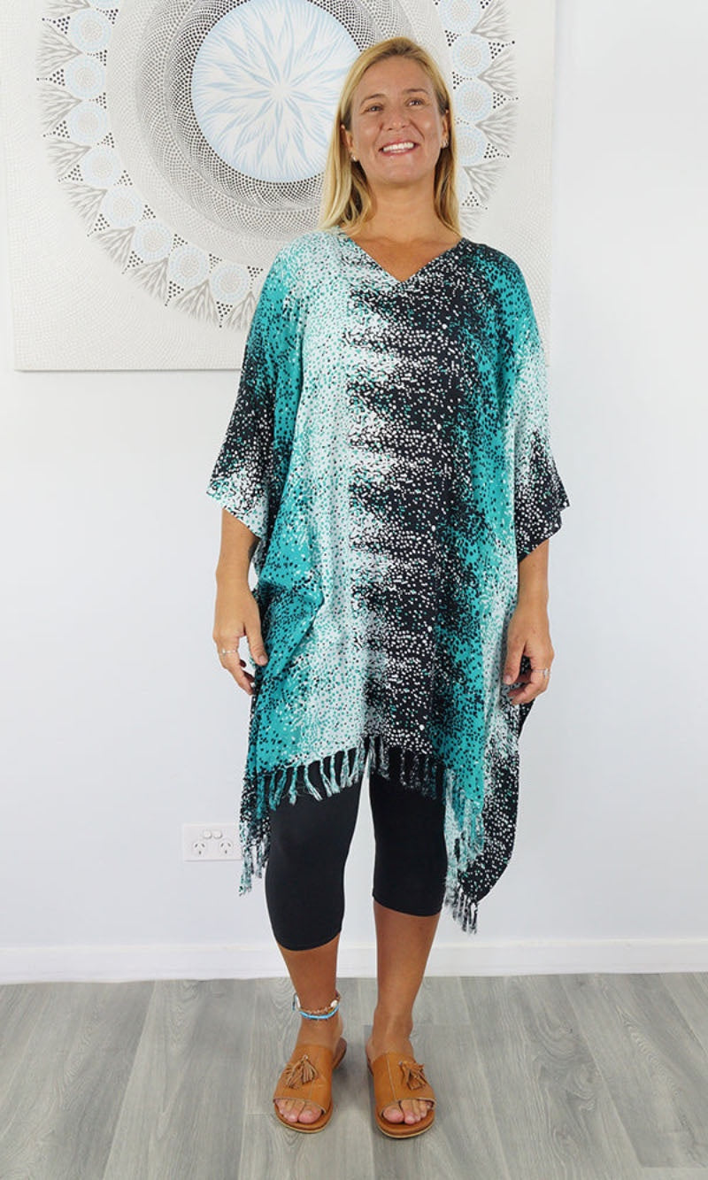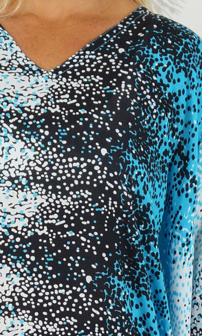 A comfortable way of relaxing around the pool or on the beach, this all rayon cover up suitable for sizes 10 to 26.