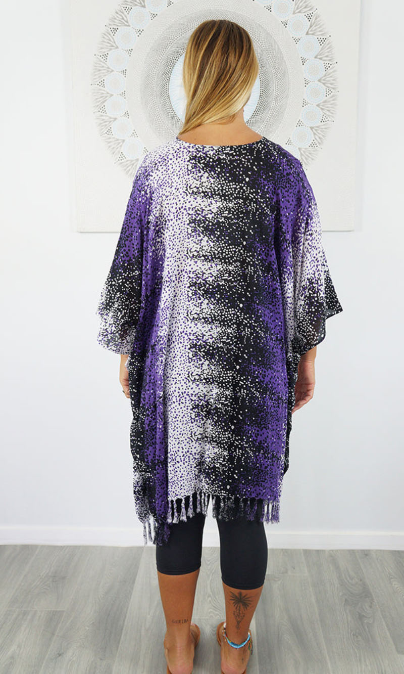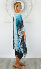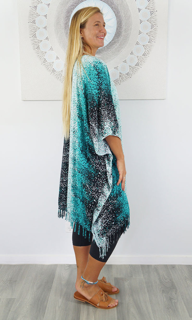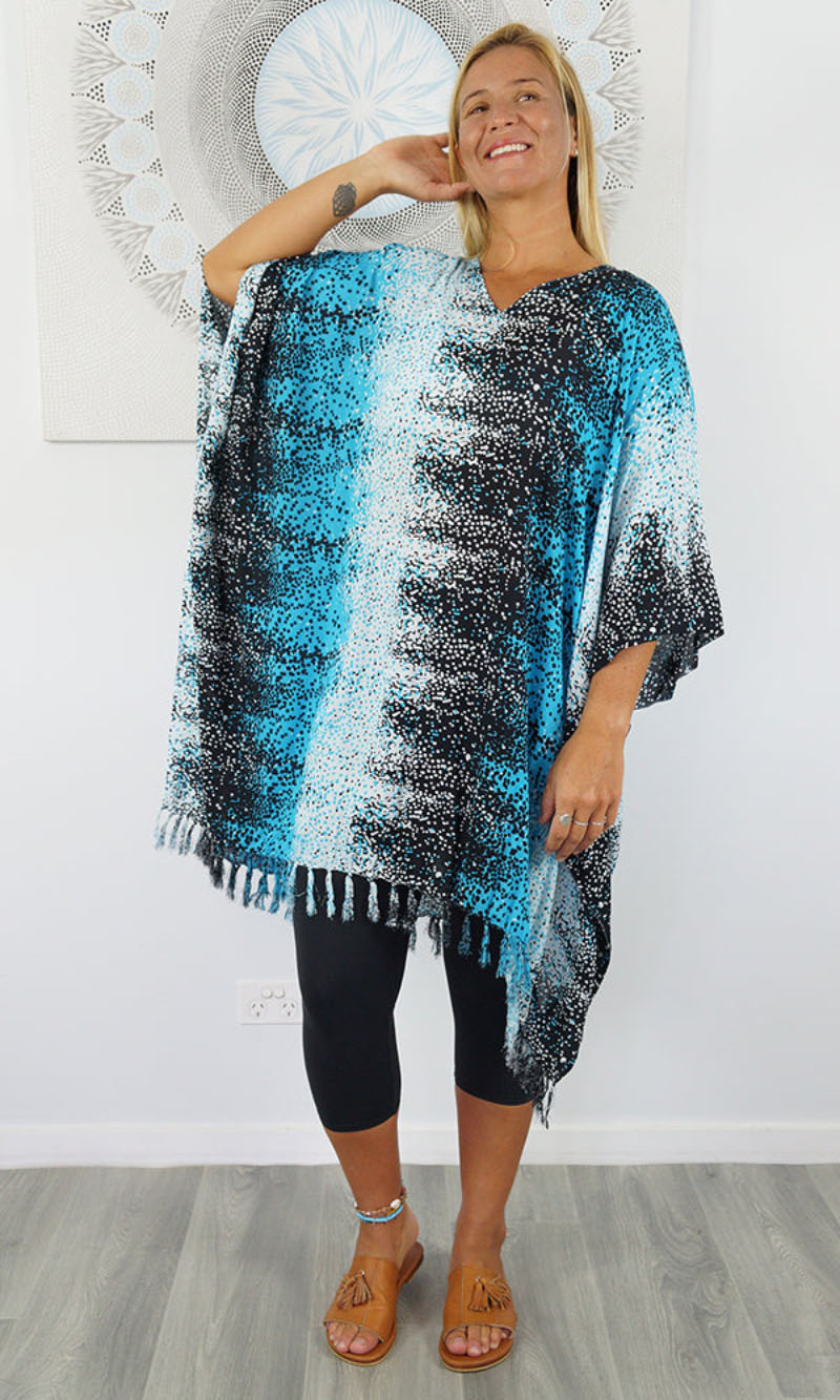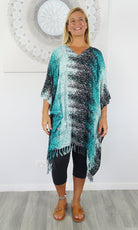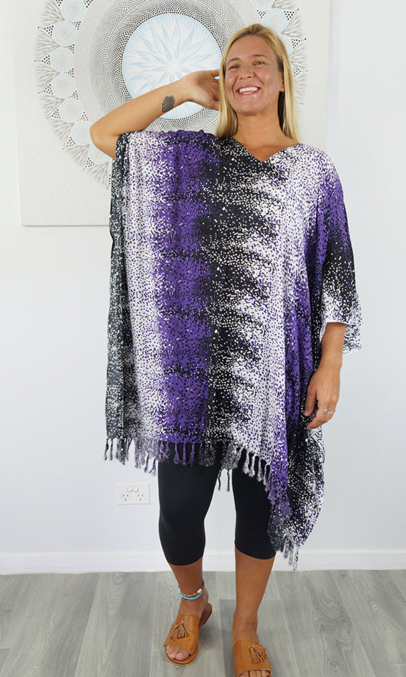 A comfortable way of relaxing around the pool or on the beach, this all rayon cover up suitable for sizes 10 to 26.