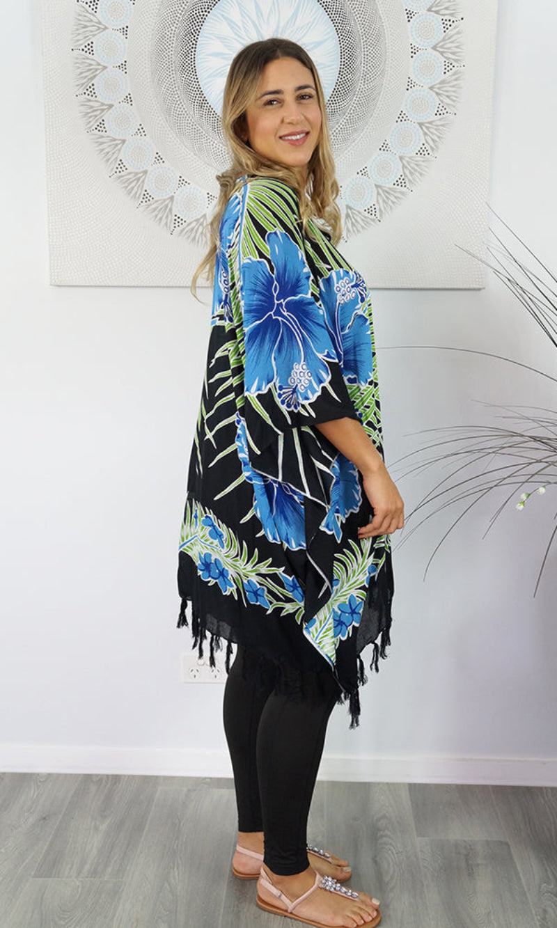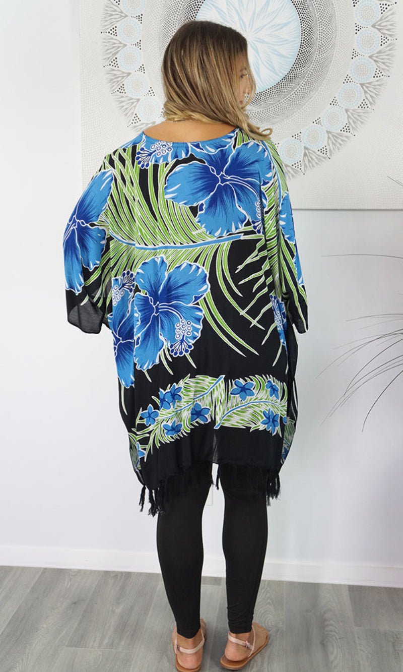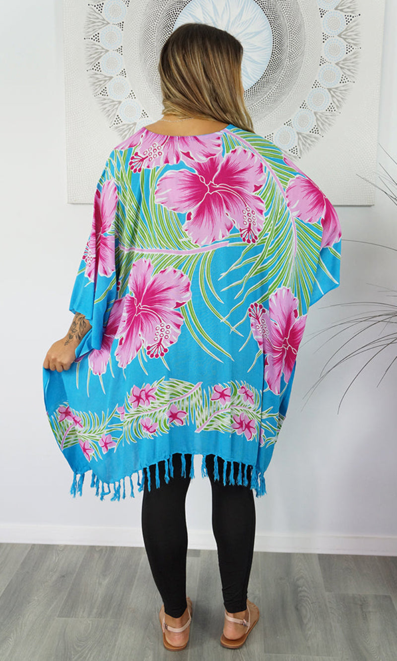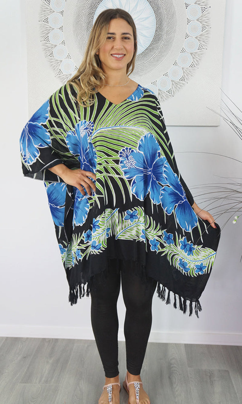 A comfortable way of relaxing around the pool or on the beach, this all rayon Floral print cover up suitable for sizes 10 to 26. Finished length is approximately 85cm