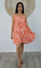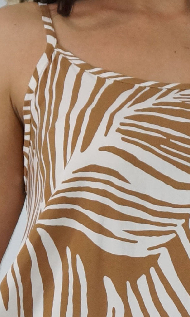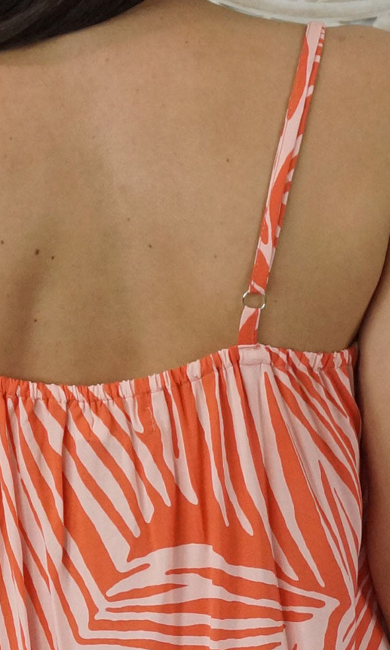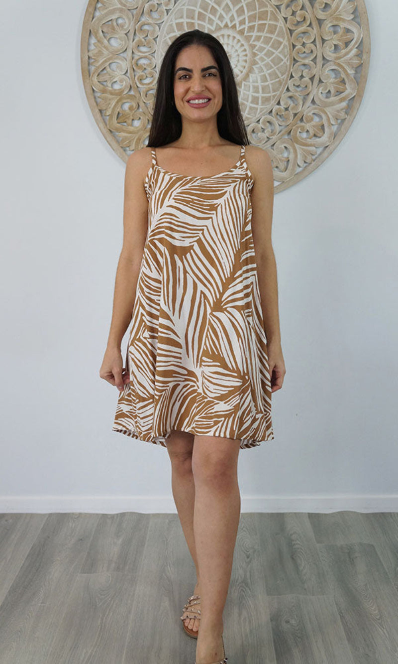 This is a lightweight mini dress that features thin adjustable straps with elastic on the back.