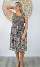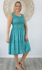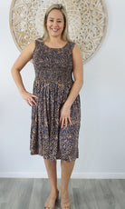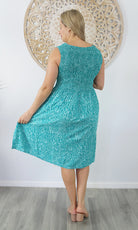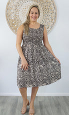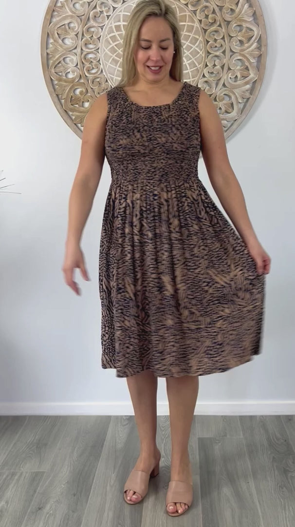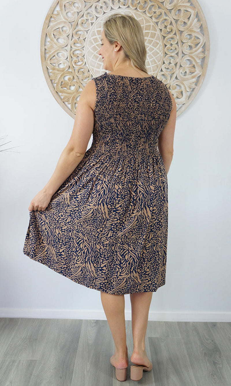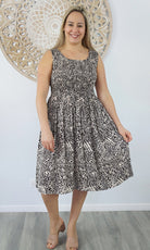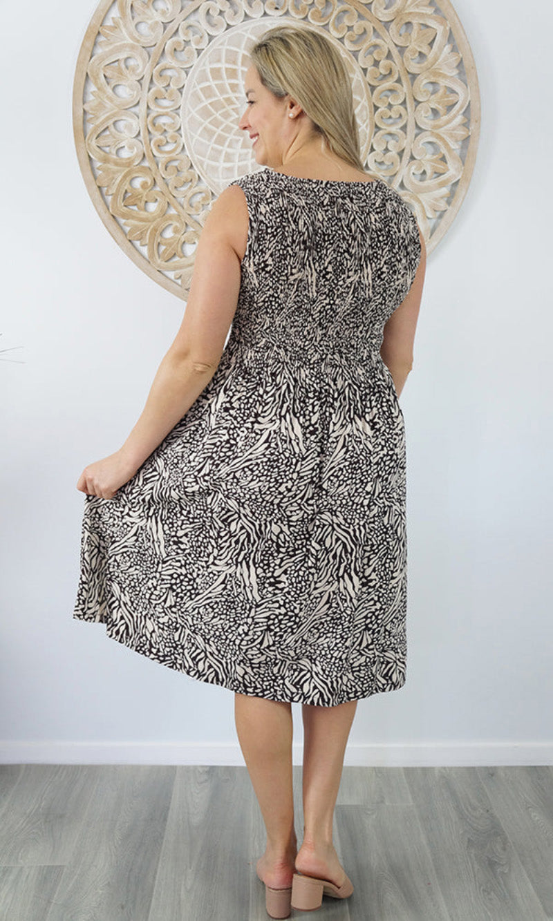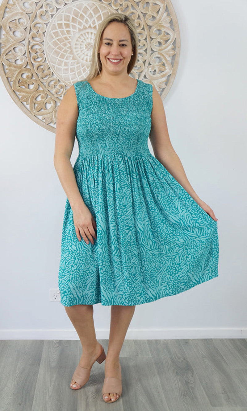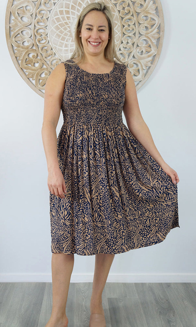 Abstract design singlet shirring dress. To suit most sizes 8-18. Lovely and cool rayon fabric.