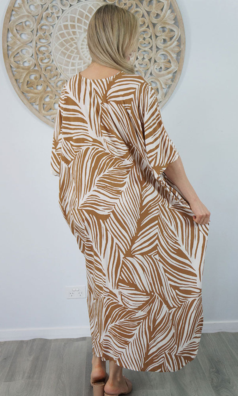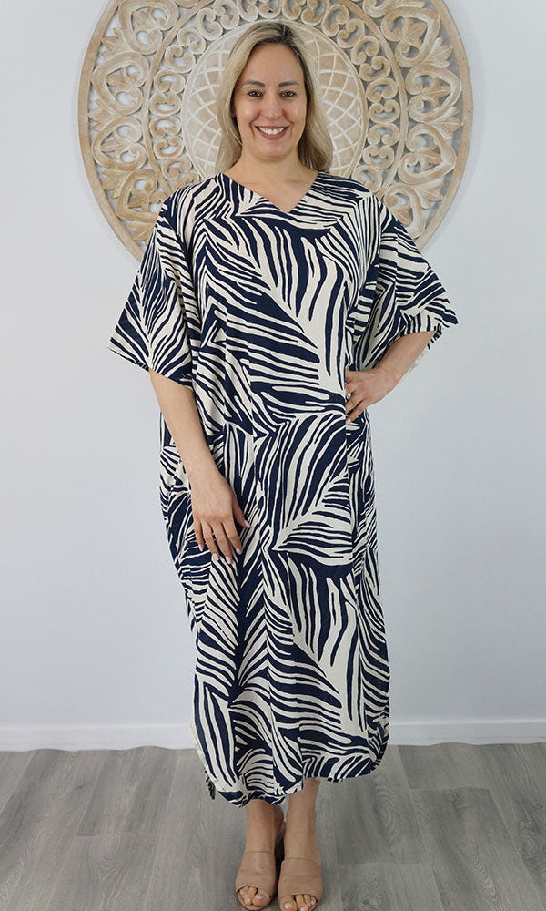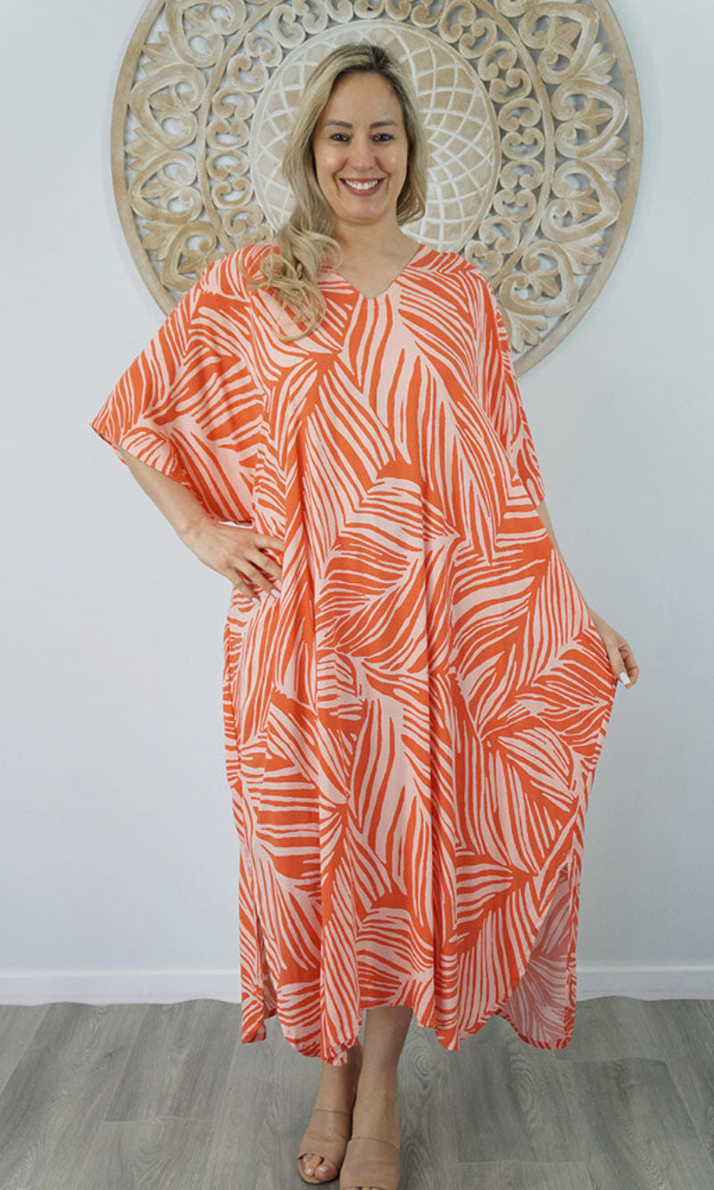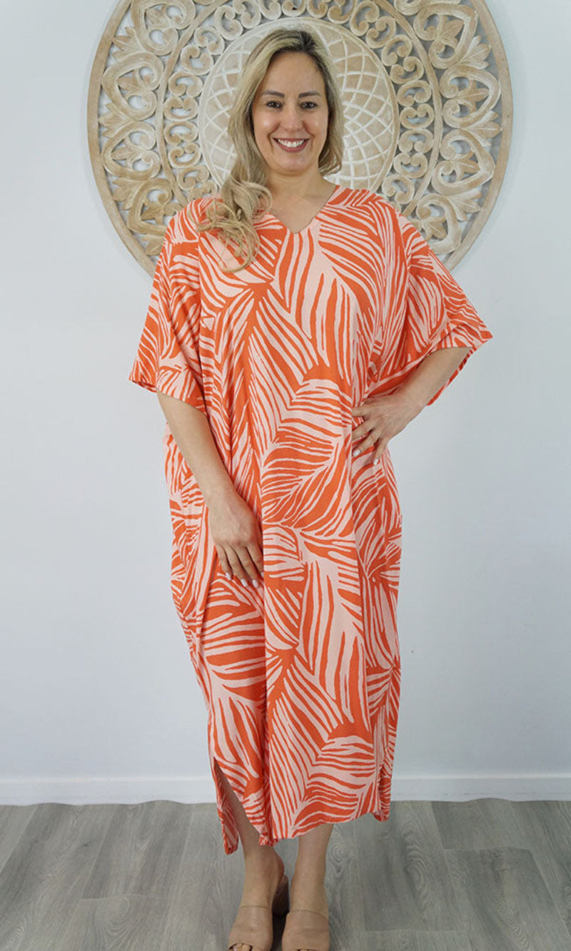 This light rayon kaftan makes a wonderful gift. One size fits size 10 to 26 comfortably. Has side splits at the bottom. The bling kaftans have sequins sewn on. Finished length is approximently 125cms.