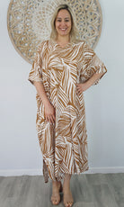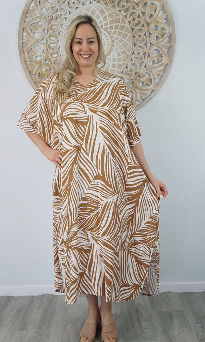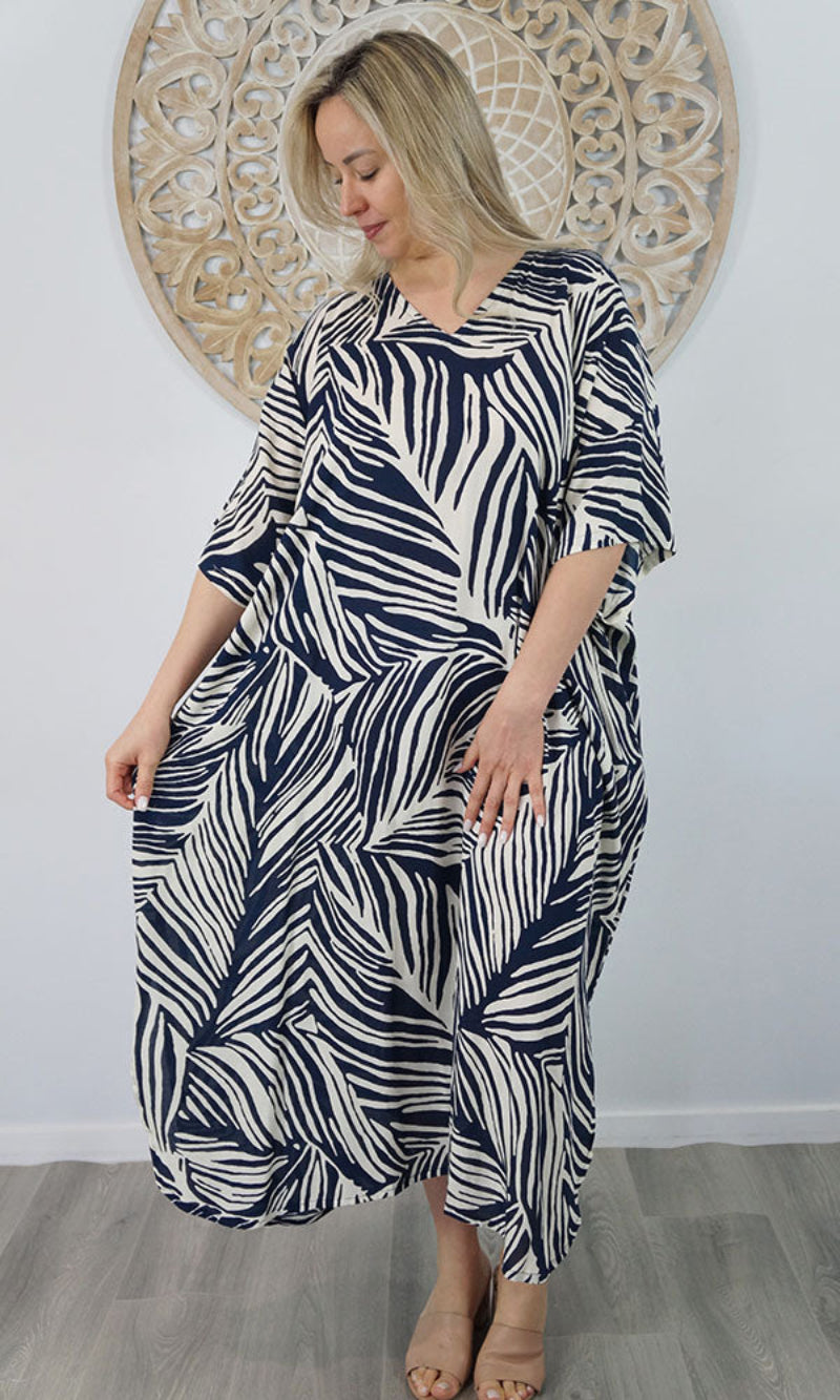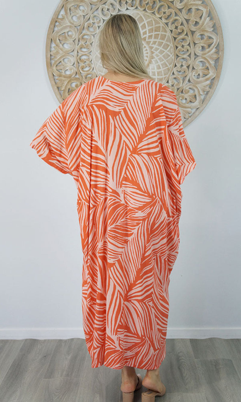 This light rayon kaftan makes a wonderful gift. One size fits size 10 to 26 comfortably. Has side splits at the bottom. The bling kaftans have sequins sewn on. Finished length is approximently 125cms.
