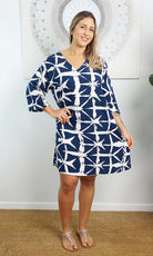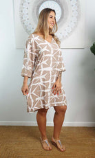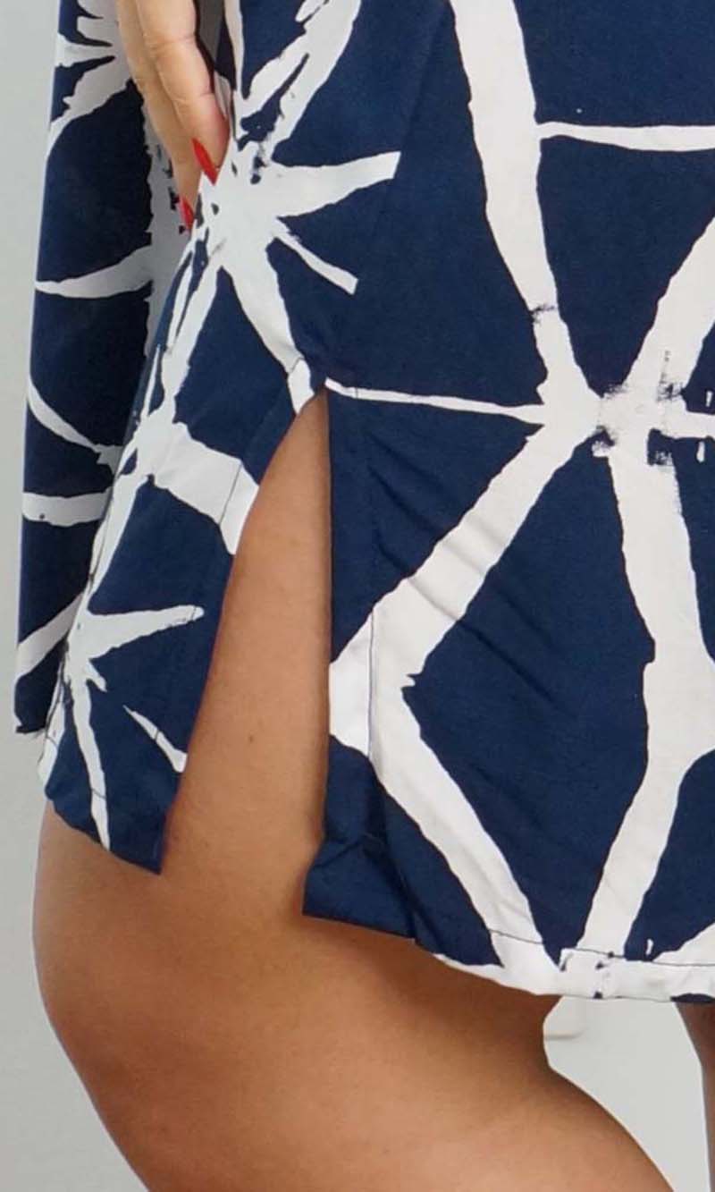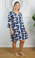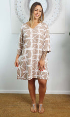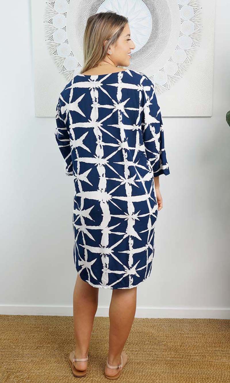 Made from rayon, this casual 3/4 sleeve tunic is great for around the pool or at the beach.