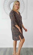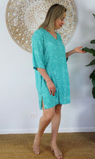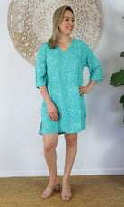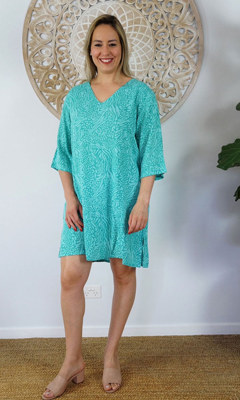 Made from rayon, this casual 3/4 sleeve tunic is great for around the pool or at the beach.