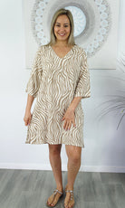 Made from rayon, this casual 3/4 sleeve tunic is great for around the pool or at the beach.