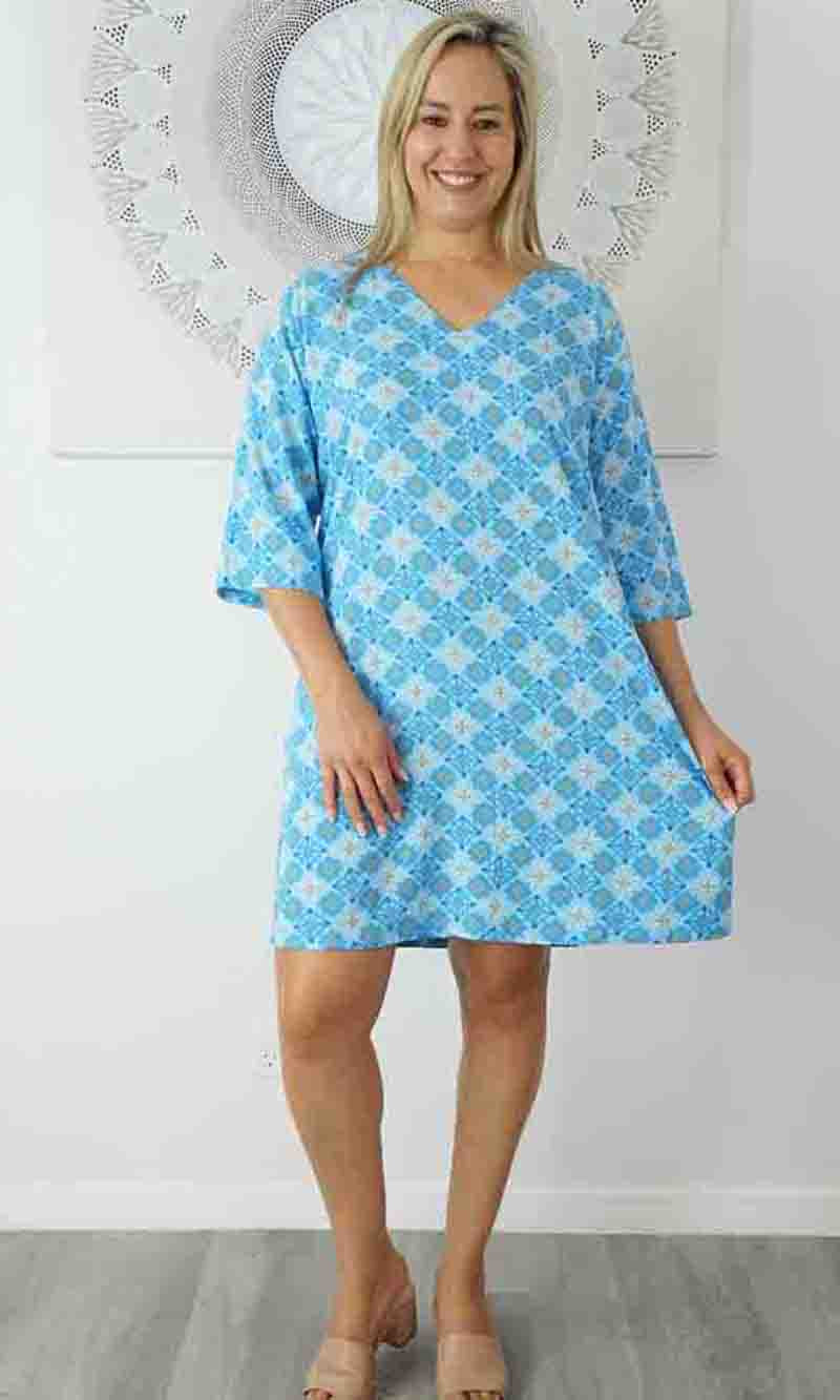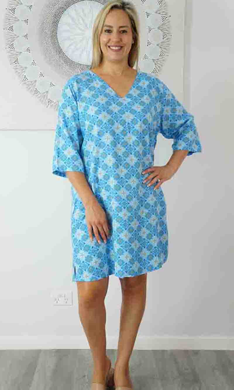 Rayon Tunic 3/4 Sleeve Snowflower, More Colours