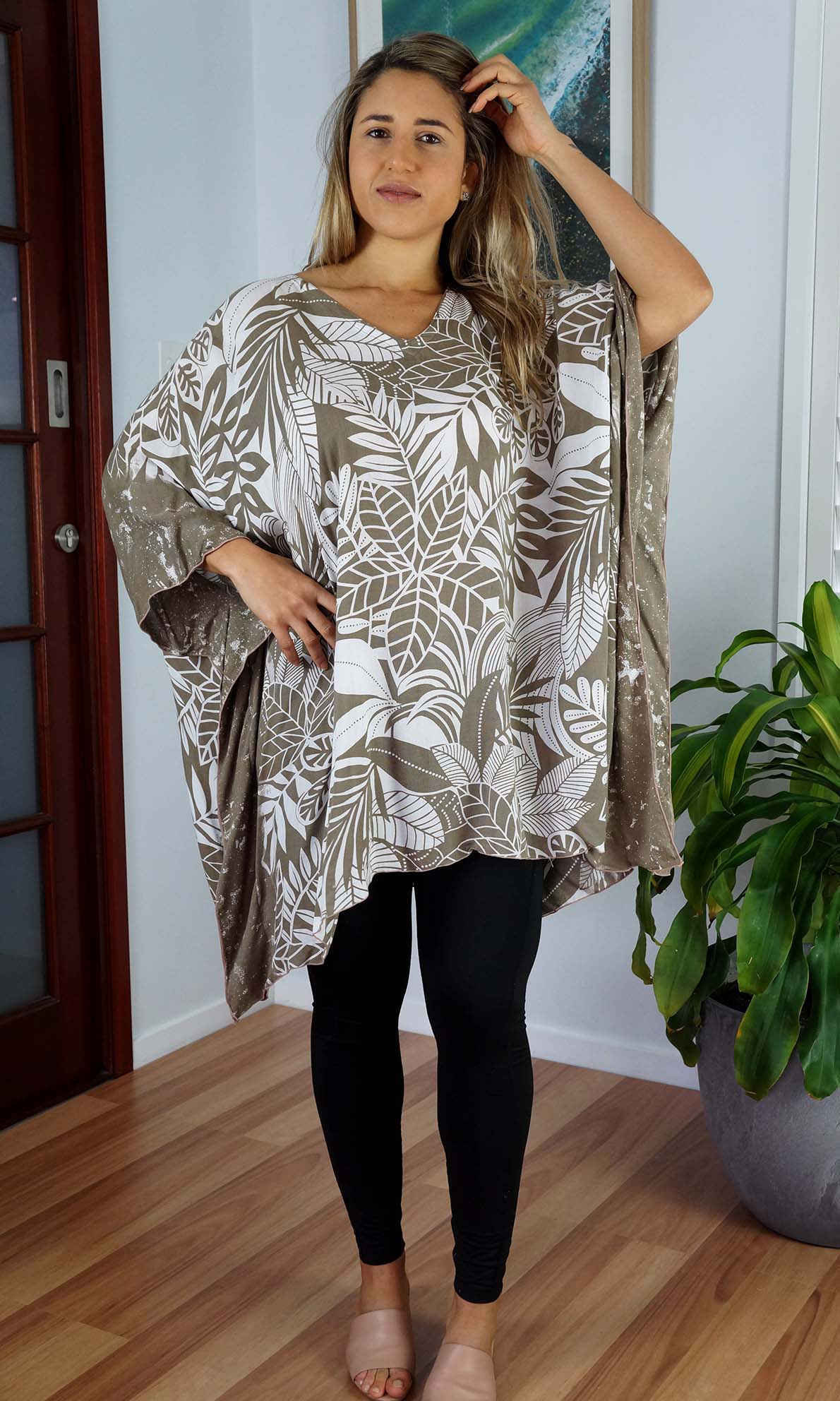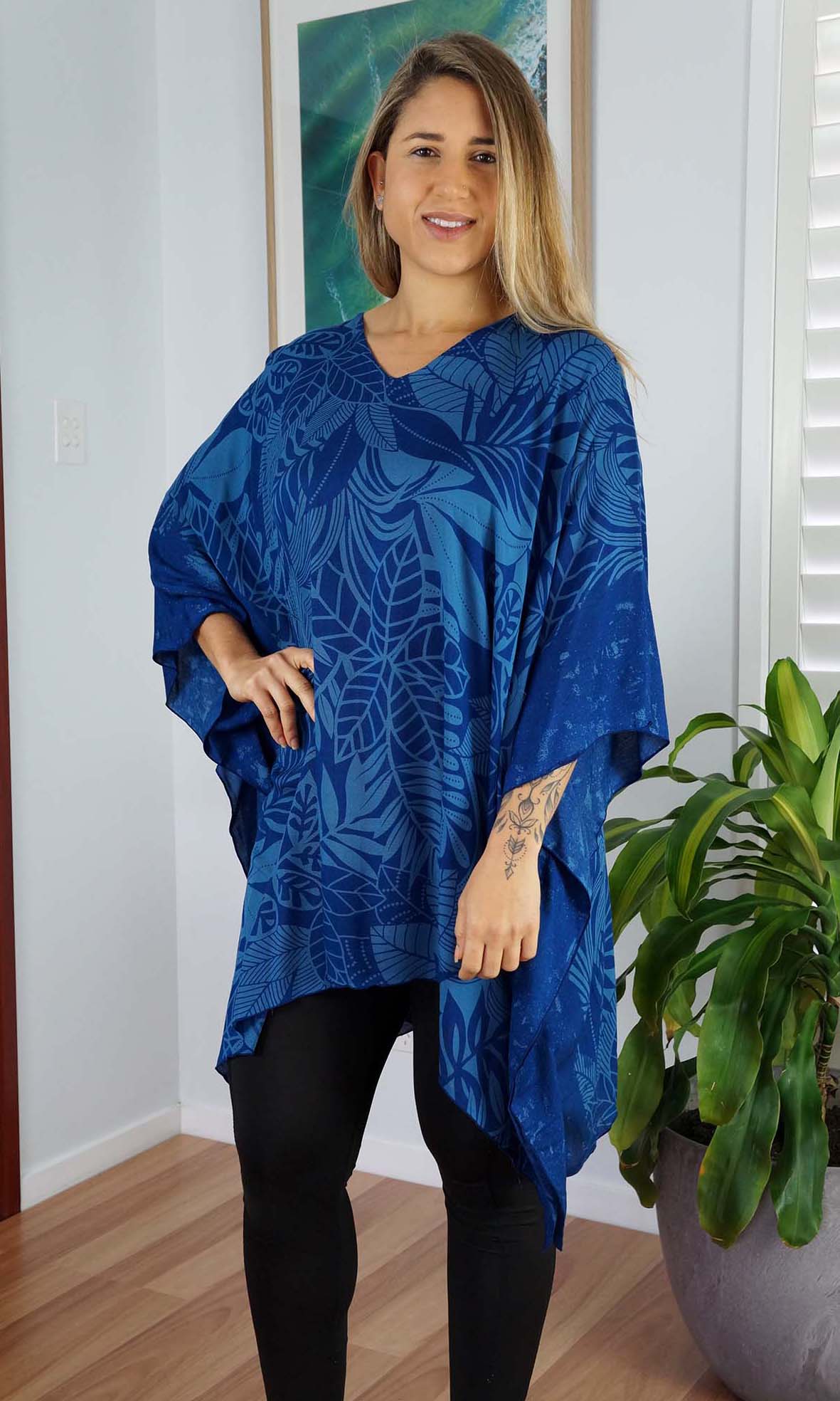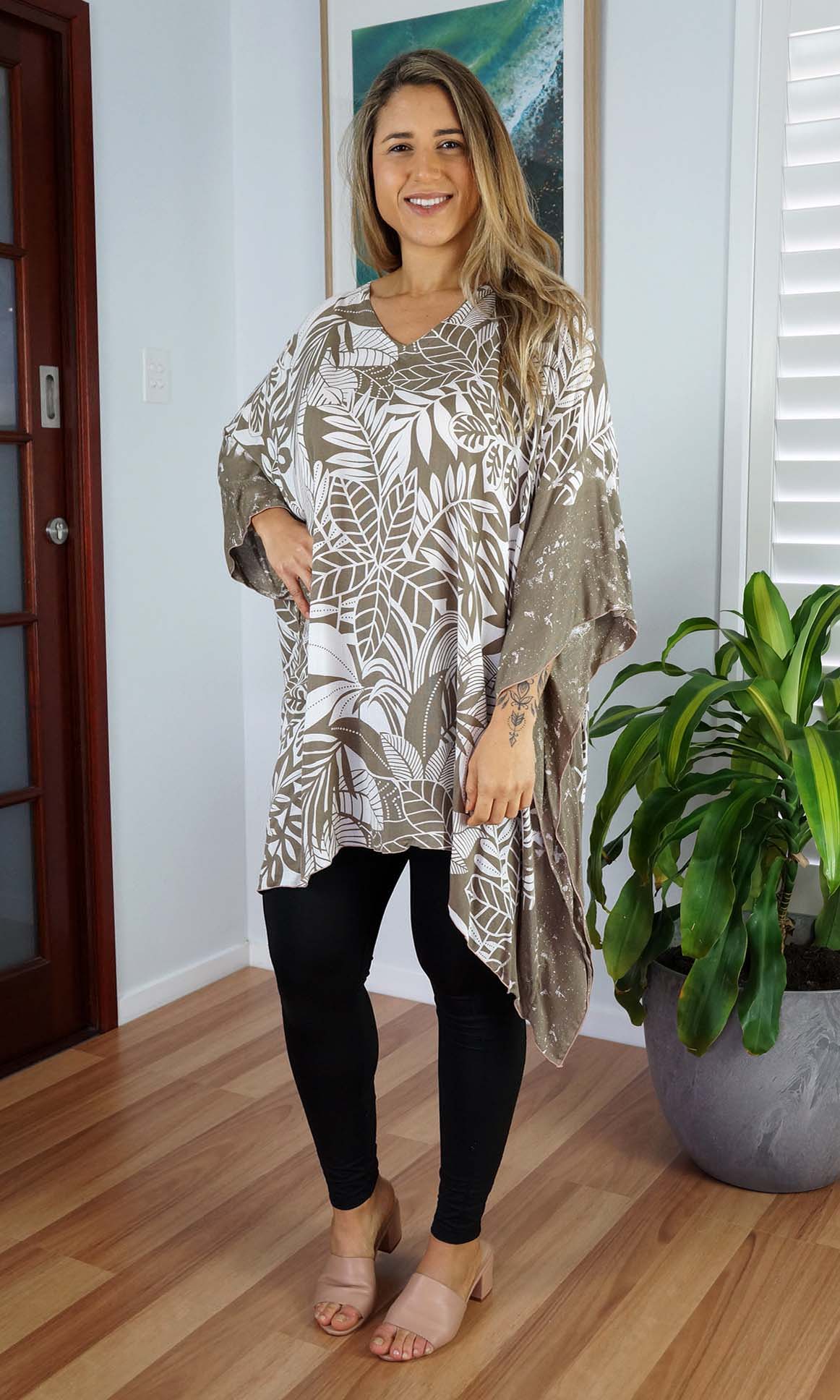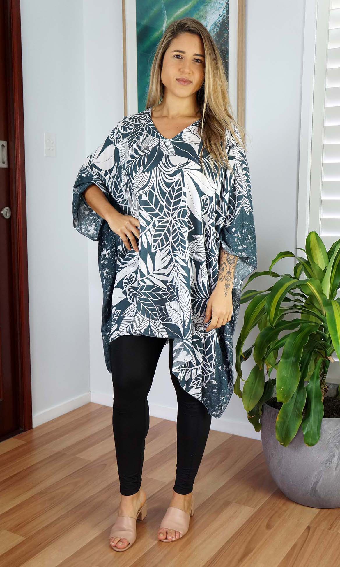 Can be worn over the swimmers as a kaftan, or over pants as a top. Free and flowing comfortable.