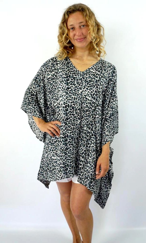 A comfortable way of relaxing around the pool or on the beach, this all rayon tunic is suitable for sizes 10 to 26.