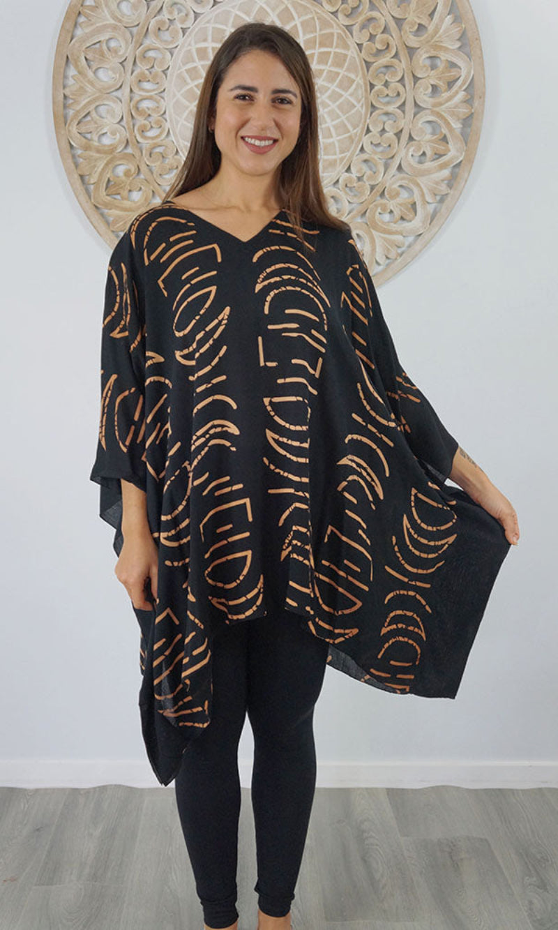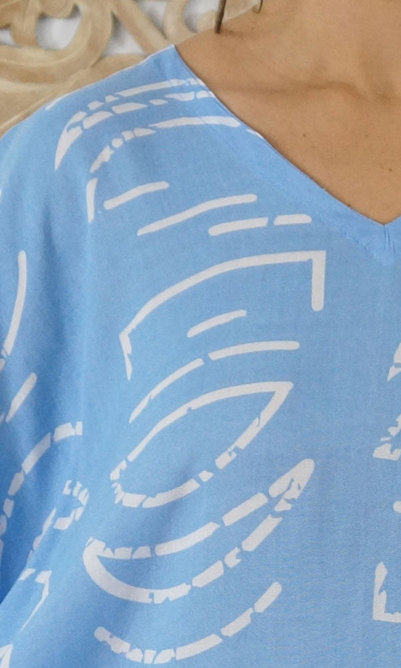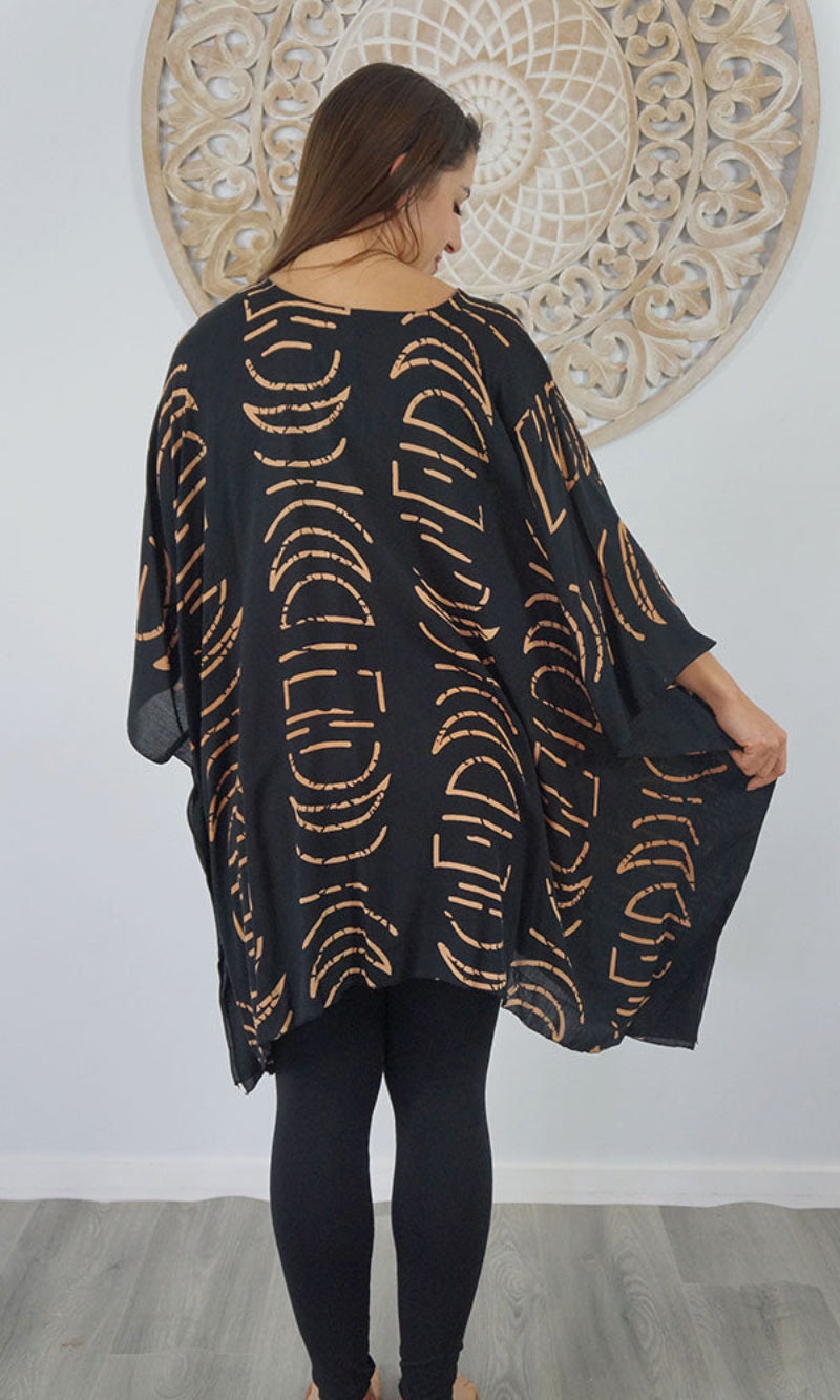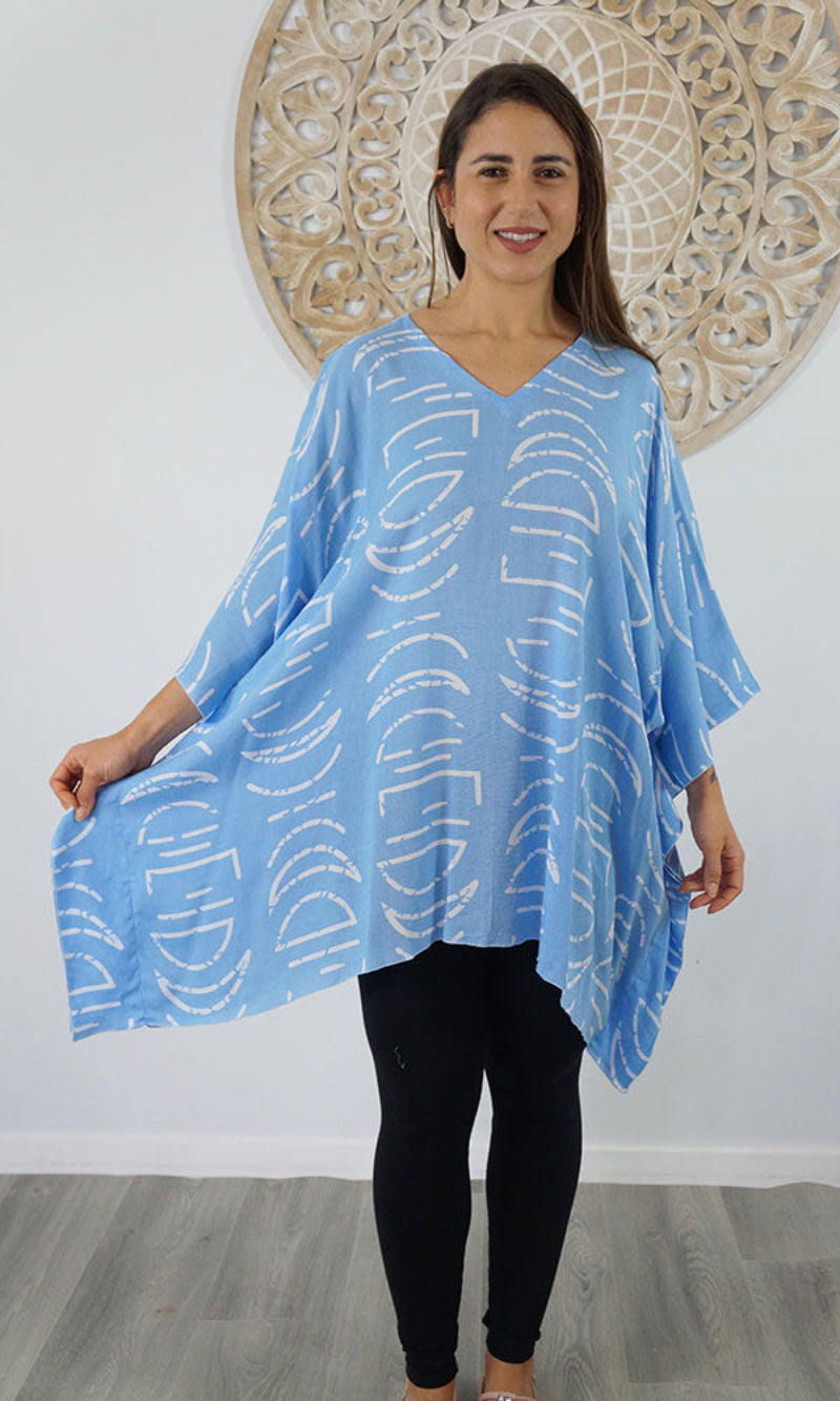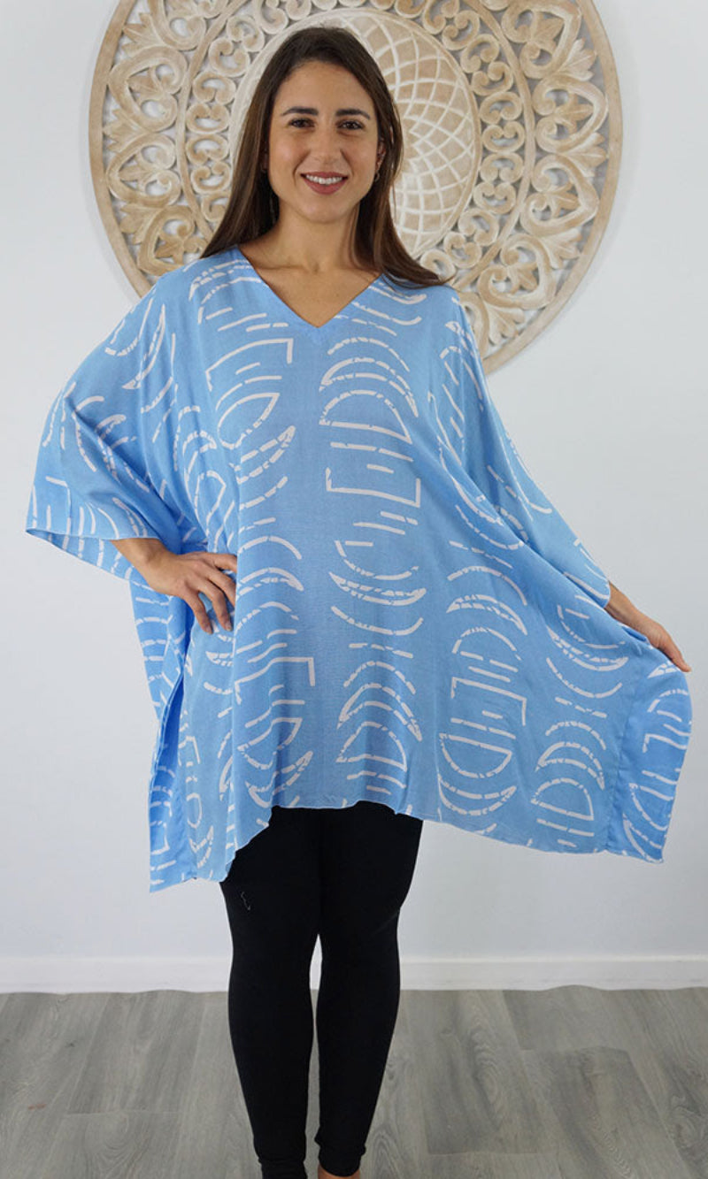 Can be worn over the swimmers as a kaftan, or over pants as a top. Free and flowing comfortable.