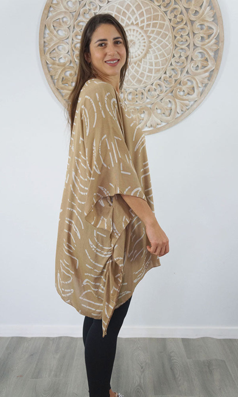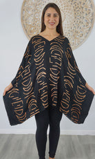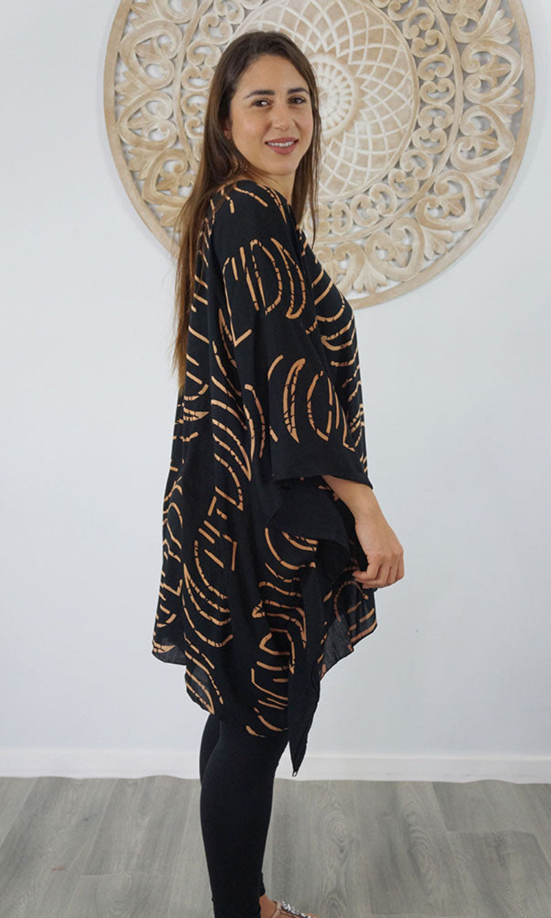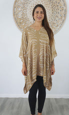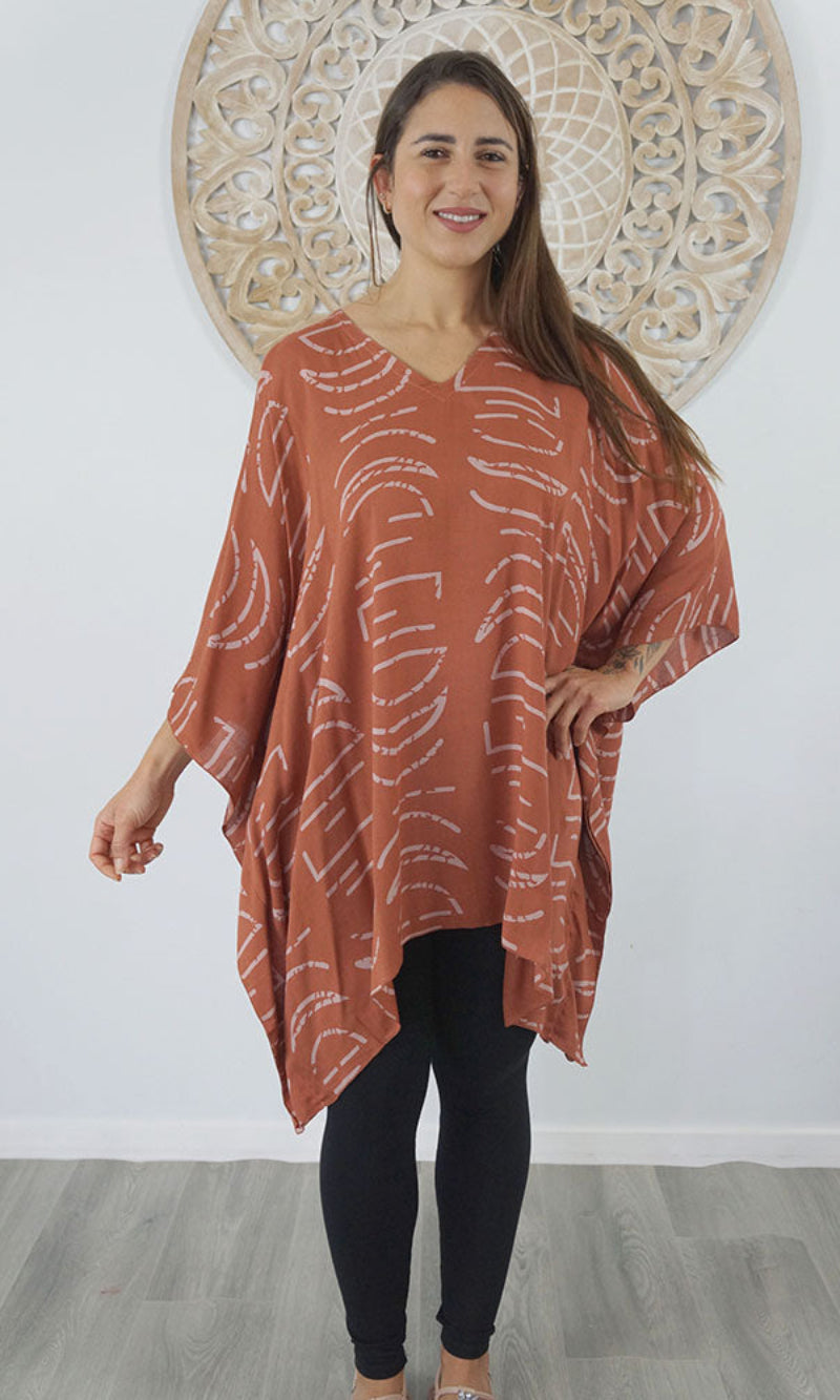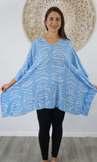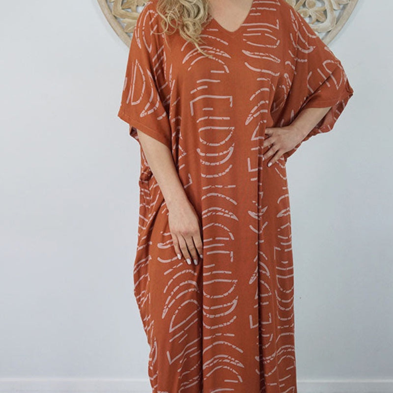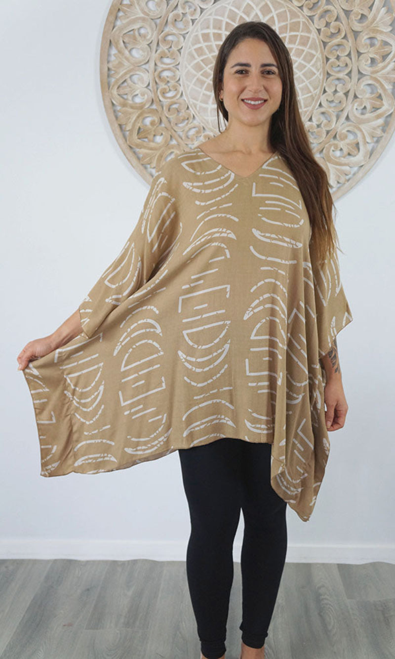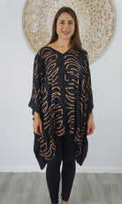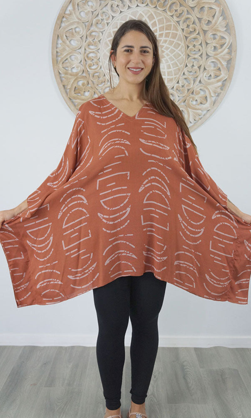 Can be worn over the swimmers as a kaftan, or over pants as a top. Free and flowing comfortable.