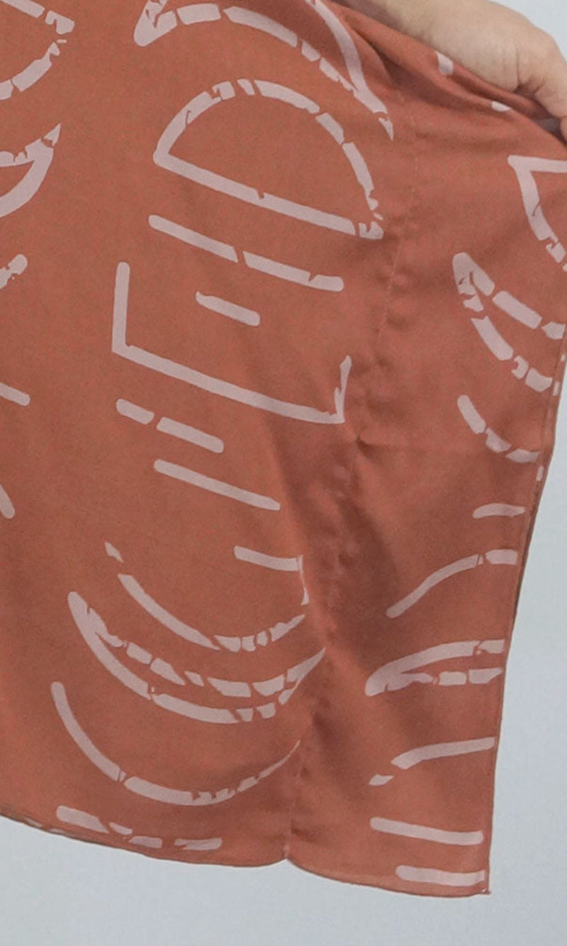 FABRIC: 100% Rayon. Made from wood pulp, and paper pulp, rayon is natural and breathable. Cold hand wash, drip dry, no ironing required.