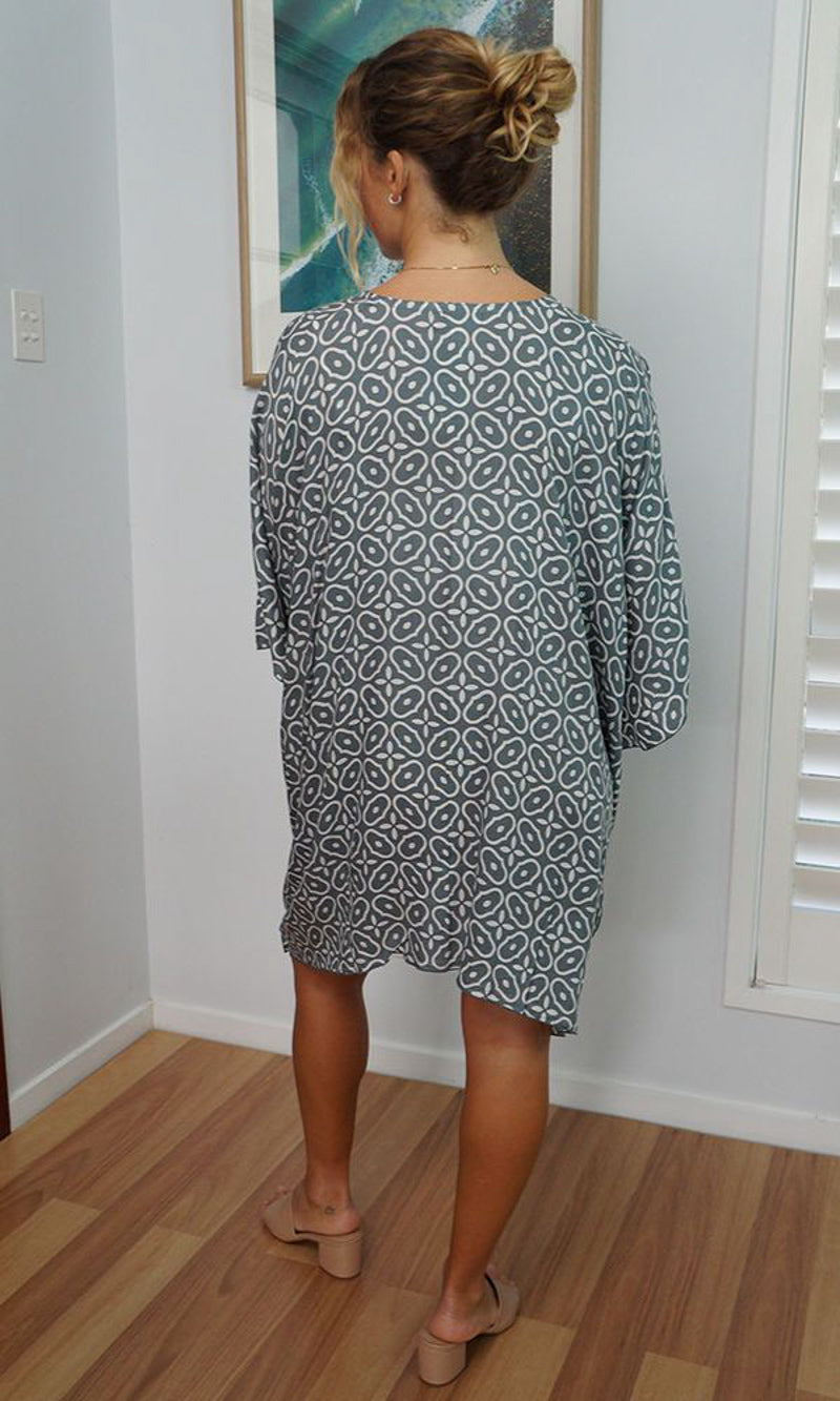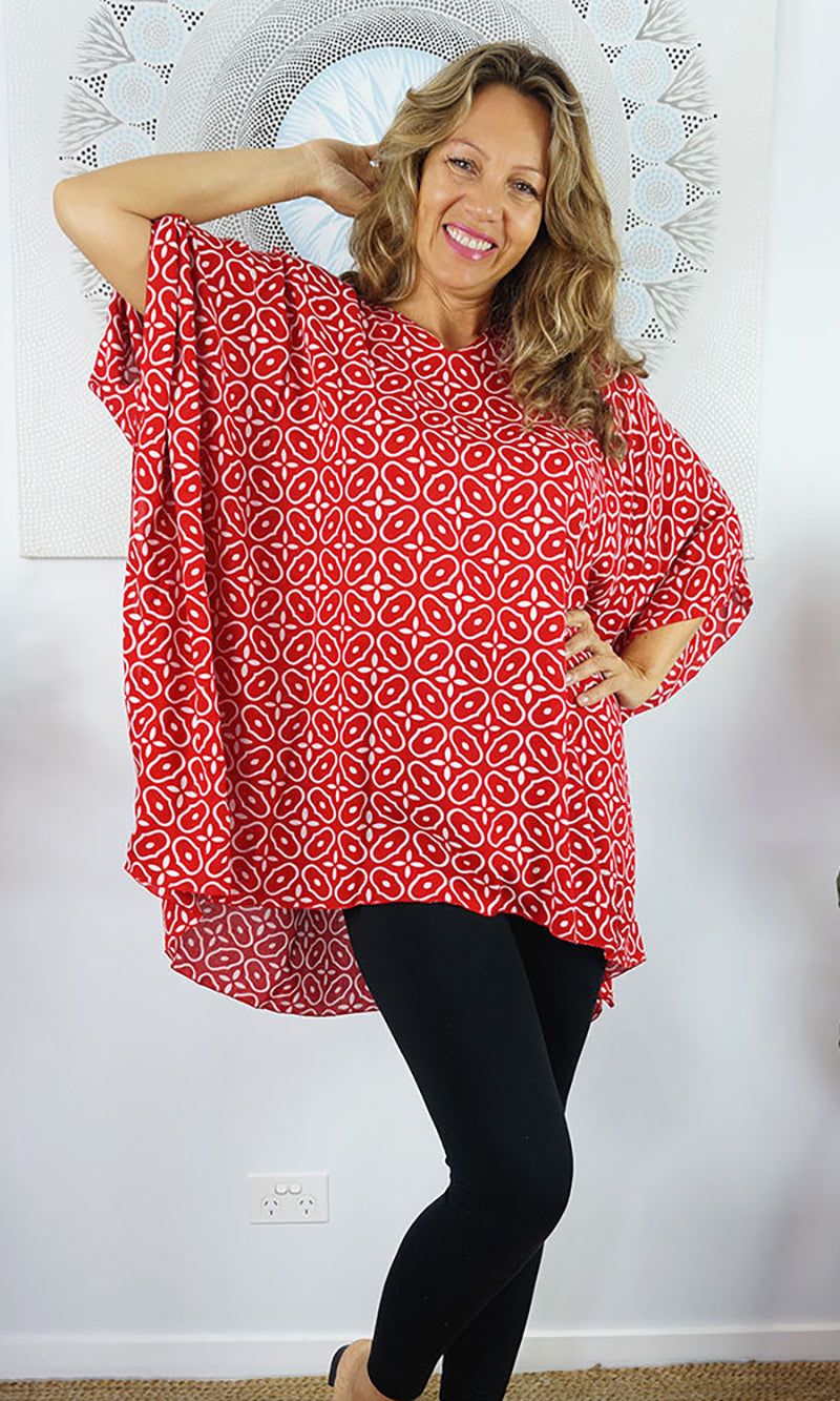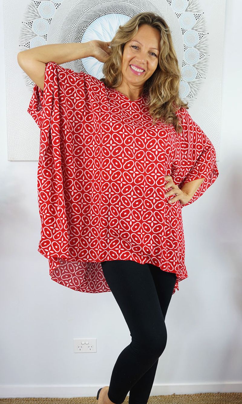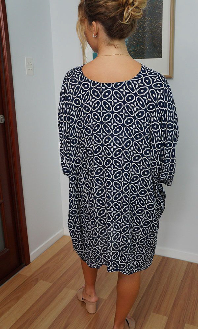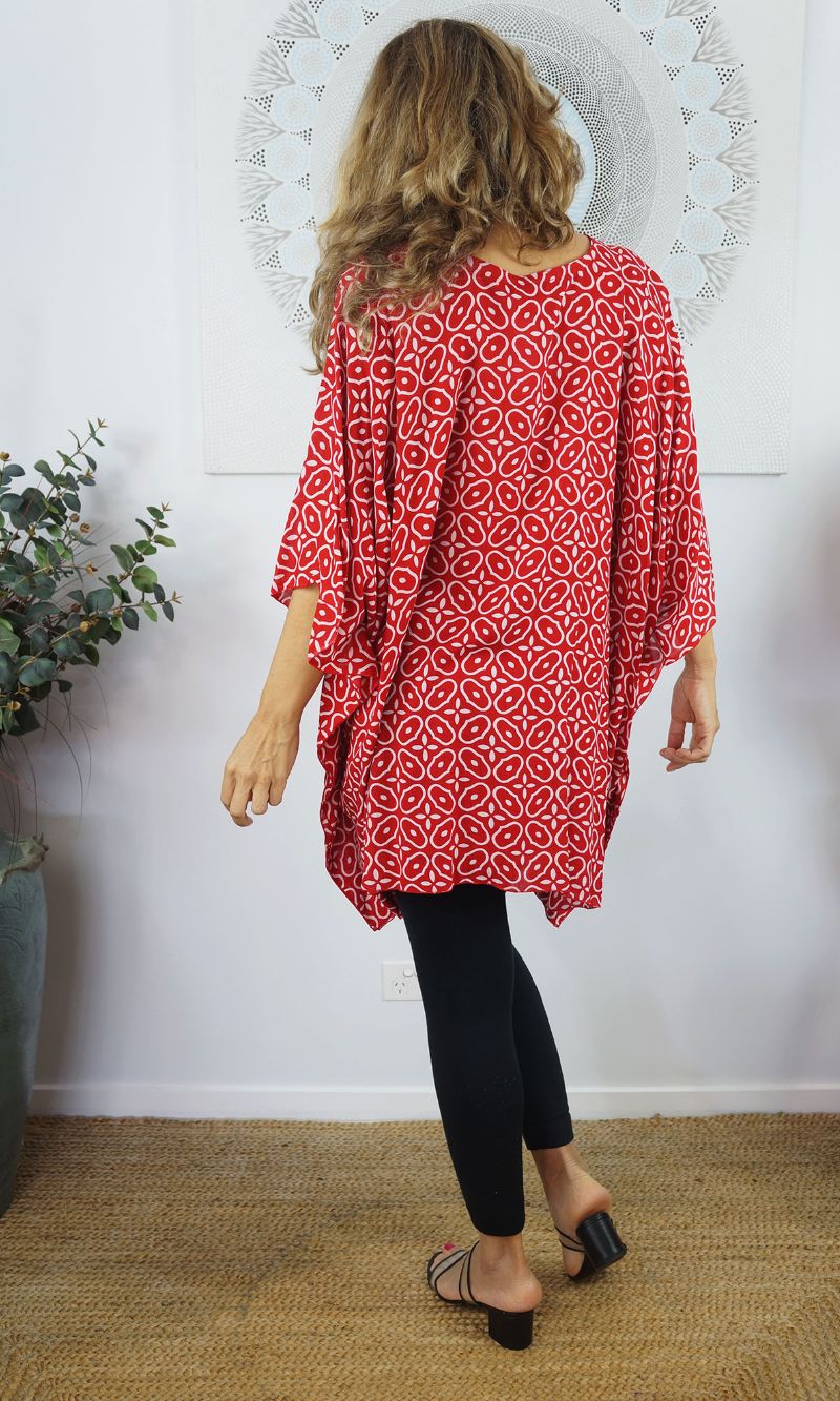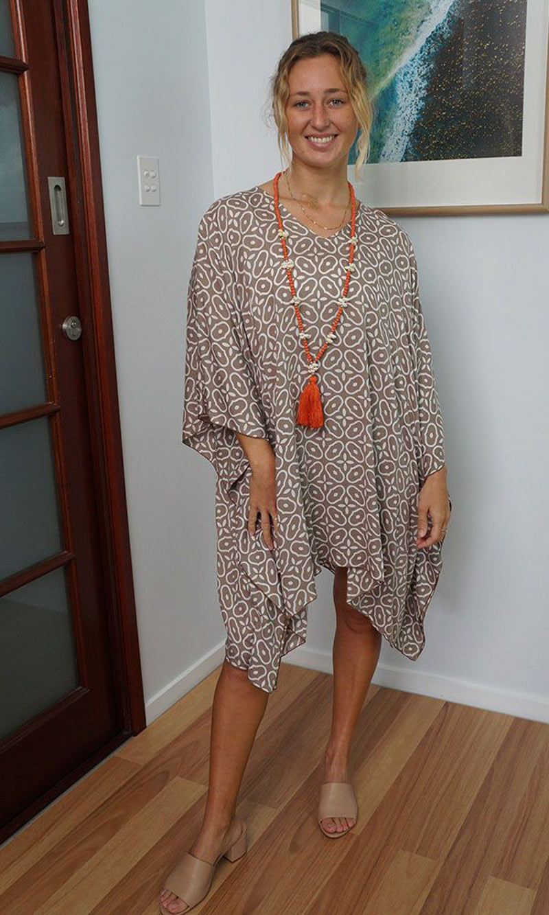Can be worn over the swimmers as a kaftan, or over pants as a top. Free and flowing comfortable.