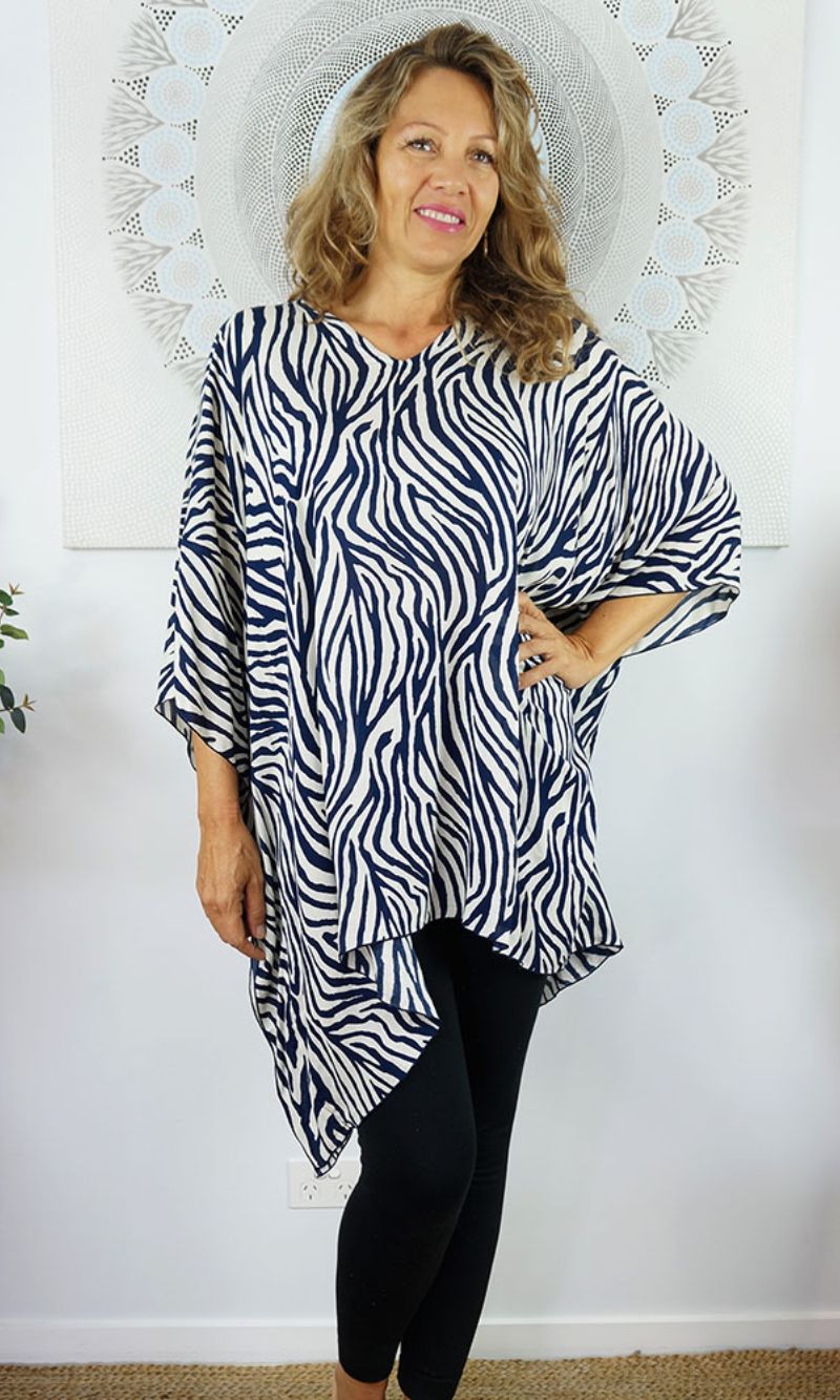A comfortable way of relaxing around the pool or on the beach, this all rayon tunic is suitable for sizes 10 to 26.