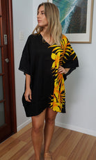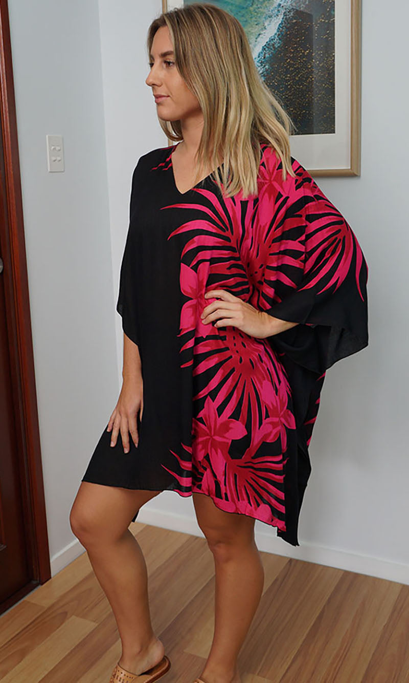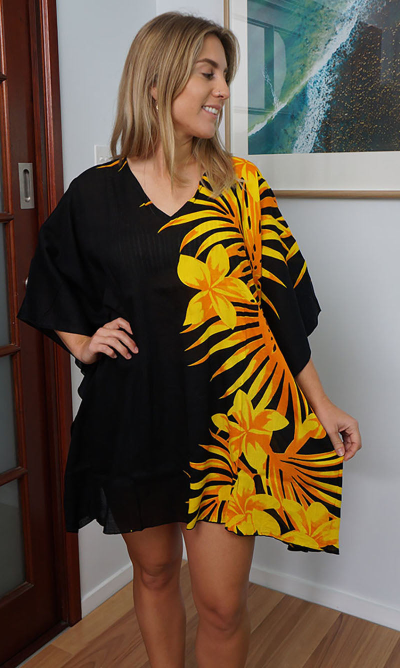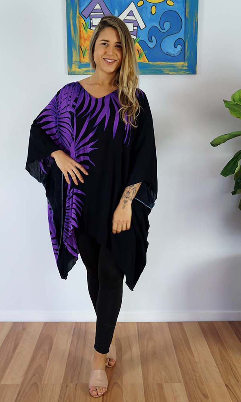 Can be worn over the swimmers as a kaftan, or over pants as a top. Free and flowing comfortable.