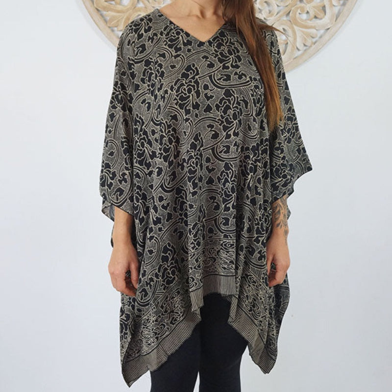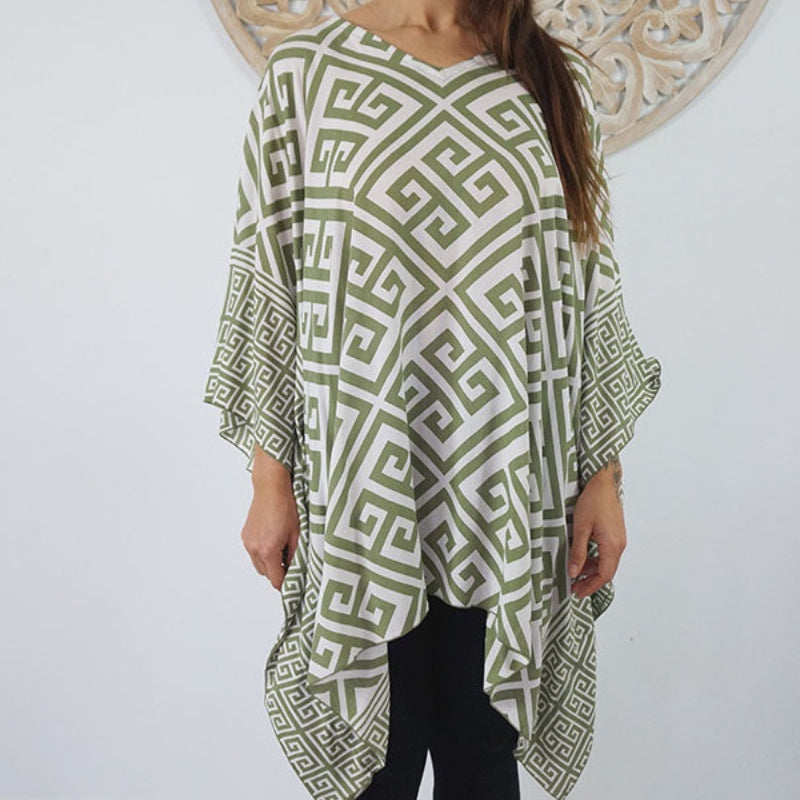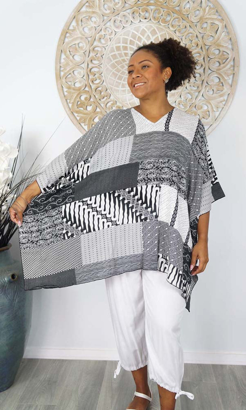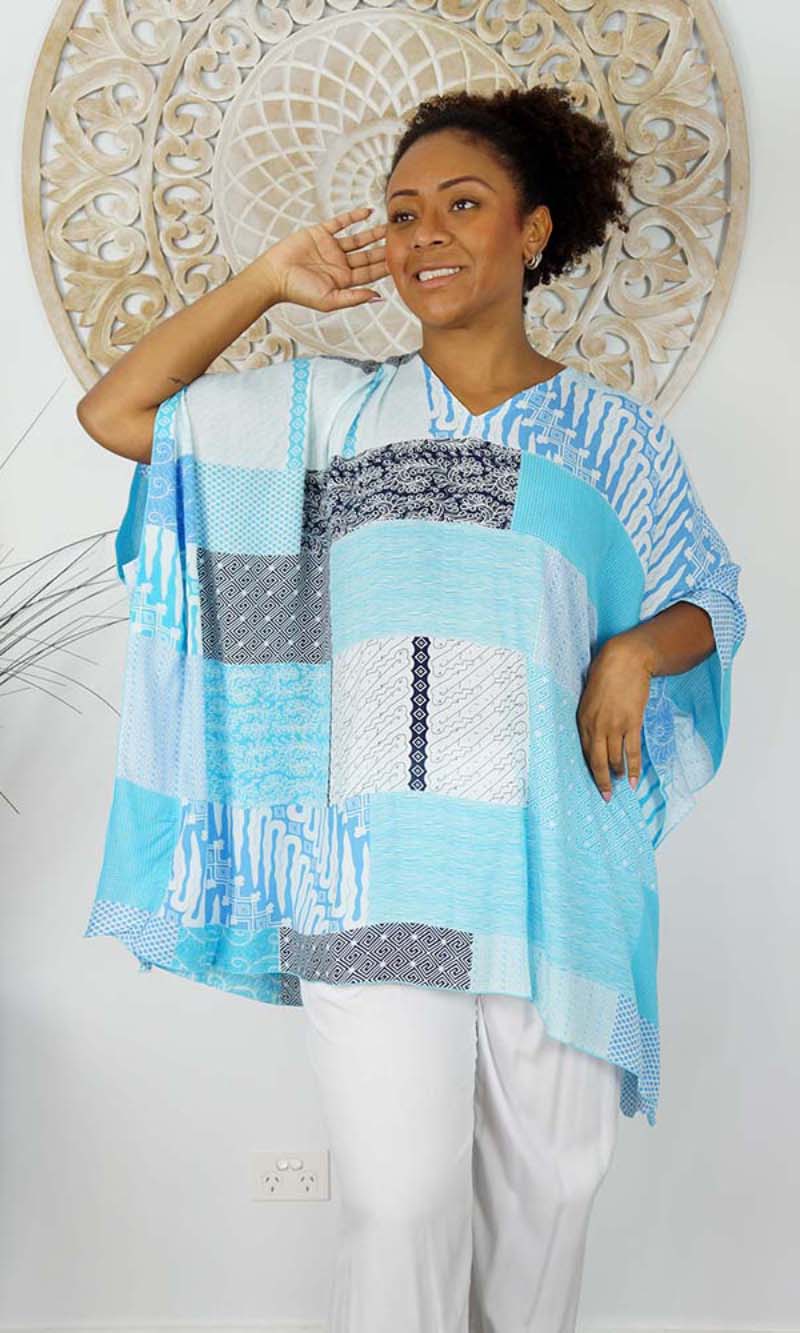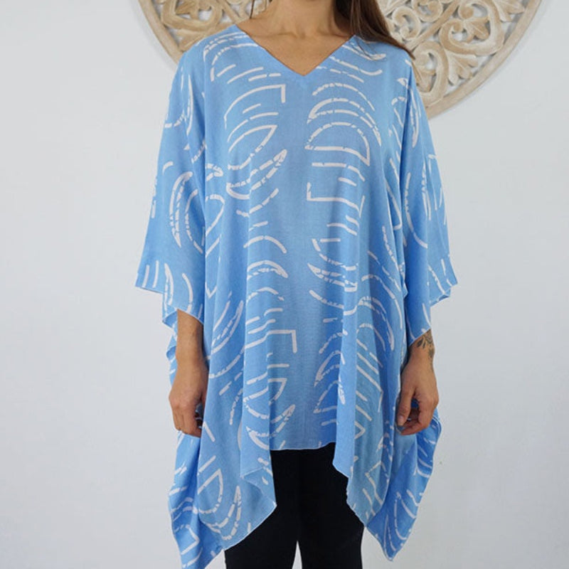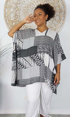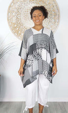 Can be worn over the swimmers as a kaftan, or over pants as a top. Free and flowing comfortable.