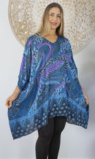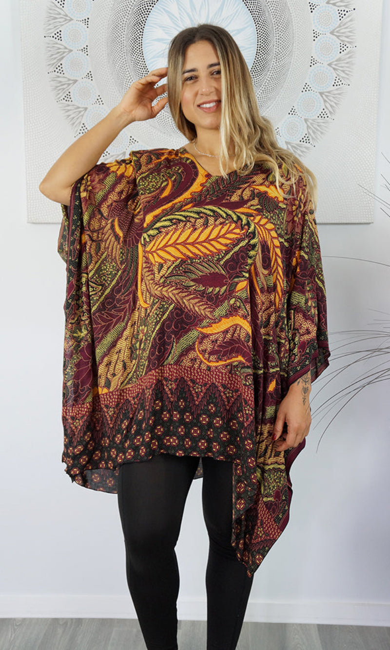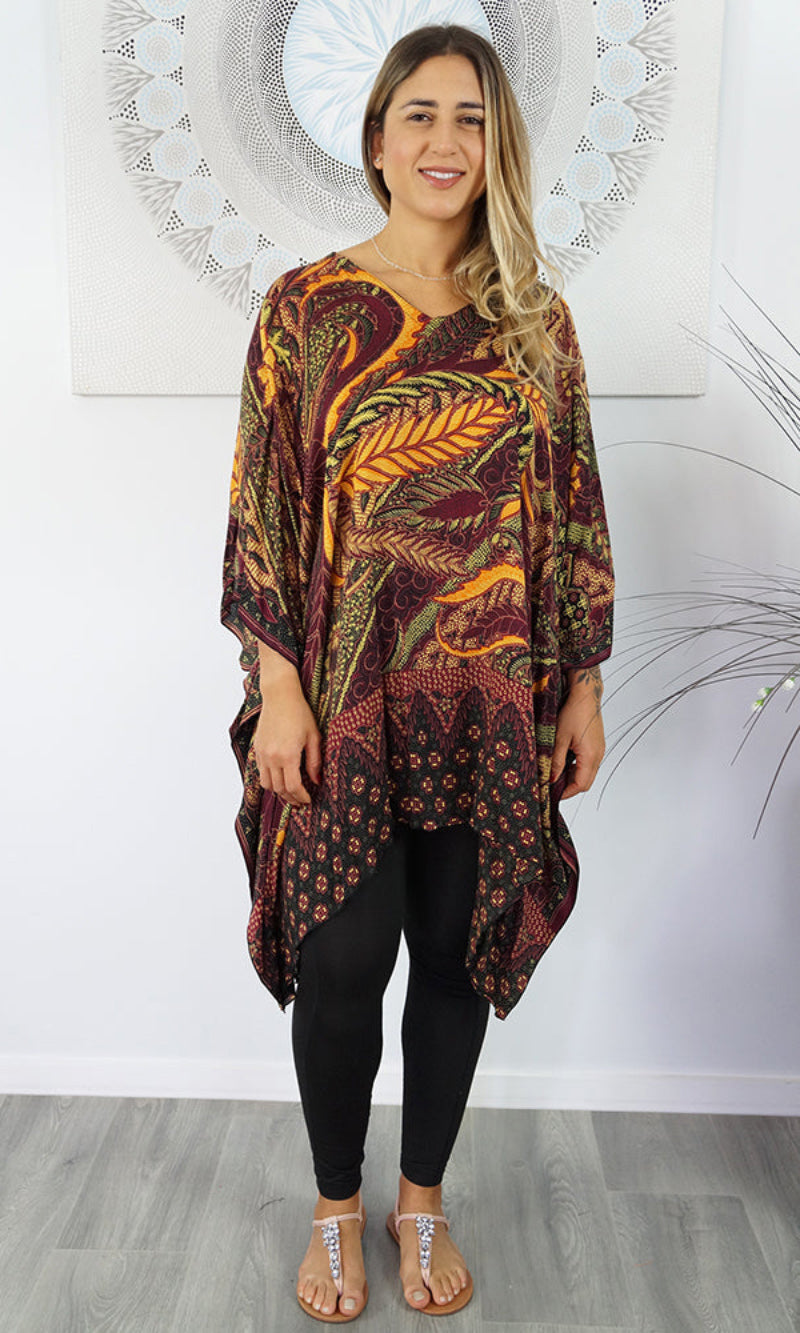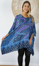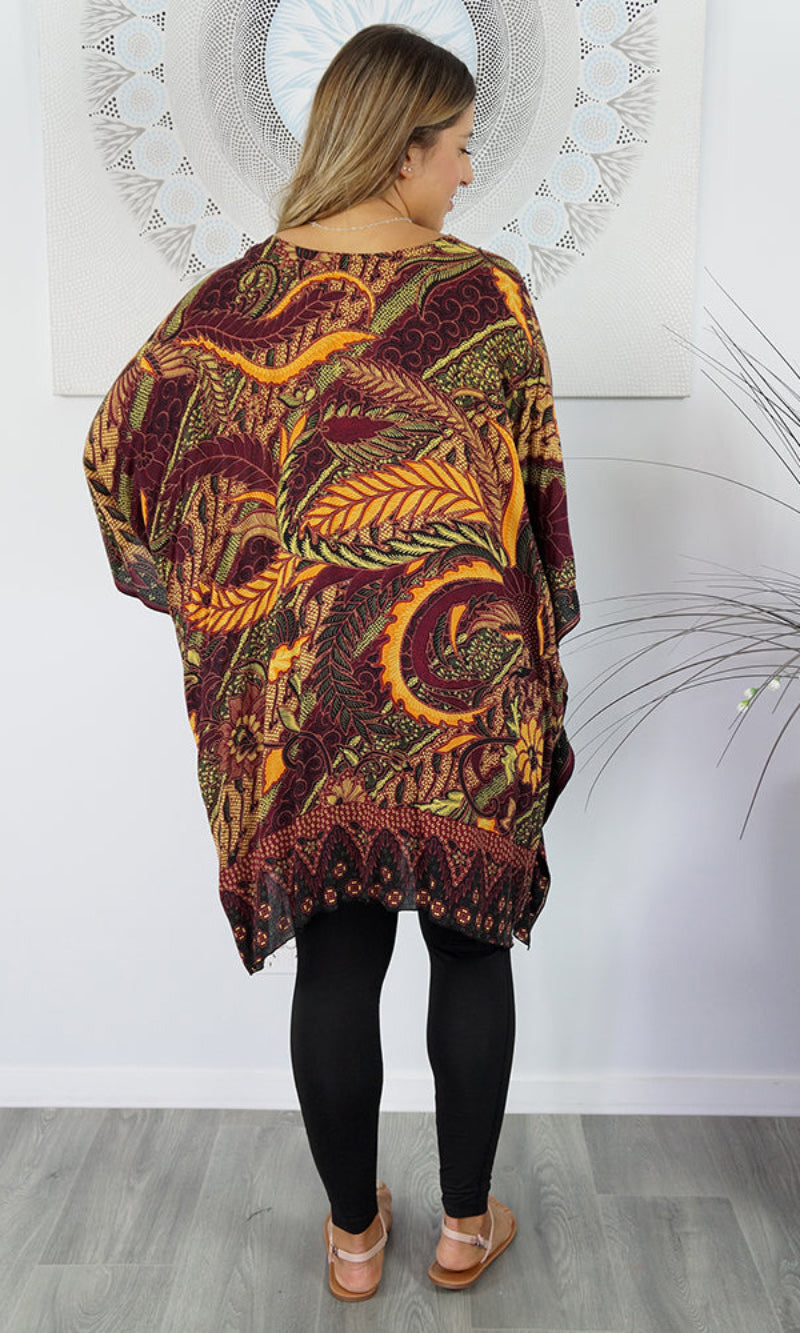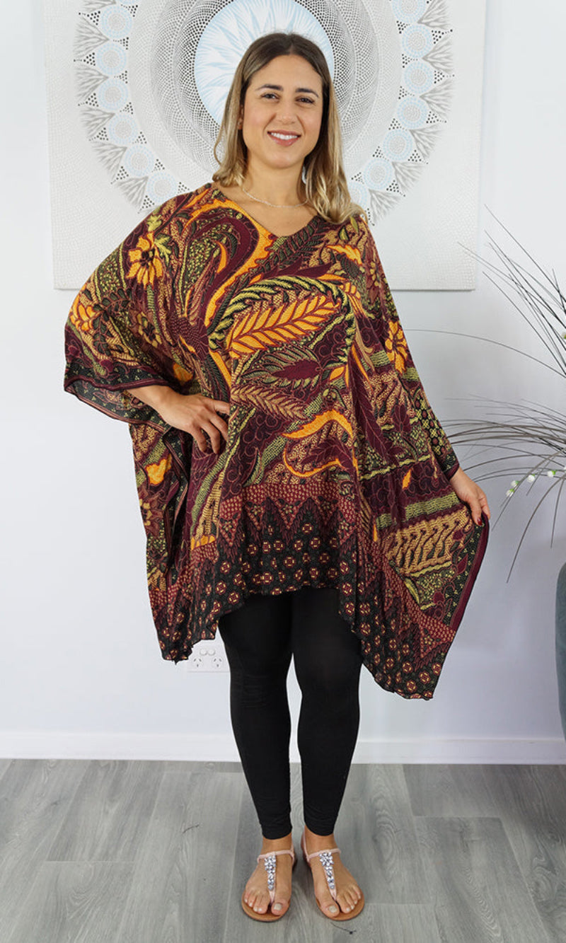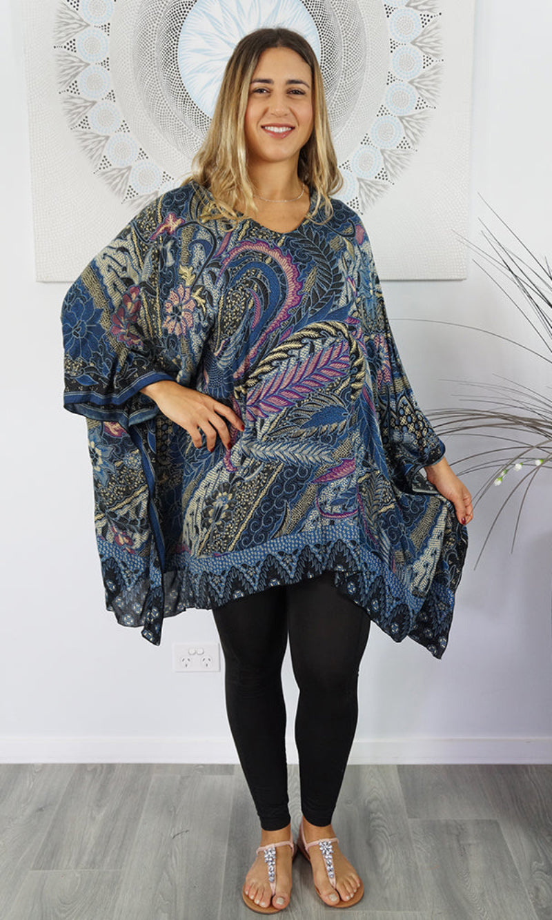 Can be worn over the swimmers as a kaftan, or over pants as a top. Free and flowing comfortable.