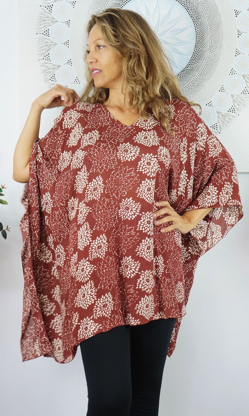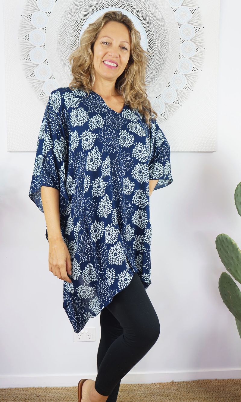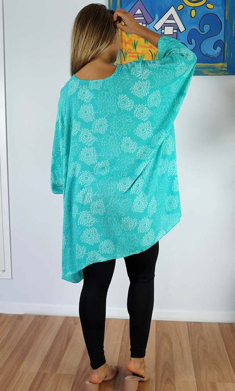 Can be worn over the swimmers as a kaftan, or over pants as a top. Free and flowing comfortable.