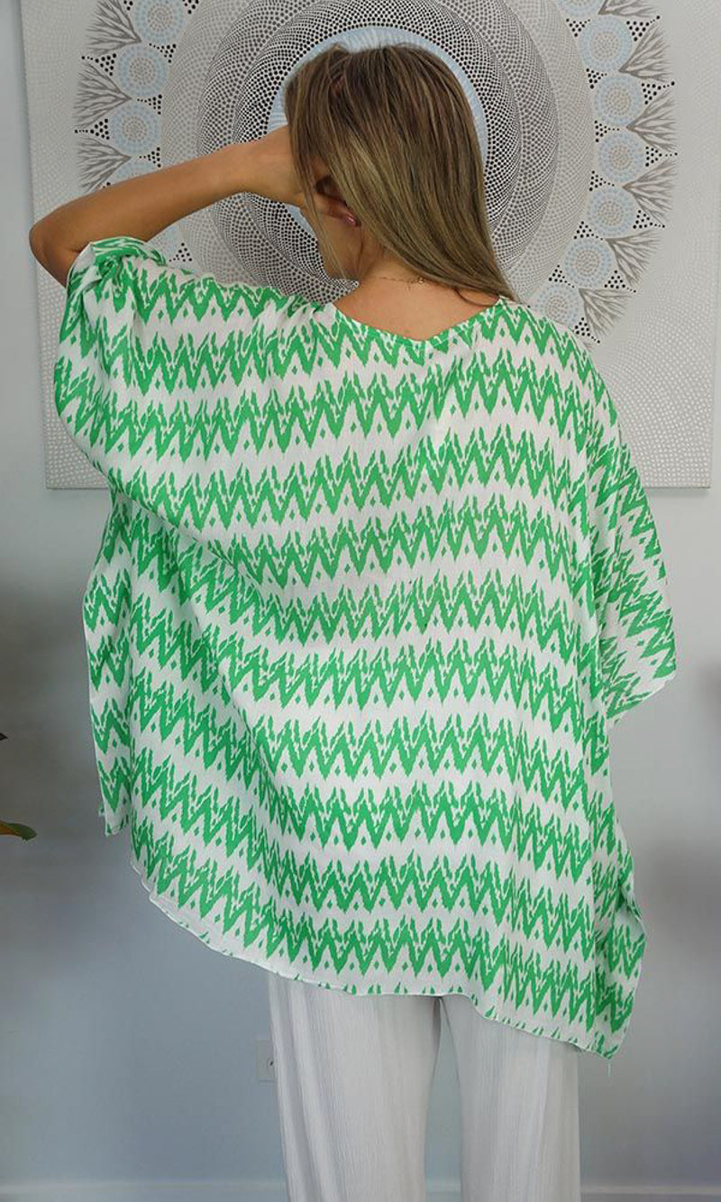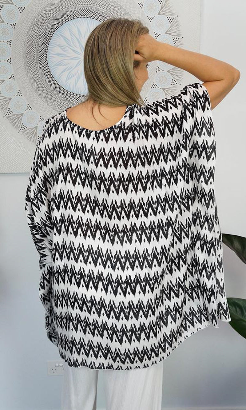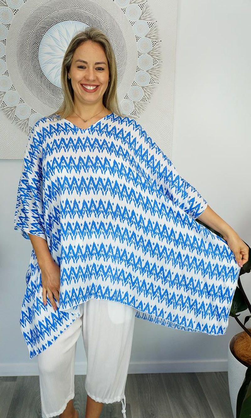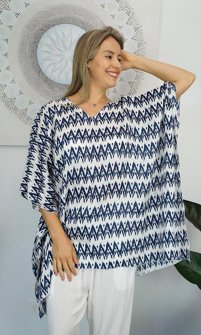 Can be worn over the swimmers as a kaftan, or over pants as a top. Free and flowing comfortable.