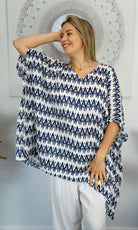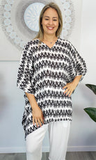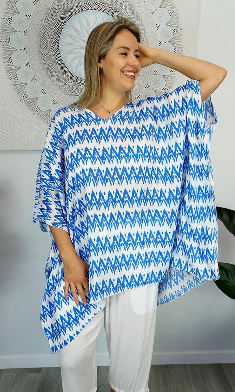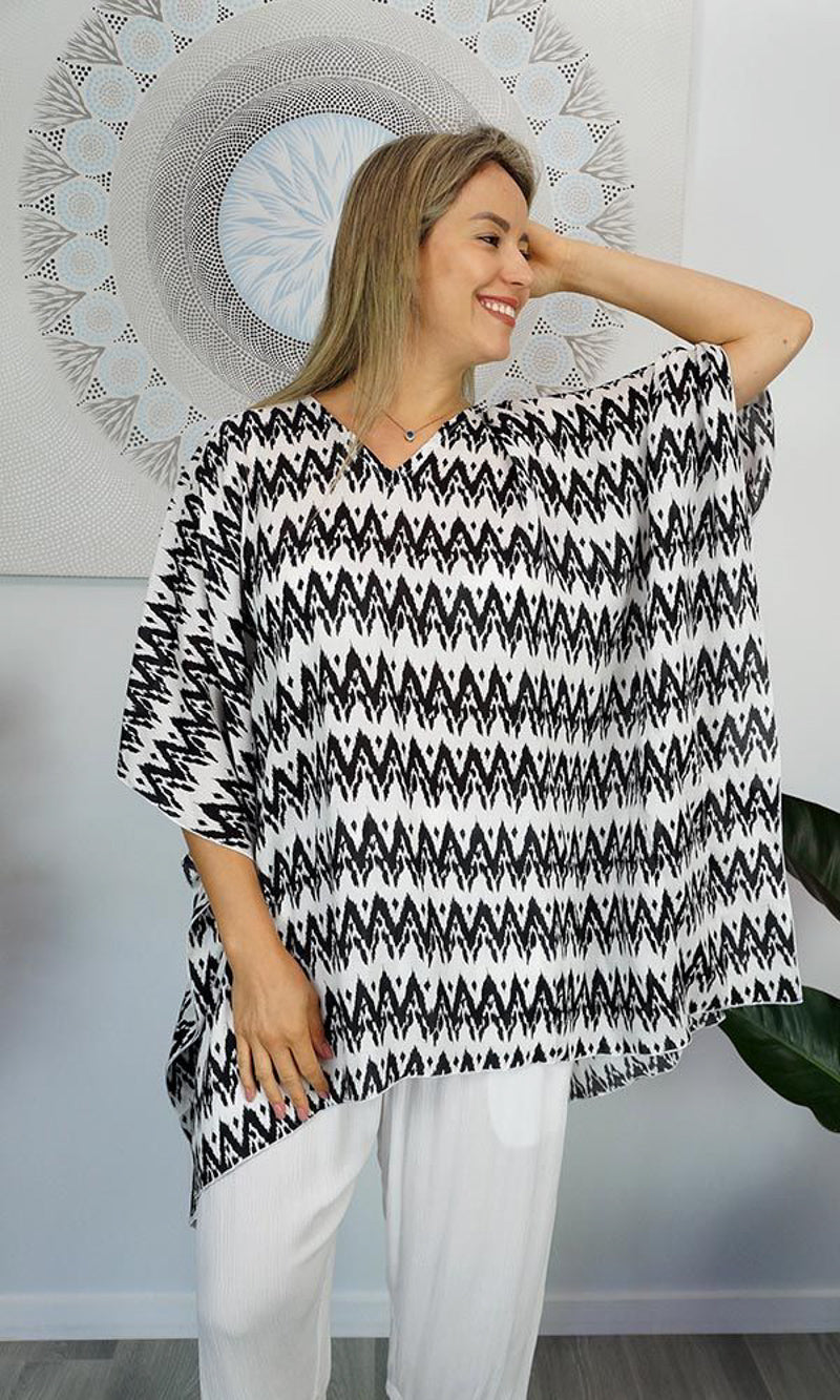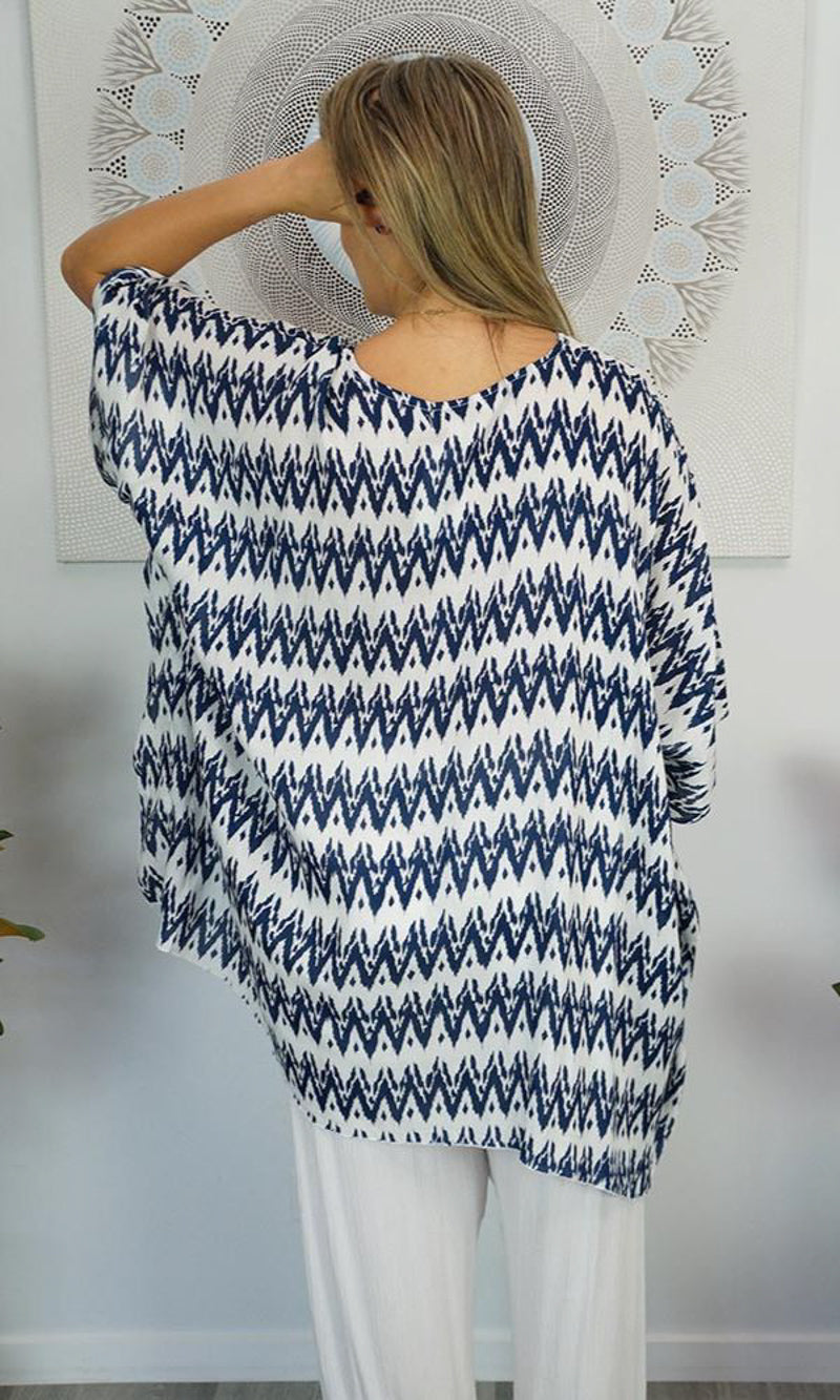 Can be worn over the swimmers as a kaftan, or over pants as a top. Free and flowing comfortable.