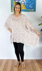 Can be worn over the swimmers as a kaftan, or over pants as a top. Free and flowing comfortable.