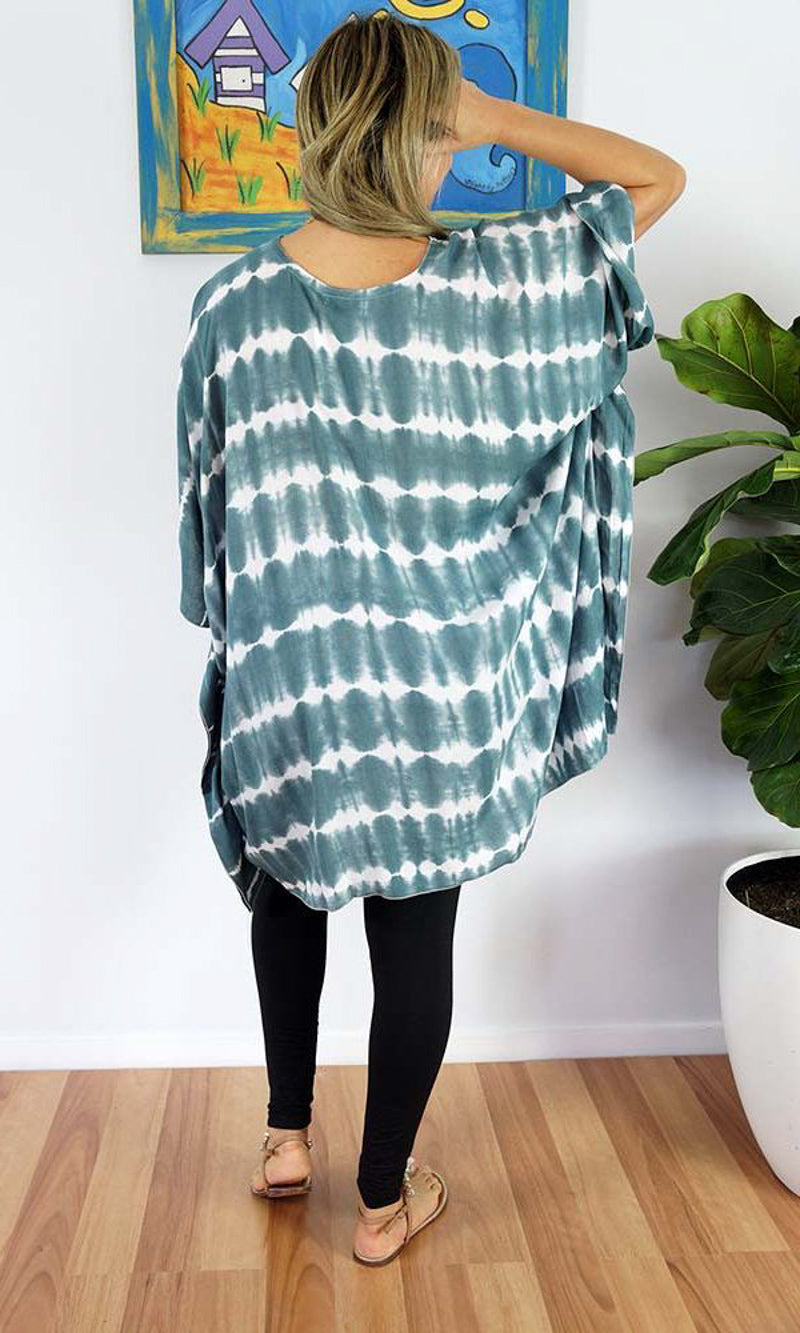 Can be worn over the swimmers as a kaftan, or over pants as a top. Free and flowing comfortable.