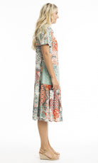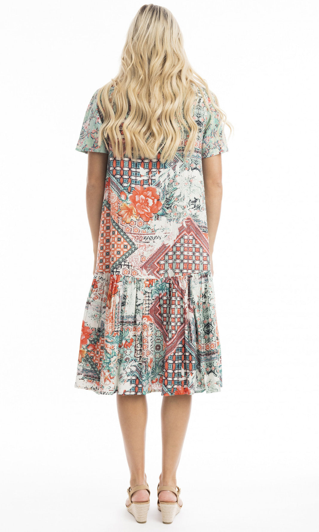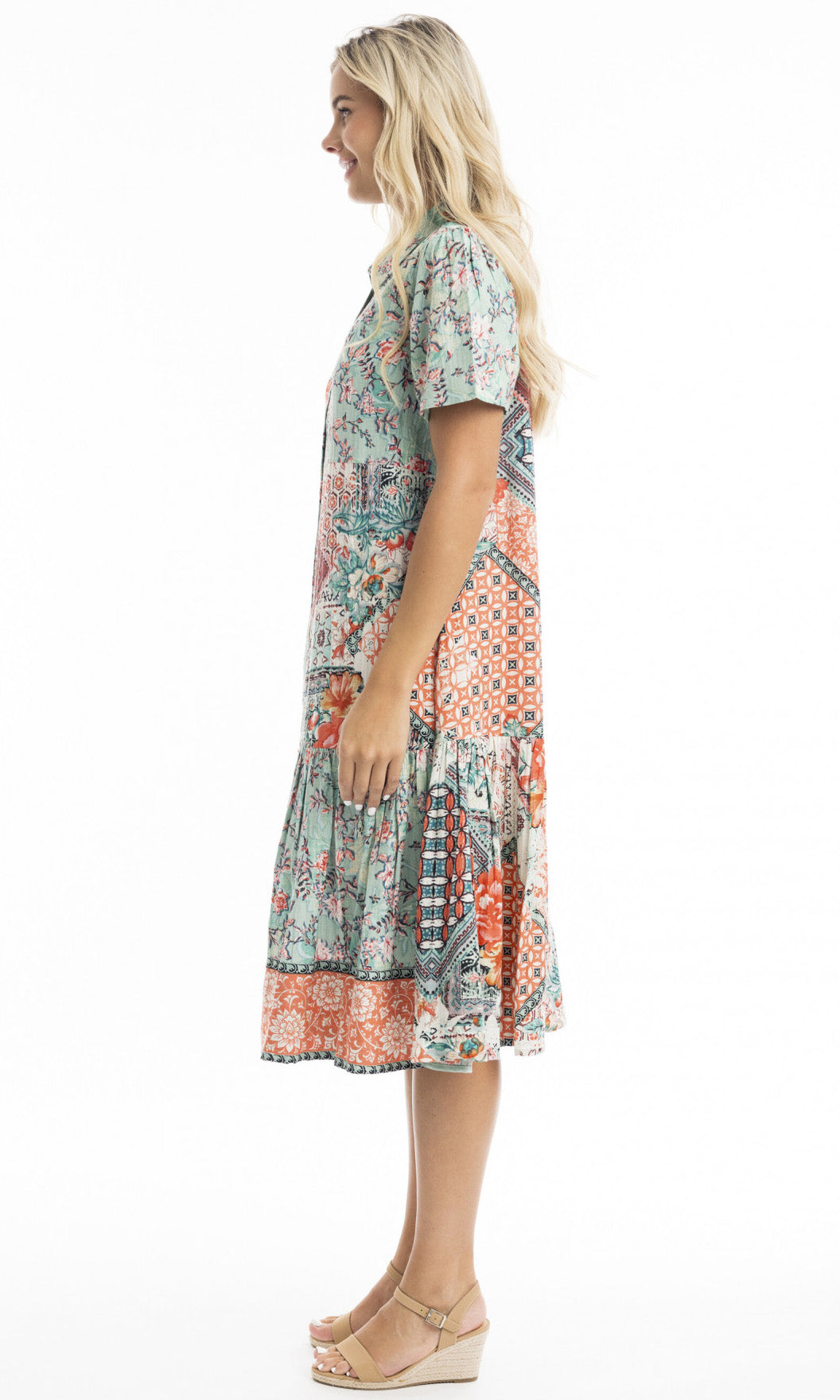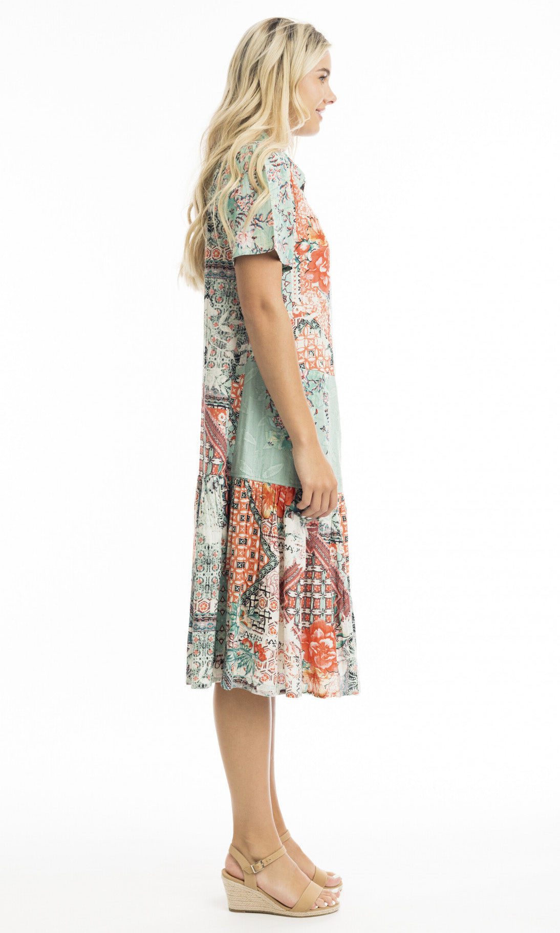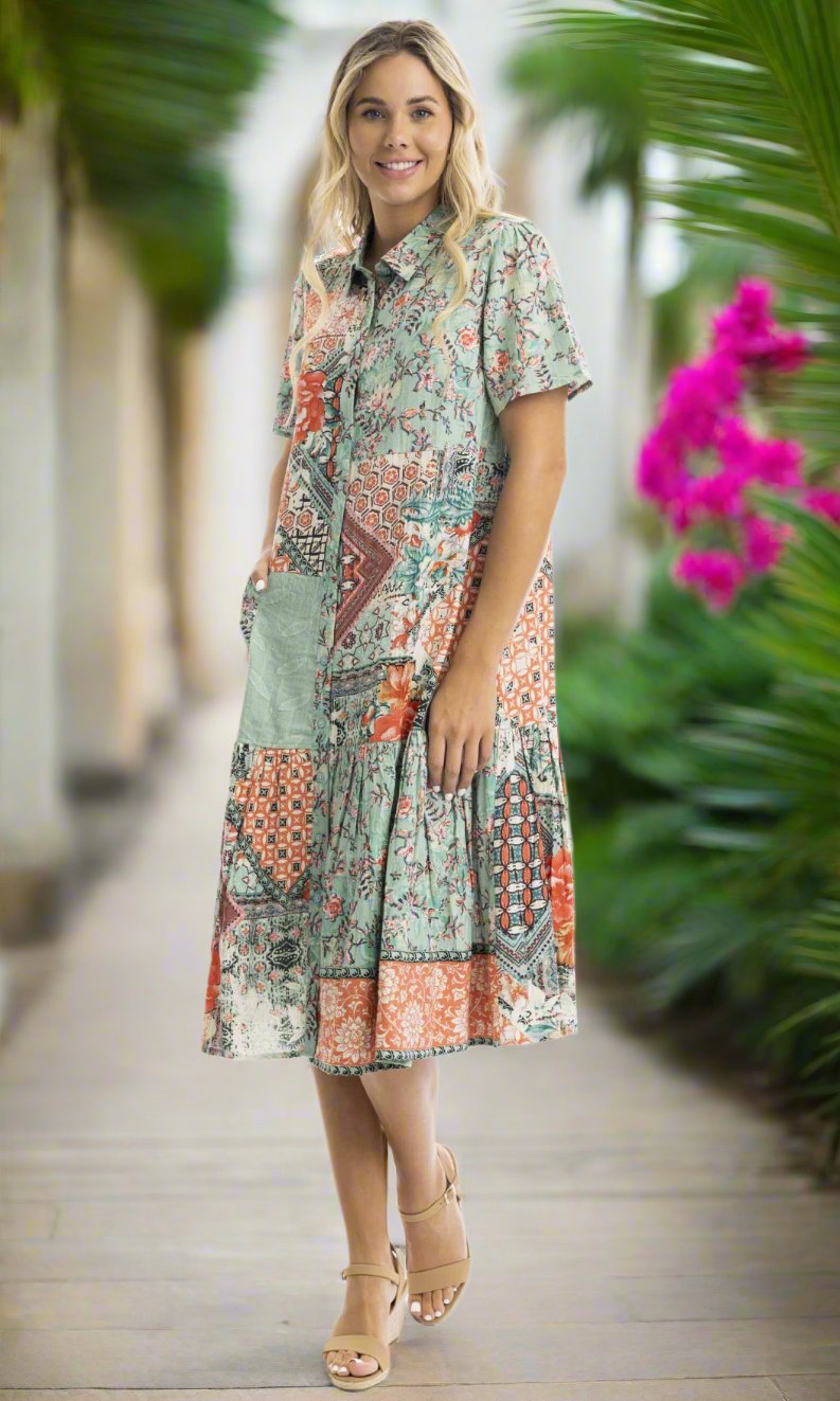 Cotton/Linen Dress Collar Patch Midi Ishigaki