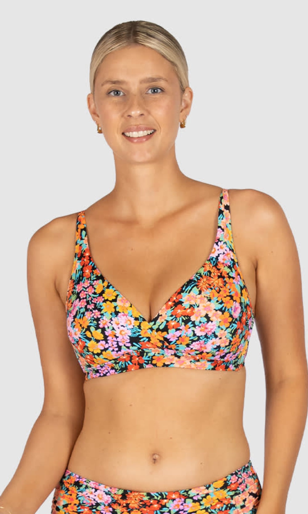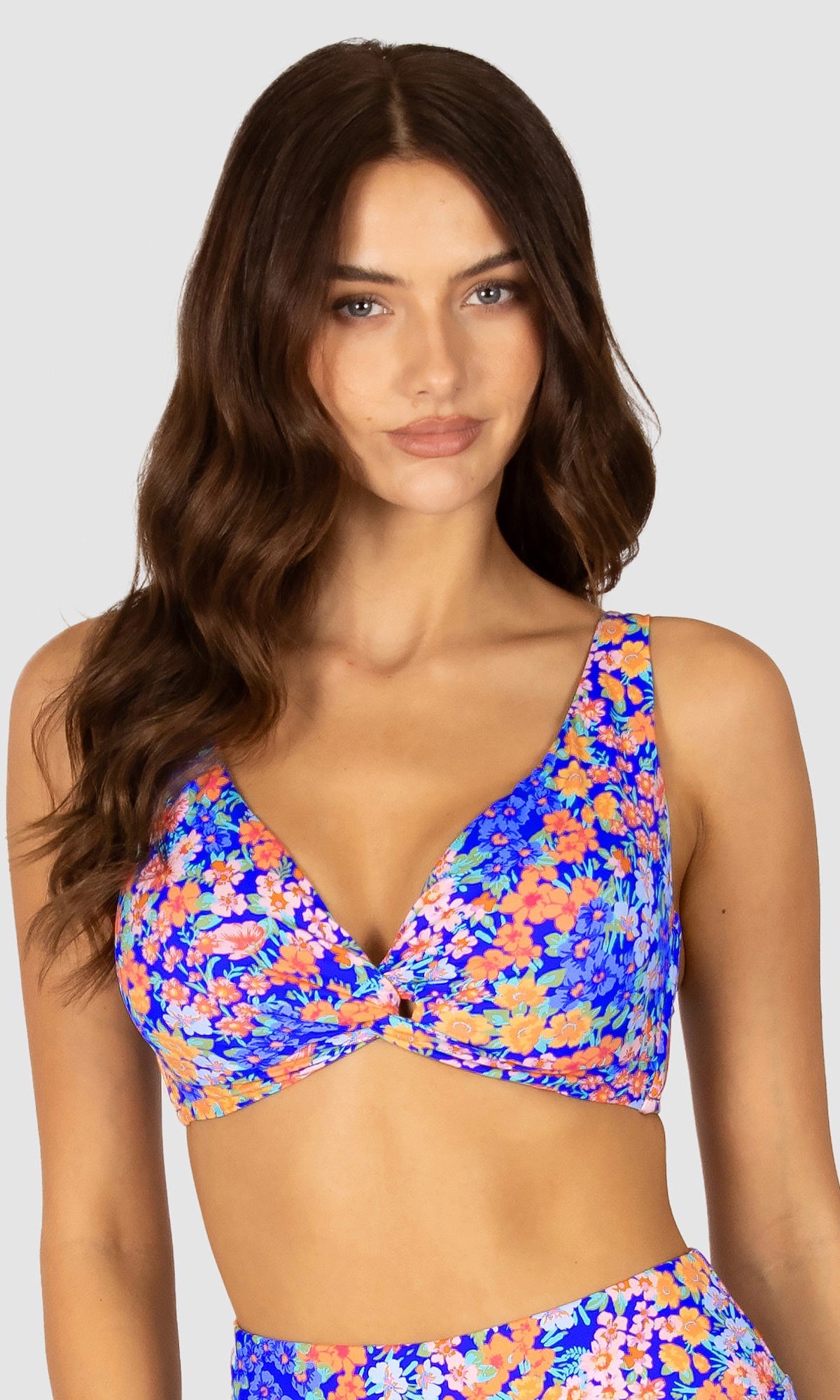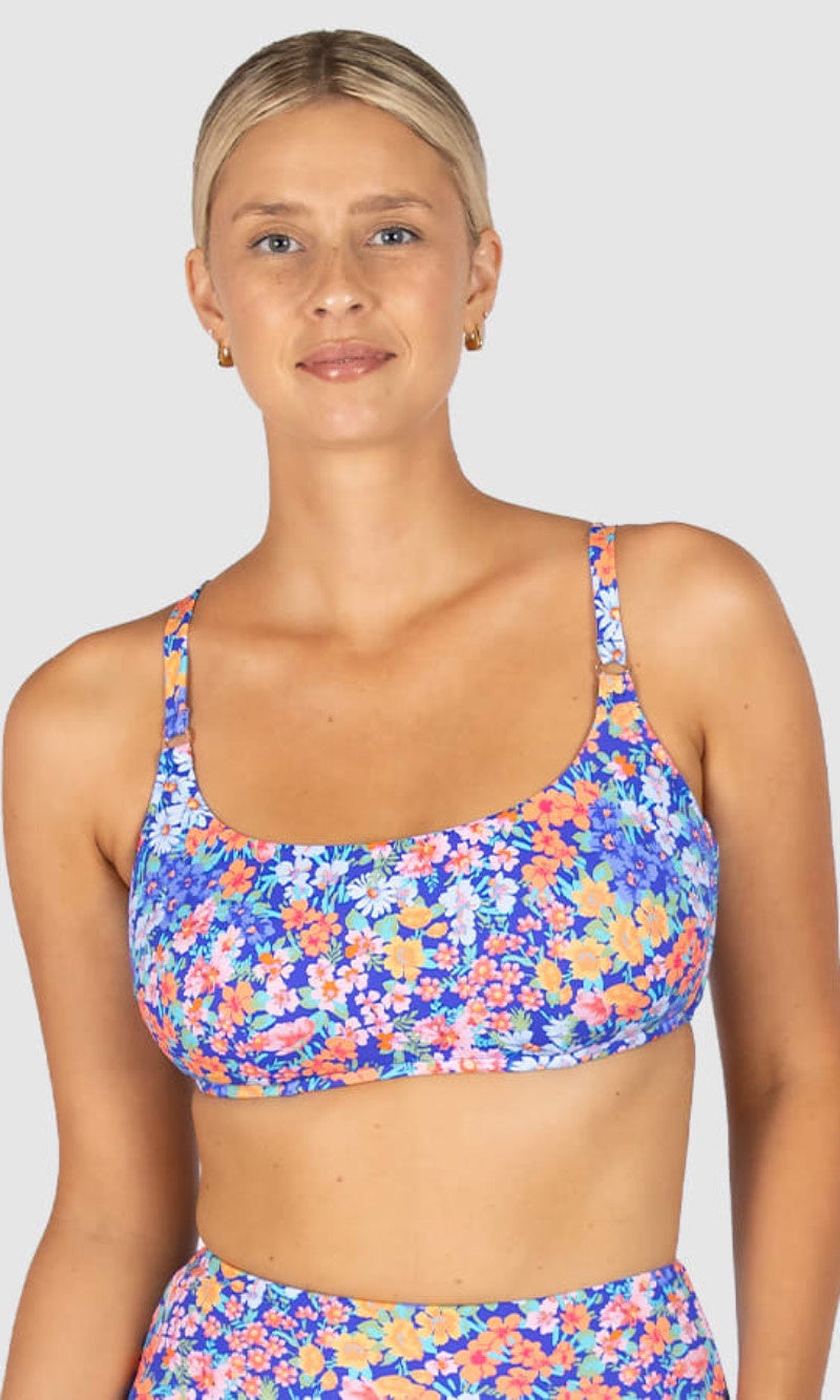 Baku's Biarritz D/DD Twist Bikini Top features a flattering dropped neckline with a twist centre front detail. It has power mesh stability and side boning for added support with removable soft cups. It also features adjustable straps and fastens with a clip back.