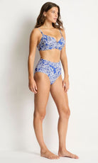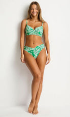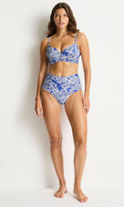 The Palmera Cross Front Moulded Cup Bra combines elegant floral prints with a sophisticated, sculpting design. Crafted from eco-friendly recycled materials, it features removable soft cups, underwire support, and adjustable straps for comfort and shape. Side boning and powermesh lining enhance fit and support, making this swimsuit a refined blend of style and functionality.