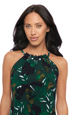 Shine in this tankini with glossy stone beads at the neckline, flattering draping, and a removable soft cup bra for customized support.