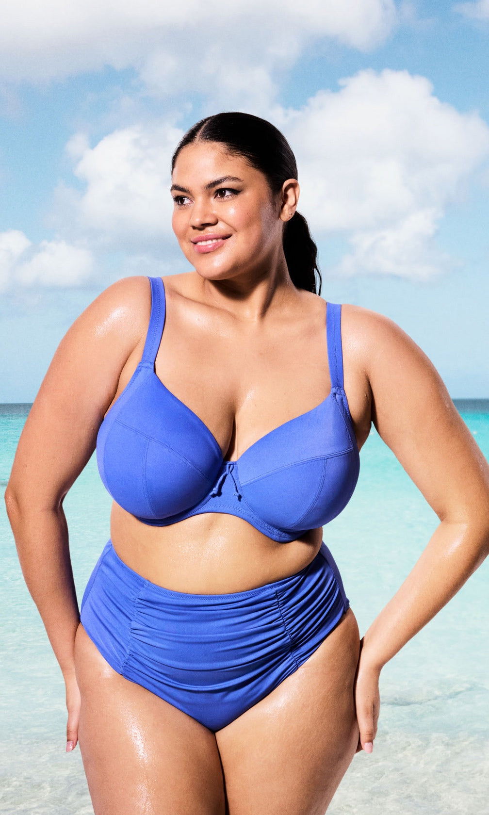 Plain Sailing is a go-to collection that includes a Non-Wired Swimsuit which has a scoop neckline, without moulded cups, for quick drying time, and a clasp back for ease of wear, while the Full Bikini Brief features gathered front styling, with a powernet tummy panel for a flattering silhouette.