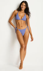 The Solara Tri Top blends Mediterranean-inspired design with sustainable luxury. Made from over 70% recycled materials, it features a vibrant Amalfi Blue shade with gold hardware accents. Designed for cup sizes B-D, it includes removable soft cups, adjustable halter straps, and powermesh lining for enhanced support and shape.