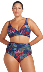Cross over front - The front of this curvy swimsuit is a cross over design that flatters the shape of your bust and adds extra wirefree support.
