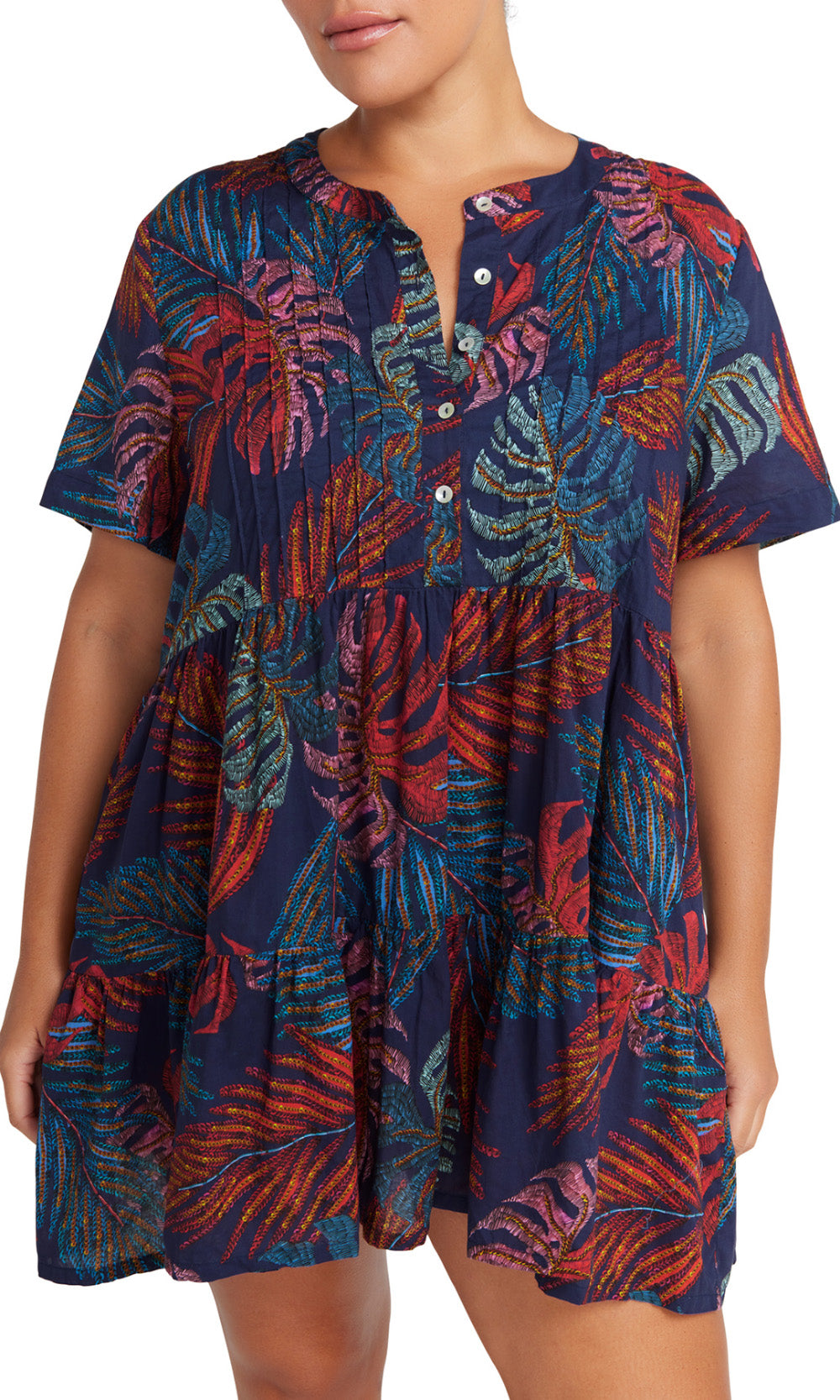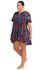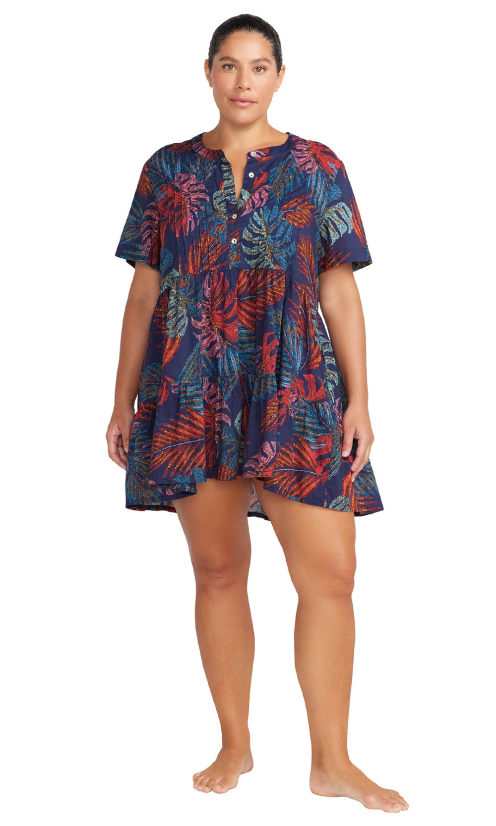 Artesands Fits Your Curves. Gershwin is our curve fit throw on, over shirt kaftan. This cover up has pin tucked detail and a button placket from the waist up. Gershwin has been designed with long sleeves that can be rolled up to a 3/4. Artesands specially designed resort wear made to wear over your curve fit swimsuit. Gershwin is made with 100% soft wash, lightweight, breathable cotton fabrication.