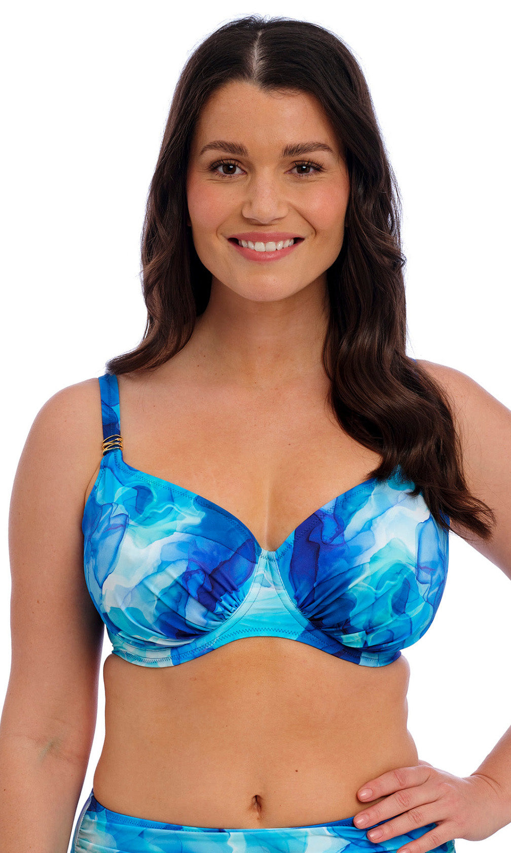 Saunton Sands Dazzling Blue UW Gathered Full Cup Bikini Top, Special Order D Cup to J Cup