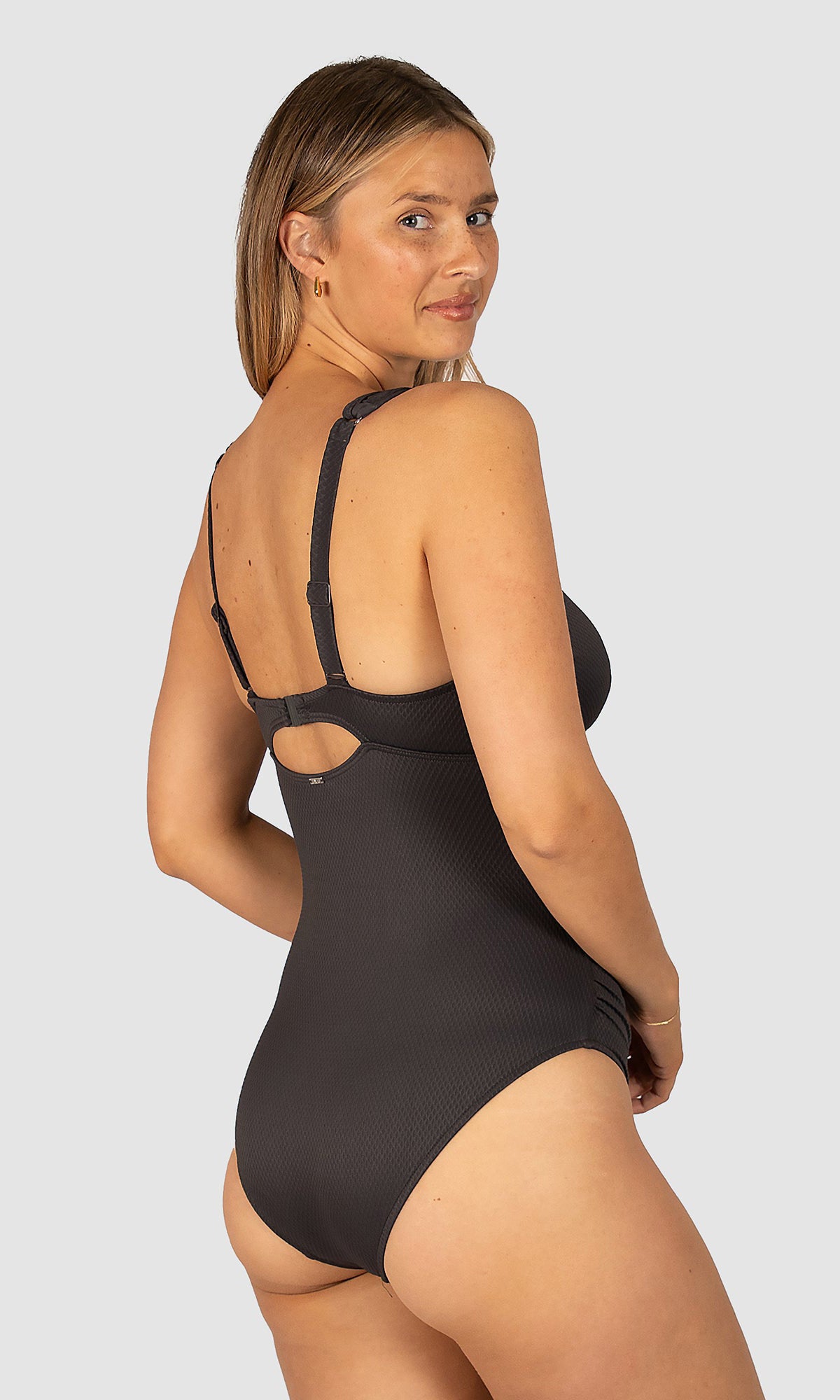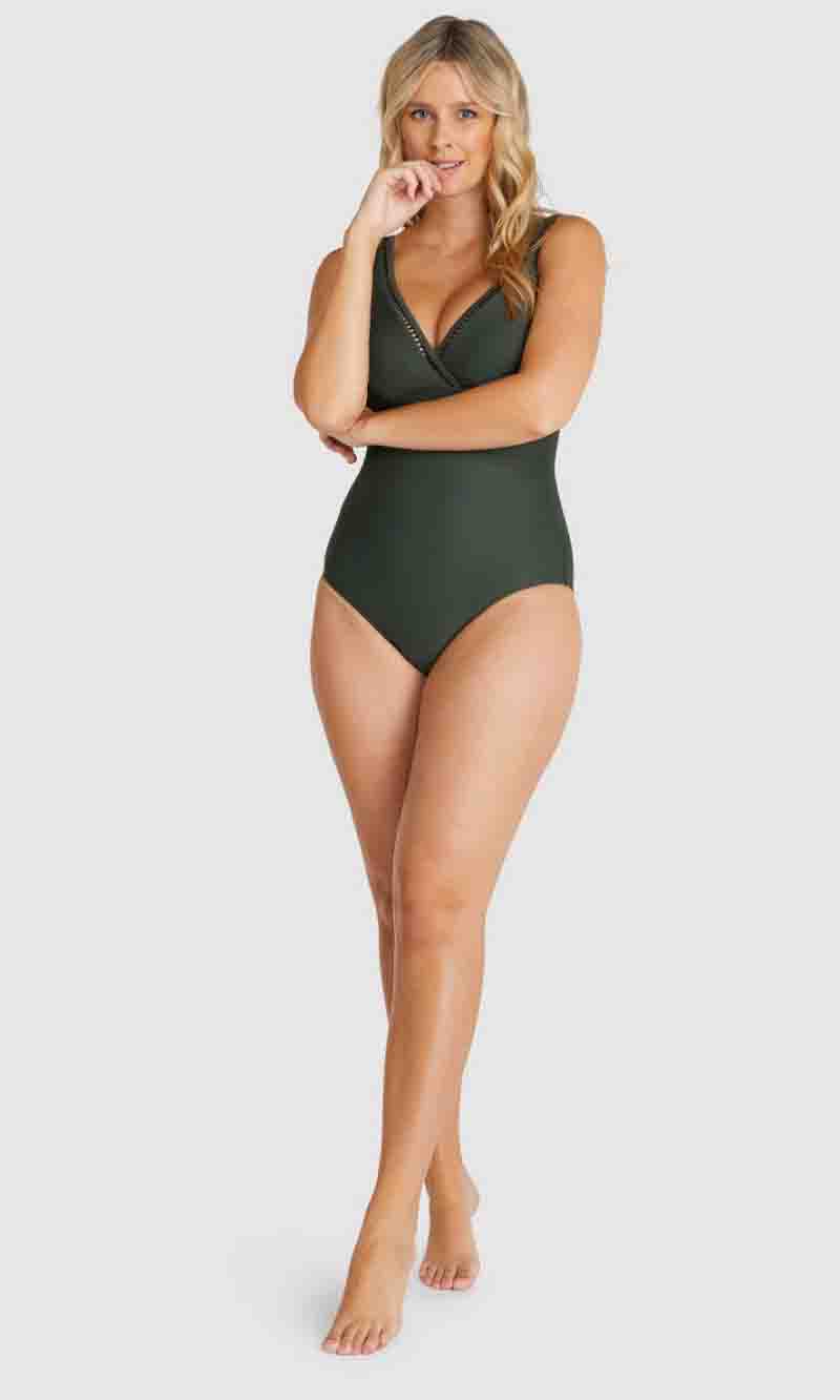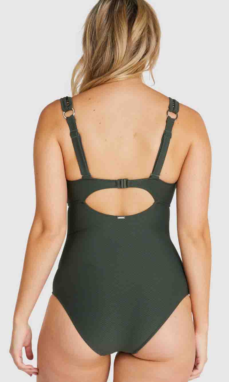 Baku's Rococco Plain E/F One Piece Swimsuit features a dropped neckline highlighted with ladder lace detailing. It also has underwire and boning support with removable cups. Rococco is a luxury textural fabrication from Spain that is buttery soft, yet sophisticated and structure.