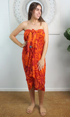 These "Rarotonga" inspired printed sarongs are a great cover up for a day at the beach, pool, lake or wherever else your heart desires. Sarong measures approximately 1.8M x 1.15M on fringed lightweight rayon.