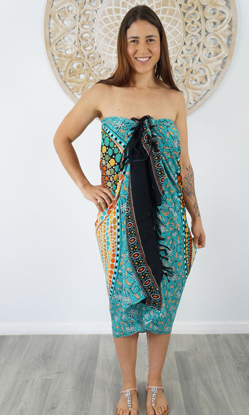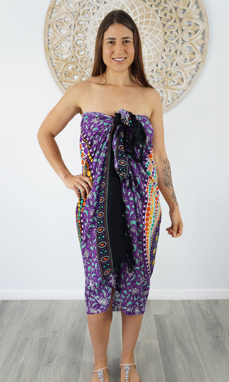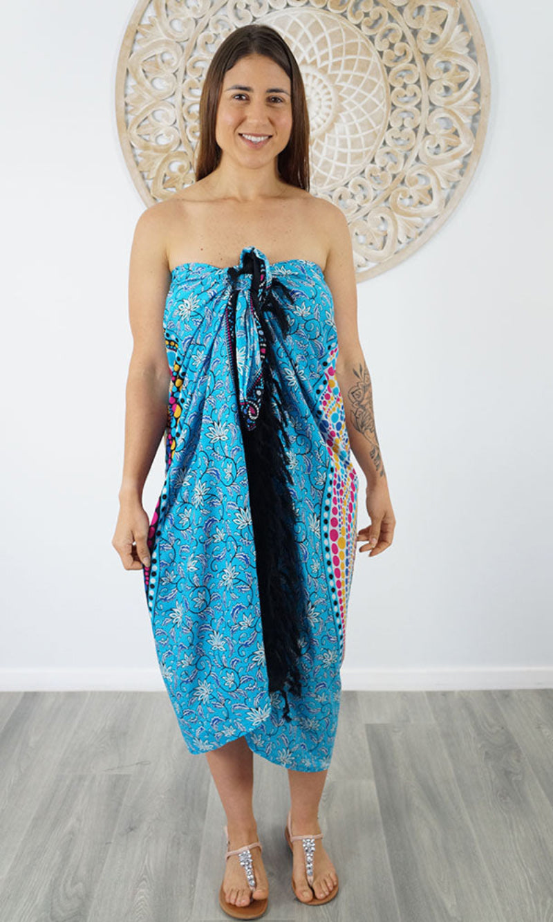 These Tao inspired "Yin YAng" printed sarongs are a great cover up for a day at the beach, pool, lake or wherever else your heart desires. Sarong measures approximately 1.8M x 1.15M on fringed lightweight rayon.