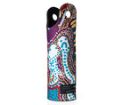 Keep your water bottle close and cool with these great neoprene water bottle carriers. Made in Australia, bottle carriers feature artwork by Elaine Lane from Papulankutja Artists located at Blackstone, Western Australia. Includes a strap so you can carry on the go!