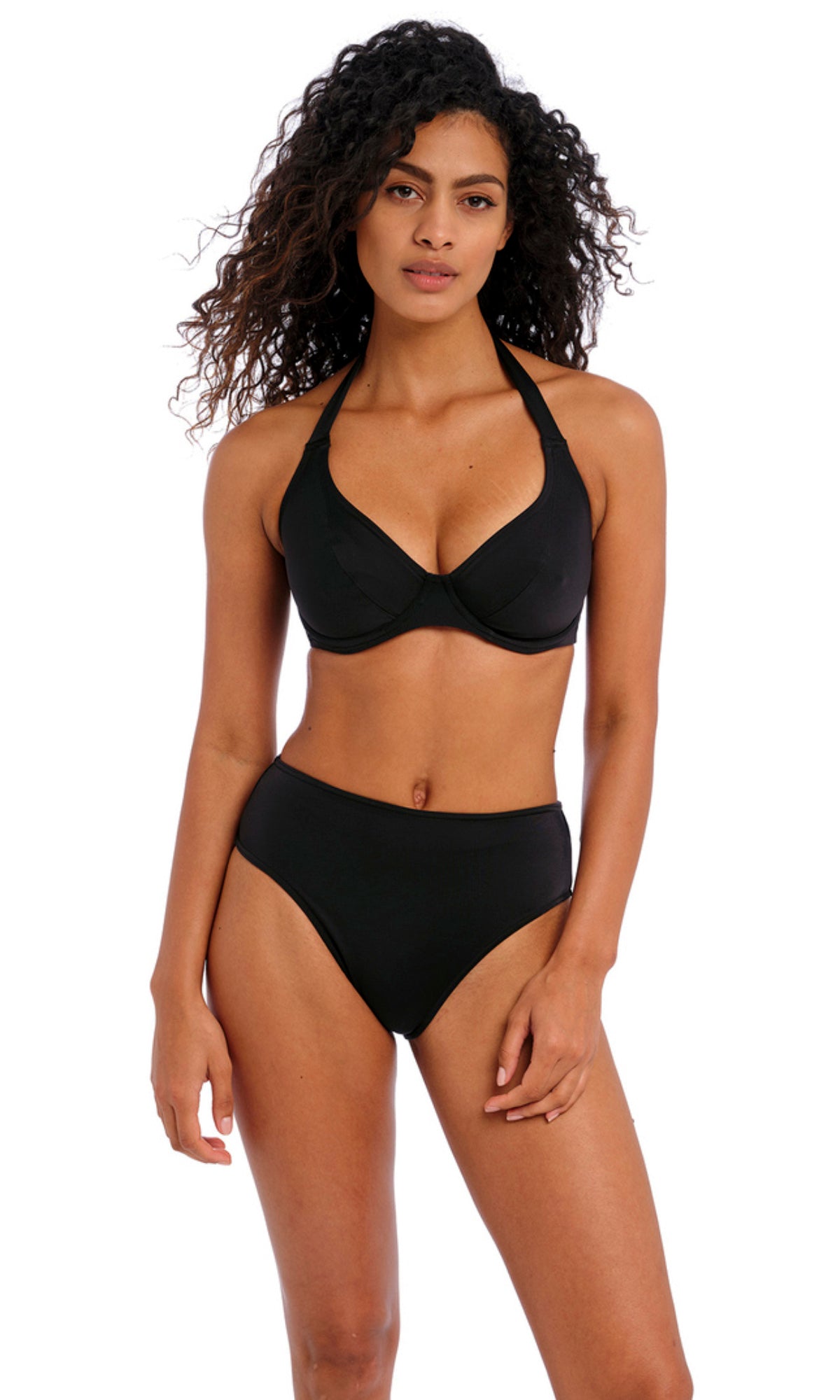Jewel Cove Plain Black UW Halter Bikini Top, Special Order C Cup to H Cup
